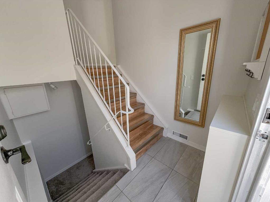 Beautifully renovated townhouse in Penbrooke Meadows. No condo fee. Very well maintained and clean, ready to move in. Main floor features large living room with big window for brightness, good size den, gourmet kitchen with patio door leading to big freshly painted deck on sunny west backyard. Professionally finished basement with two good size bedrooms and full bathroom. A lot of upgrades in this lovely home like newer kitchen cabinets and quartz counter tops (2021), newer roof (2021), newer windows ( 2019), newer furnace (2018), newer stove, new dishwasher, newer siding (2021), newer front deck/patio (2021). Perfect location on quiet and safe street close to schools, MAX Purple, parks, shopping and transportation
