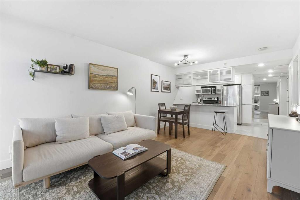 *OPEN HOUSE SAT JAN 31 10:00AM-12:00PM* This beautiful WELL-MAINTAINED condo offers a stylish OPEN - CONCEPT layout designed for both everyday living and entertaining. The kitchen features granite countertops and an oversized eating bar that flows seamlessly into the dining nook and living area. ENGINEERED HARDWOOD flooring throughout the main living spaces adds a modern yet HOMEY finish. Step outside to your covered balcony with solid sides — a PRIVATE outdoor space you can truly enjoy year-round. Inside the bedroom, LARGE WINDOWS showcase downtown city lights, while the WALK-THROUGH CLOSET leads to the cheater ensuite. This unit includes a NEW UPGRADED BOSCH IN-SUITE washer/dryer set, AIR CONDITIONING, a UNDERGROUND TITLED PARKING STALL, and a STORAGE LOCKER located in the heated underground parkade. The building is exceptionally WELL RUN and offers a full suite of amenities, including 24-HOUR CONCIERGE ensuring security, a fully equipped GYM, party room, large BIKE STORAGE AREA, guest suites, and underground VISITOR parking. Located in one of Calgary’s most vibrant inner-city neighbourhoods, you’re surrounded by some of the city’s best restaurants, cafés, and nightlife, with trendy 17th Avenue just steps away. CO-OP is only ONE BLOCK OVER for everyday convenience and groceries, while nearby parks and the Bow River pathway system make it easy to enjoy an active, outdoor lifestyle. It also has excellent access to transit and major routes — including Bow Trail for quick escapes west to the mountains. This is a well-maintained condo in a prime inner-city location, offering lifestyle, convenience, and long-term value.