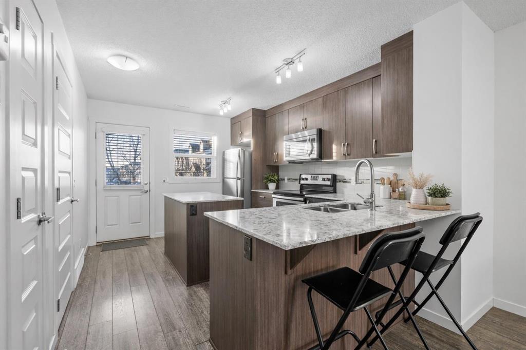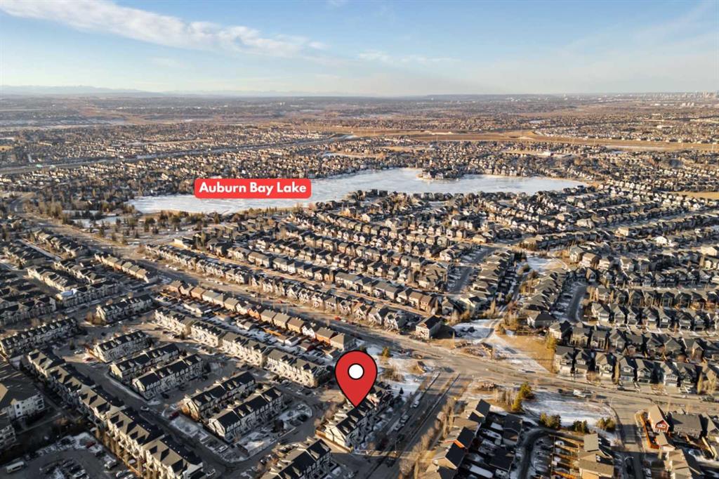 This beautifully maintained pet-friendly Auburn Bay townhouse offers the perfect balance of comfort, functionality, and location in one of Calgary’s most desirable lake communities. With low condo fees and over 1,200 sq ft of thoughtfully designed updated living space, the home is completely move in ready, featuring newer carpet, fresh paint throughout, and a brand new dishwasher for added convenience. The main floor showcases a bright, open concept layout ideal for everyday living and entertaining. The kitchen is both stylish and practical, offering ample cabinetry, a central island, pantry storage, and a seamless flow into the living and dining areas. Upstairs, you’ll find two very spacious bedrooms, each with its own private ensuite, providing excellent privacy for owners, guests, or roommates. An added bonus is the easily accessible attic, offering nearly 200 sq ft of additional storage for larger or seasonal items. Step outside to your private, large fenced green yard, a rare and inviting feature for a townhouse, perfect for relaxing, entertaining, or enjoying warm summer days. Your surface parking stall is right outside of your fenced backyard. Location truly sets this home apart. Just minutes from the Auburn Bay Lake, South Health Campus Hospital, and the vibrant Mahogany and Seton amenities, including shopping, restaurants, and entertainment, everything you need is close at hand. Enjoy unbeatable convenience with quick access to the Seton Library and the Seton YMCA, one of the largest and most impressive YMCAs in North America. Quick access to Deerfoot and Stoney Trail makes commuting simple and efficient. Ideal for first time buyers, young professionals, or downsizers seeking a low maintenance lifestyle, this home delivers exceptional value in a prime location. Don’t miss your chance to enjoy everything Auburn Bay has to offer. Pets are allowed if they are typical household pets normally permitted in urban homes. Livestock, fowl, snakes, rodents, reptiles, arachnids, and exotic pets are not allowed. Dogs and cats must be approved by the Board and kept on a leash when outside the unit. Board approval is required for more than two pets in the unit. Families in Auburn Bay have access to nearby public schools including Bayside School (K–5), Lakeshore School (Grades 6–9), and Joane Cardinal-Schubert High School (Grades 10–12). Book a showing today and view the 3D Virtual iGuide Tour!