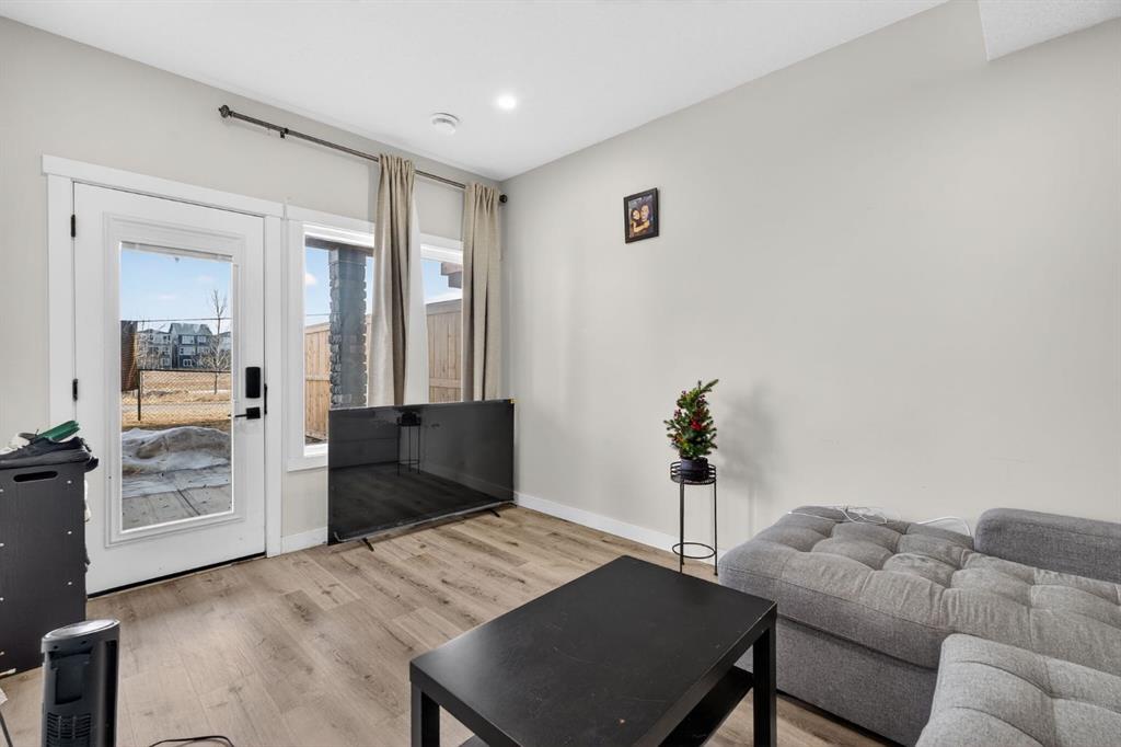 Welcome to this exceptional 2-storey home with a legal walkout basement suite, backing onto green space in the community of Cornerstone. Offering outstanding flexibility, income potential, and over 3,000 sq ft of total developed living space, this property includes 2,219 sq ft above grade plus an additional 873 sq ft in the fully finished legal suite. The main level features a bright, open-concept layout with modern finishes throughout. The kitchen is a true standout, thoughtfully designed with quartz countertops, a large central island, sleek cabinetry, and two stoves—including a gas range located in the walk-in pantry, perfect for those who love to cook or entertain. This highly functional setup offers added convenience while keeping the main kitchen clean and open. The dining area flows seamlessly to the upper deck overlooking green space, while the spacious living room offers a comfortable gathering space filled with natural light. A rare main-floor bedroom and full bathroom provide excellent flexibility for guests, extended family, or a home office. Upstairs, the home continues to impress with four generously sized bedrooms and a thoughtfully designed layout. The primary suite is a true retreat, featuring large windows, a custom walk-in closet with built-in cabinetry, and a beautifully appointed ensuite with dual sinks, quartz countertops, a deep soaker tub, and a separate glass-enclosed shower. The upper level also includes a full bathroom, convenient upper-floor laundry, and a versatile bonus/flex area—perfect for a family room, study space, or play area. The legal walkout basement suite is fully self-contained and thoughtfully designed, offering two bedrooms, a modern full kitchen, a comfortable living area, a full bathroom, separate laundry, and a private entrance. Large windows and walkout access ensure the space feels bright and welcoming, making it ideal as a mortgage helper, rental investment, or multi-generational living solution. Additional highlights include a double attached garage, contemporary finishes throughout, and a prime location backing onto green space while remaining close to schools, parks, shopping, and major commuter routes. This is a rare opportunity to own a spacious, income-generating home in one of Calgary’s fastest-growing communities. Don't miss your chance to see this one today.