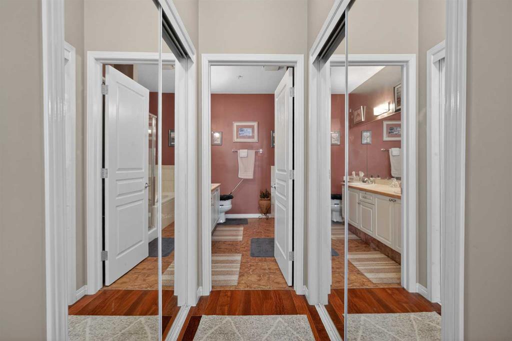 Welcome to Bonavista Estates; an amenities rich, gated community, in the beautiful sought after community of Lake Bonavista. This well laid out 2 bedroom apartment features premium finishes throughout, including hardwood floors and tile in the bathrooms. The kitchen is equipped with plenty of storage and stainless steel appliances. The primary bedroom is a great size with double closets and a 5 piece ensuite, including a soaker tub. The second bedroom is also a very sizable. Comfort is key here, with air conditioning, heated floors(in-floor heating), and a spacious, private balcony for outdoor enjoyment. This unit also comes with a rare titled tandem parking stall, for two car in the heated parkade, and a generous storage locker. The well managed building offers outstanding amenities: a car wash bay, clubhouse with full kitchen, dining areas, an impressive stone fireplace, games & billiards space, fitness centre, 24 seat theatre, two guest suites, & ample visitor parking. All of this in a PRIME location close to public transit / LRT, Southcentre Mall, Avenida, Fish Creek Park, Trico Centre, restaurants, shops, pharmacies, and more.
