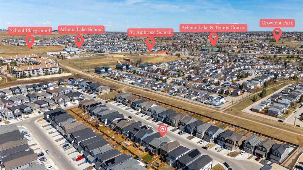 Welcome to this exceptional, like-new home in the highly coveted lake community of Arbour Lake - where modern design meets one of NW Calgary’s most desirable lifestyles. This meticulously maintained home offers the rare opportunity to enjoy a newer build without the wait, in a fully established neighbourhood. Boasting over 2,000 square feet above grade, the main floor delivers both impact and functionality. The open-concept layout is anchored by a stunning kitchen featuring a large central island, abundant cabinetry, and a dedicated pantry - seamlessly connecting to the dining area and spacious living room, creating the perfect environment for entertaining or everyday living. A main floor office and full bathroom add versatility that today’s buyers demand. Upstairs, the layout is designed with intention. A central bonus room provides separation and flexibility, ideal for a media space or family retreat. The primary suite is a true standout - generous in size with a walk-in closet and a well-appointed 5-piece ensuite. Two additional bedrooms, a full bathroom, and upper-level laundry complete a highly functional upper floor. The unfinished basement offers over 600 square feet of future potential - ready to be transformed to suit your lifestyle. What truly sets this home apart is its location. Arbour Lake is one of Calgary’s only NW lake communities, offering year-round lake access, scenic pathways, parks, and mountain views - all while being minutes from schools, shopping, and transit. A rare combination: newer construction, proven location, and immediate availability. Opportunities like this in Arbour Lake don’t come up often. Book your showing today!