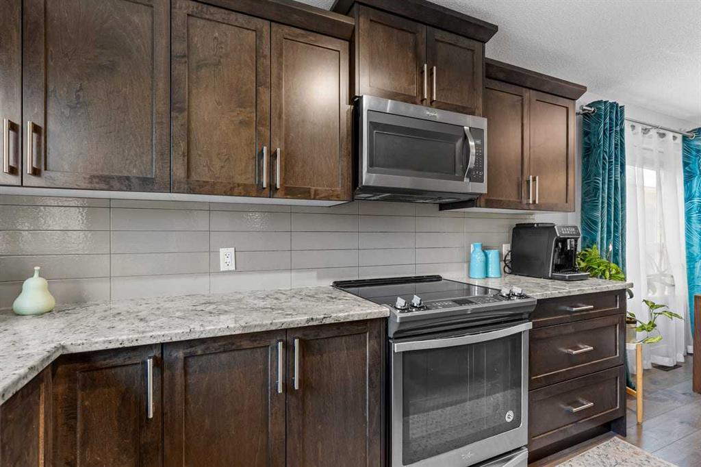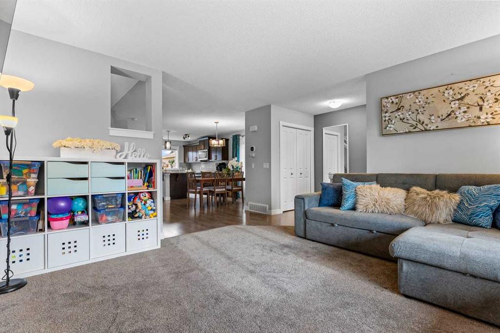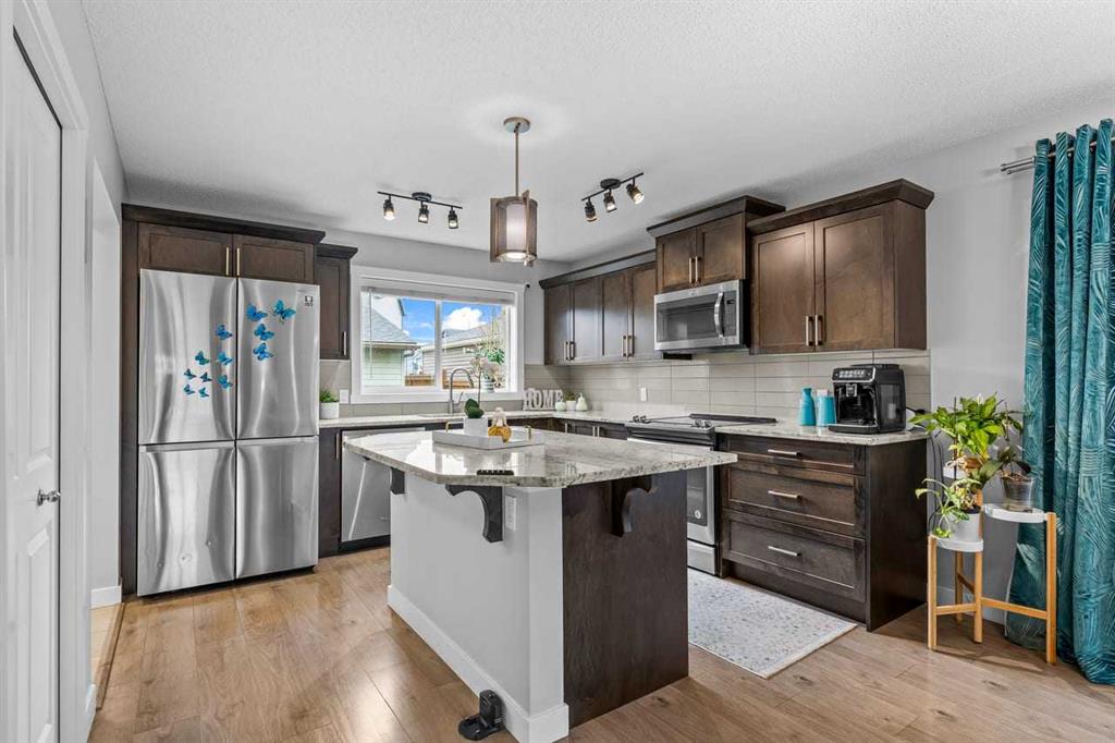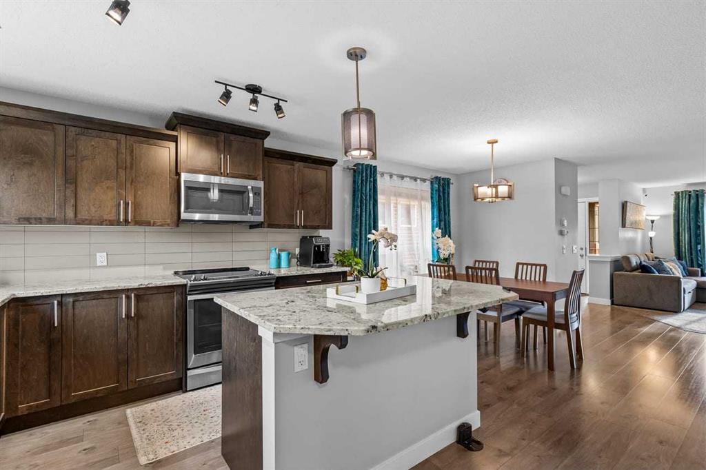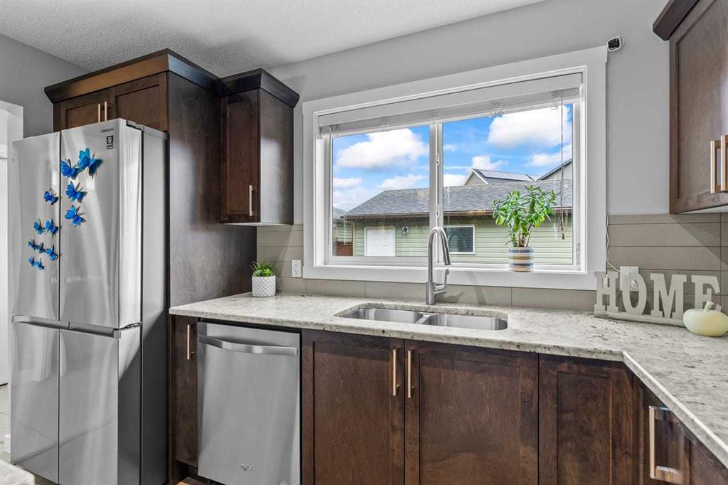 WELCOME to this BRIGHT, WELL MAINTAINED, 3-bedroom, 3.5-bathroom DUPLEX offering over 2,100 square feet of DEVELOPED LIVING SPACE with FULLY FINISHED BASEMENT and DOUBLE GARAGE located in the community of LEGACY. As you enter the home from the COVERED FRONT PORCH, you are greeted by an OPEN CONCEPT LAYOUT featuring a welcoming living room, dining room, and kitchen with GRANITE COUNTERTOPS, KITCHEN ISLAND, STAINLESS STEEL APPLIANCES, including an SMART SAMSUNG REFRIGERATOR. Upstairs, retreat to a SPACIOUS PRIMARY BEDROOM featuring a WALK-IN CLOSET and a 4-PIECE ENSUITE, complemented by two ADDITIONAL GOOD-SIZED BEDROOMS, MAIN 4 PIECE BATHROOM, and convenient laundry. The FULLY DEVELOPED BASEMENT (built by the builder) adds even more living space with a FOURTH BEDROOM, 4-PIECE BATHROOM, LARGE WALK-IN CLOSET/STORAGE ROOM, RECREATION ROOM, and a utility room. ADDITIONAL HOME FEATURES include: ELEGANT GROHE FAUCETS in kitchen and all bathrooms, comfort upgrades including INDEPENDANT SMART THERMOSTATS on each floor, CEILING FAN in PRIMARY BEDROOM, RADON MITIGATION SYSTEM in the basement, SOME NEWLY REPLACED CARPETS, RECENTLY CLEANED AND SERVICED FURNACE (July 2025) for efficiency and safety. The FULLY-FENCED for privacy, LANDSCAPED BACK YARD, includes a DECK —> perfect for outdoor entertaining or relaxing, ENCLOSED OUTSIDE STORAGE for garden tools and seasonal items between garages. LEGACY is a VIBRANT FAMILY-ORIENTATED COMMUNITY complete with schools, parks, playgrounds, walking paths, ponds, and nearby shopping. DON'T MISS THE OPPORTUNITY to make this beautiful duplex your new home. BOOK A SHOWING TODAY!