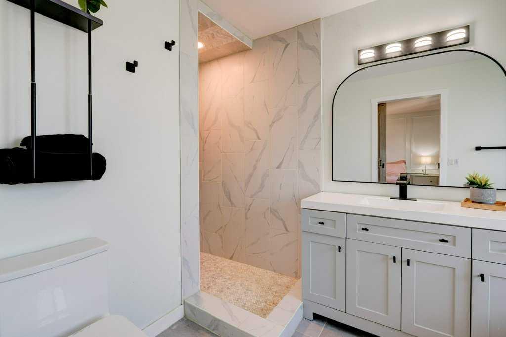 Rare Lake Chaparral opportunity with TWO oversized heated double garages, one front attached and one rear detached. Over 2,450 sq ft of developed space, with major exterior upgrades already done: Hardie Board siding, New Roof, New windows and doors. In-floor heat in the basement and both garages plus A/C for summer comfort. Functional layout with open main floor, generous kitchen workspace with under-cabinet lighting and built-in microwave, corner gas fireplace, bonus room, upper laundry, 3 bedrooms up, flex room down and 4 total bathrooms. Sunny west-facing yard with composite deck and low-maintenance landscaping. Just one block to lake access and walking distance to two schools, parks and pathways, with quick access to shopping, Fish Creek, golf and transit. A standout for buyers who need rare, heated garage space to build, store, create, or run a home business, with year-round Lake Chaparral living at your doorstep.