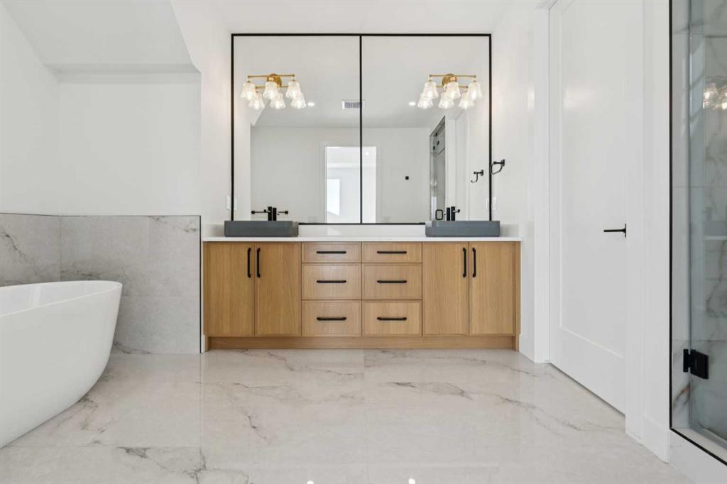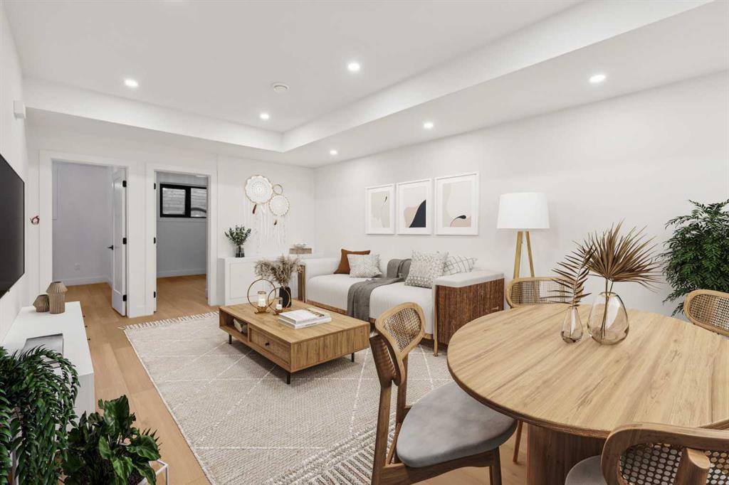 OPEN HOUSE on Saturday, Jan 31 between 2:00 - 4:00pm! Stunning Semi-Detached Infill with Legal Suite. BRAND NEW, custom-built semi-detached infill in the desirable community of Bonavista downs offers the perfect blend of luxury living and practicality. With over 3180 sqft. of elegant living space including an extended 3-bedroom legal basement suite, this home provides the flexibility of multi-generational living or a fantastic mortgage helper. The main level is designed for both style and function, featuring 10-ft ceilings, a bright open-concept layout, and oversized windows that fill the space with natural light. The kitchen is well appointed, with ceiling-height cabinetry, a massive island with waterfall quartz counters, and premium stainless steel appliances. The living room is bright and welcoming, with modern finishes and built-in cabinetry that offers plenty of functional storage. Dining room with double sliding doors overlooking the spacious backyard. Upstairs, you’ll find a spacious primary retreat with soaring 16ft vaulted ceilings, walk-in closet with built-ins, and a spa-inspired ensuite featuring heated floors, freestanding soaker tub, and a fully tiled glass shower with steam. Two additional bedrooms with 10ft tray ceiling, a 4-piece main bath, and an upper laundry room add everyday convenience. The professionally developed legal suite has its own private side entrance and offers over 1121 sqft. of developed living space. Highlights include 3 large bedrooms, 2 full bathrooms, in-suite laundry, a generous living/dining area, and a full kitchen with quartz counters, ceiling-height cabinets, and stainless-steel appliances. Comfort is maximized with in-floor heating (roughed in) and 4” rigid insulation beneath the slab for year-round warmth. Set on a generous 128-ft deep lot, this home offers plenty of outdoor space with a finished concrete patio, and a paved back alley. Bonavista is one of Calgary’s most established and desirable neighbourhoods—renowned for its safety, quiet streets, excellent schools, and close proximity to shopping, restaurants, parks, and transit. This is a rare opportunity to own a thoughtfully designed infill in one of Calgary’s most coveted areas—complete with a full legal suite that adds value and flexibility. Book your private showing today and experience everything this incredible home has to offer.