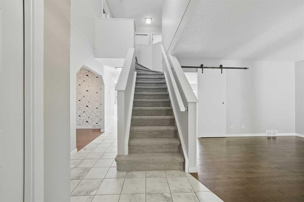 *Open house on Saturday, October 11, 12-4pm* Welcome to 161 Douglasbank Way SE, a beautifully updated family home tucked away on a quiet, tree-lined street in the heart of Douglasdale. With over 2,700 square feet of developed living space and a sunny south east-facing backyard, this warm and inviting property offers the perfect balance of comfort, functionality, and timeless style. The main floor welcomes you with a vaulted foyer and rich hardwood floors that flow throughout the open and thoughtfully designed layout. A front flex room provides an ideal space for a home office or reading nook, while the formal dining room is perfect for family dinners and special occasions. The spacious kitchen features granite countertops, stainless steel appliances, and plenty of cabinet and prep space, opening to a bright breakfast nook that overlooks the backyard. Adjacent to the kitchen, the family room offers a cozy retreat with a wood-burning fireplace framed by a rustic barnwood feature wall, creating a warm and welcoming atmosphere for relaxing or entertaining. A two-piece bathroom and a convenient laundry room complete the main level. Upstairs, the primary bedroom feels like a private retreat with a walk-through closet featuring custom organizers and a modern three-piece ensuite with a glass shower. Two additional bedrooms and a four-piece bathroom with a jetted tub provide ample space for family or guests. The fully developed basement adds exceptional versatility with a large recreation area, wet bar, fourth bedroom, beautifully updated three-piece bathroom, and a bonus flex area perfect for a home gym, playroom, or hobby space. Step outside to your south east-facing backyard, complete with a spacious deck (2020), privacy walls, and a peaceful setting ideal for summer gatherings or quiet evenings. The double attached garage adds everyday convenience, while thoughtful upgrades throughout the home ensure peace of mind for years to come. Notable updates include a new roof (2019), new furnace (2020), new deck (2020), updated eavestroughs and downspouts, upgraded light fixtures, keyless smart lock, and new upstairs windows. Perfectly located near schools, parks, golf, river pathways, and shopping, this home offers the best of community living with easy access to major roadways and all the amenities Calgary’s southeast has to offer. Warm, welcoming, and move-in ready—161 Douglasbank Way SE combines thoughtful updates, classic design, and everyday comfort in one of Calgary’s most desirable family neighbourhoods.