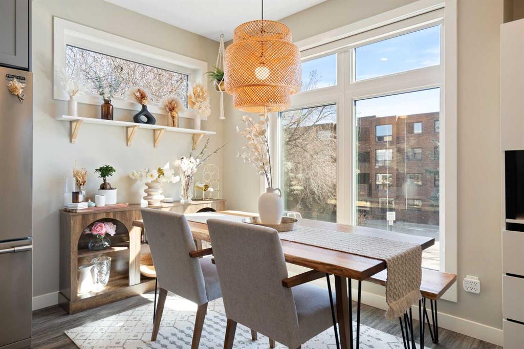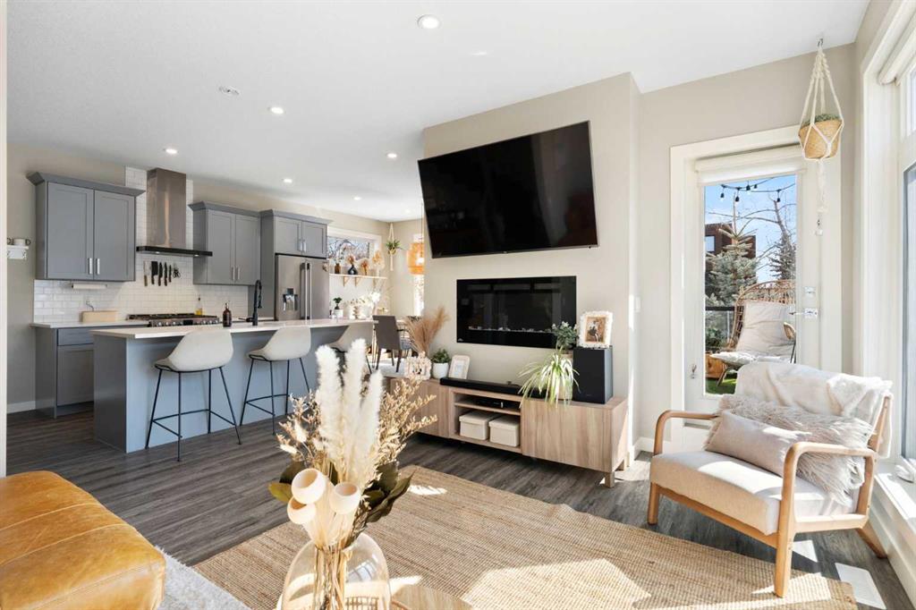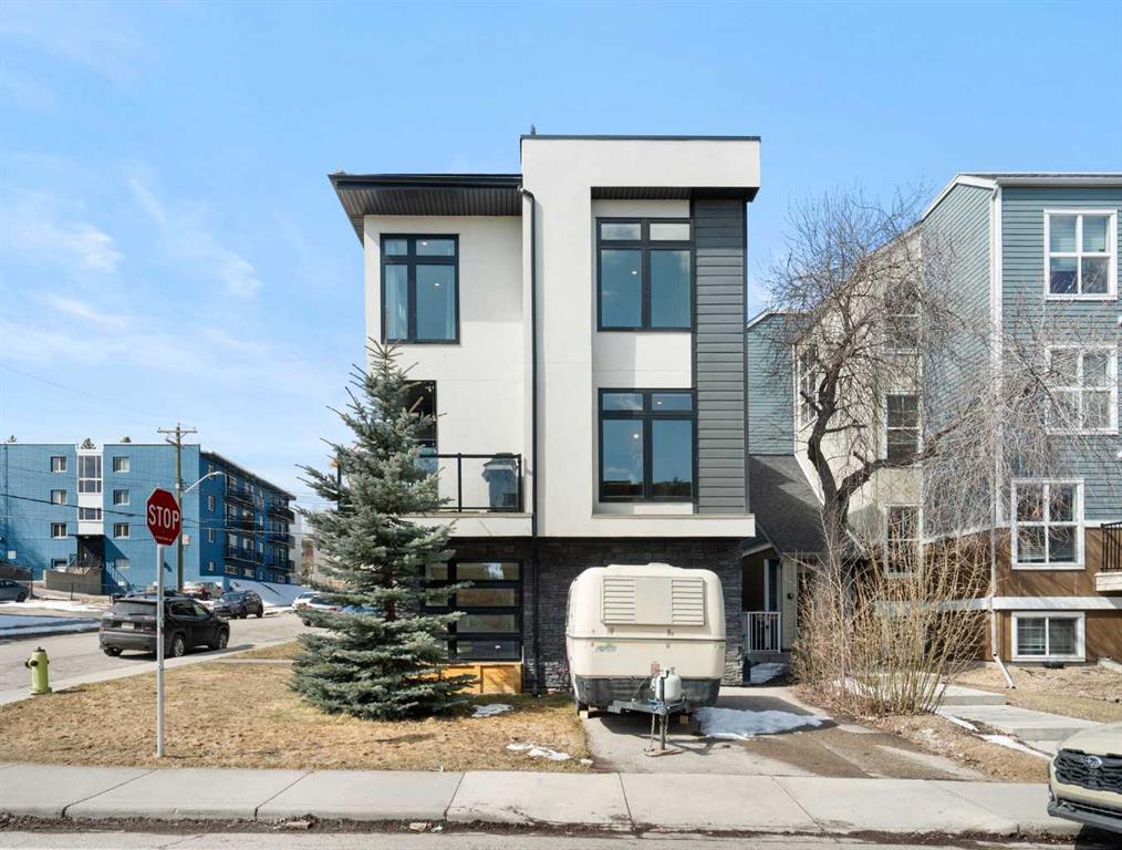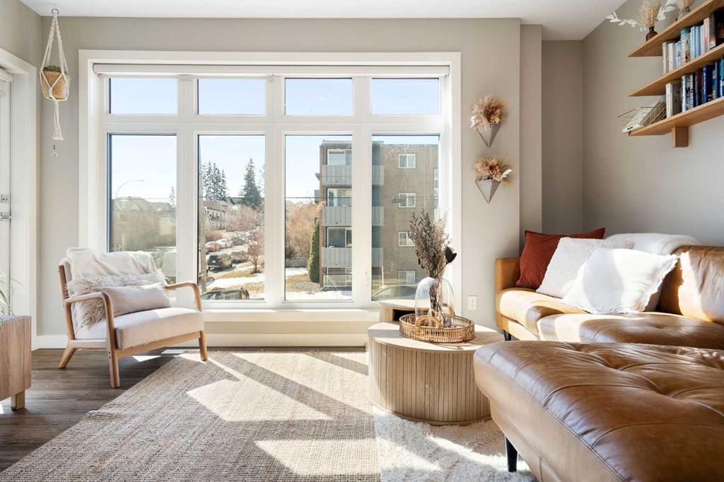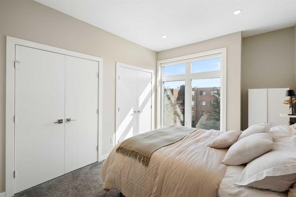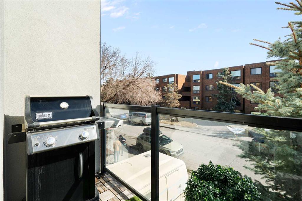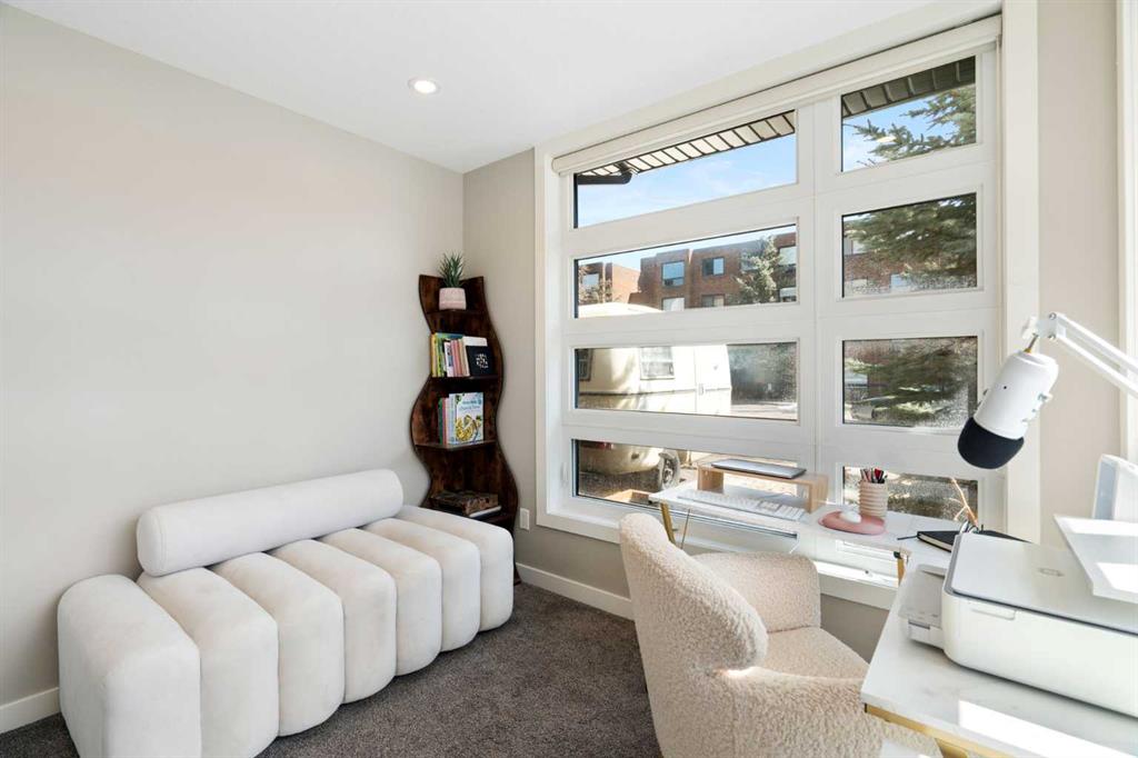 Bright, modern, and beautifully refined. On a corner lot with exceptionally low condo fees. This is inner-city living at its best in the heart of Calgary. Wake up to beautiful eastern sunrises and enjoy natural light all day long thanks to expansive south-facing, floor-to-ceiling windows that flood the home with warmth and energy. Step outside and you’re moments from the vibrant energy of 17th Avenue SW, your morning coffee at Our Daily Brett, and close to all the shops, dining, and lifestyle amenities of Marda Loop. For outdoor enthusiasts, the Bow River pathway system is just 1.5 km away... perfect for runners, cyclists, and evening strolls. This home offers the rare convenience of your own private driveway and an oversized single attached garage (ideal for secure parking, additional storage, or even a home gym setup). Inside, you’re welcomed by a bright and versatile main-floor flex space. Whether you need a home office, creative studio, guest room, or workout area, this space adapts to your lifestyle. Upstairs, the second level is the true heart of the home. Designed with open-concept living in mind, it features a beautifully appointed kitchen with custom cabinetry, a stainless steel appliance package, and an oversized island that’s perfect for entertaining. A dedicated dining area provides space for hosting, while the adjacent living room offers a cozy retreat complete with an electric fireplace. Step outside onto the wrap-around corner balcony... your private outdoor oasis for morning coffee or evening unwinding. A convenient powder room and in-suite laundry complete this level. The top floor is designed for comfort and privacy, featuring two primary bedrooms... each with its own ensuite. One boasts a spacious walk-in closet, while the other offers dual closets with a built-in organizational system, making it ideal for shared living or hosting guests. Stay cool through Calgary’s warm summer months with top-of-the-line air conditioning. Perfectly suited for urban professionals or anyone seeking a low-maintenance lifestyle close to the city’s best amenities, this home combines style, function, and location in one exceptional package. Located in a self-managed fourplex with incredibly low condo fees, this is a rare opportunity to enjoy high-end townhome living without the typical costs.