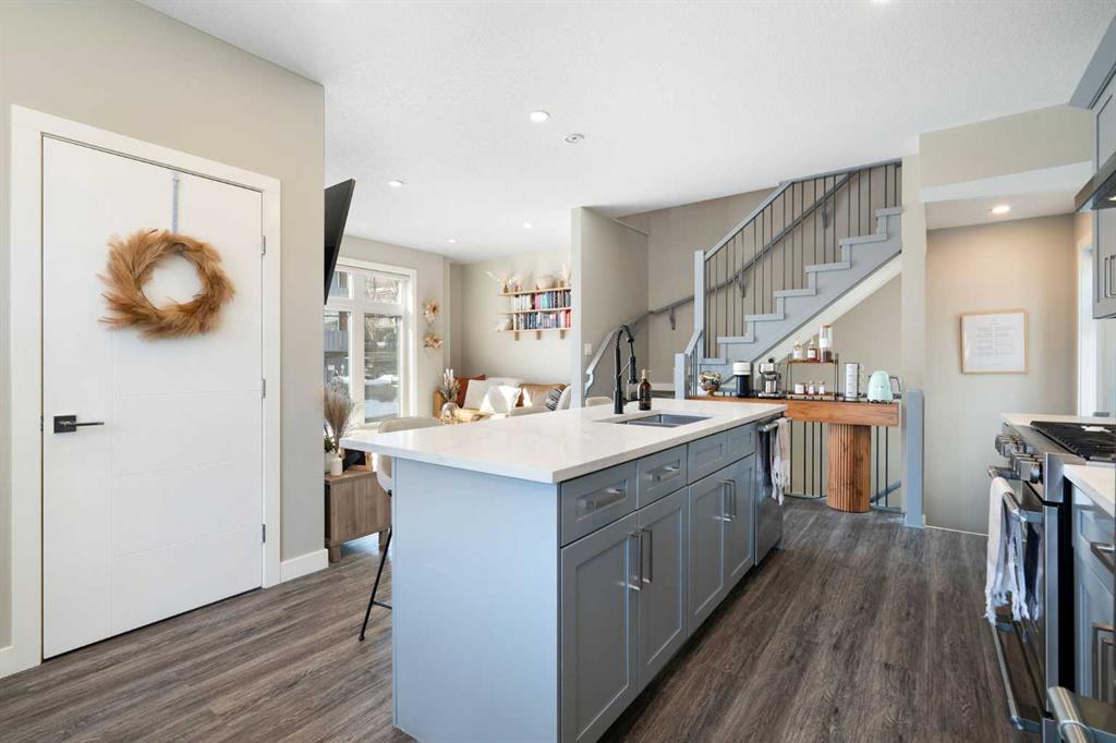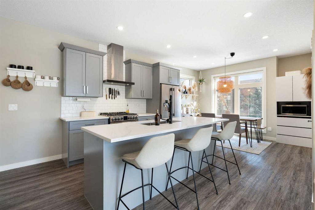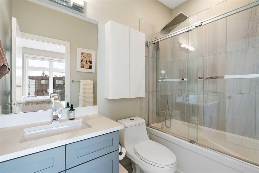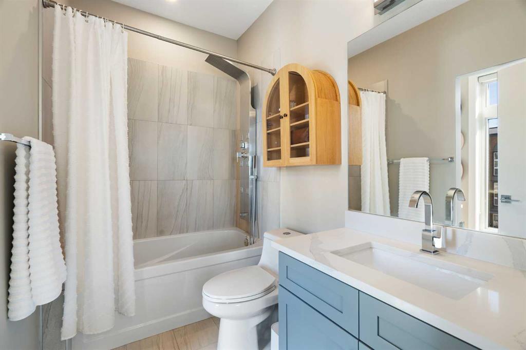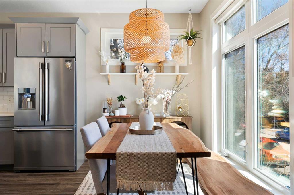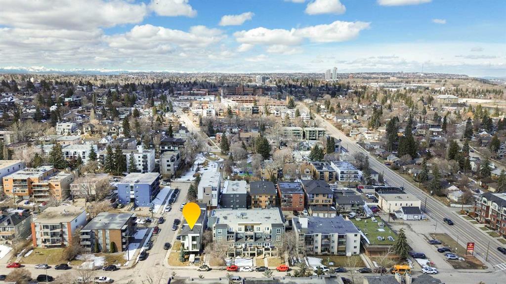Bright, modern, and beautifully refined. On a corner lot with exceptionally low condo fees. This is inner-city living at its best in the heart of Calgary. Wake up to beautiful eastern sunrises and enjoy natural light all day long thanks to expansive south-facing, floor-to-ceiling windows that flood the home with warmth and energy. Step outside and you’re moments from the vibrant energy of 17th Avenue SW, your morning coffee at Our Daily Brett, and close to all the shops, dining, and lifestyle amenities of Marda Loop. For outdoor enthusiasts, the Bow River pathway system is just 1.5 km away... perfect for runners, cyclists, and evening strolls. This home offers the rare convenience of your own private driveway and an oversized single attached garage (ideal for secure parking, additional storage, or even a home gym setup). Inside, you’re welcomed by a bright and versatile main-floor flex space. Whether you need a home office, creative studio, guest room, or workout area, this space adapts to your lifestyle. Upstairs, the second level is the true heart of the home. Designed with open-concept living in mind, it features a beautifully appointed kitchen with custom cabinetry, a stainless steel appliance package, and an oversized island that’s perfect for entertaining. A dedicated dining area provides space for hosting, while the adjacent living room offers a cozy retreat complete with an electric fireplace. Step outside onto the wrap-around corner balcony... your private outdoor oasis for morning coffee or evening unwinding. A convenient powder room and in-suite laundry complete this level. The top floor is designed for comfort and privacy, featuring two primary bedrooms... each with its own ensuite. One boasts a spacious walk-in closet, while the other offers dual closets with a built-in organizational system, making it ideal for shared living or hosting guests. Stay cool through Calgary’s warm summer months with top-of-the-line air conditioning. Perfectly suited for urban professionals or anyone seeking a low-maintenance lifestyle close to the city’s best amenities, this home combines style, function, and location in one exceptional package. Located in a self-managed fourplex with incredibly low condo fees, this is a rare opportunity to enjoy high-end townhome living without the typical costs.