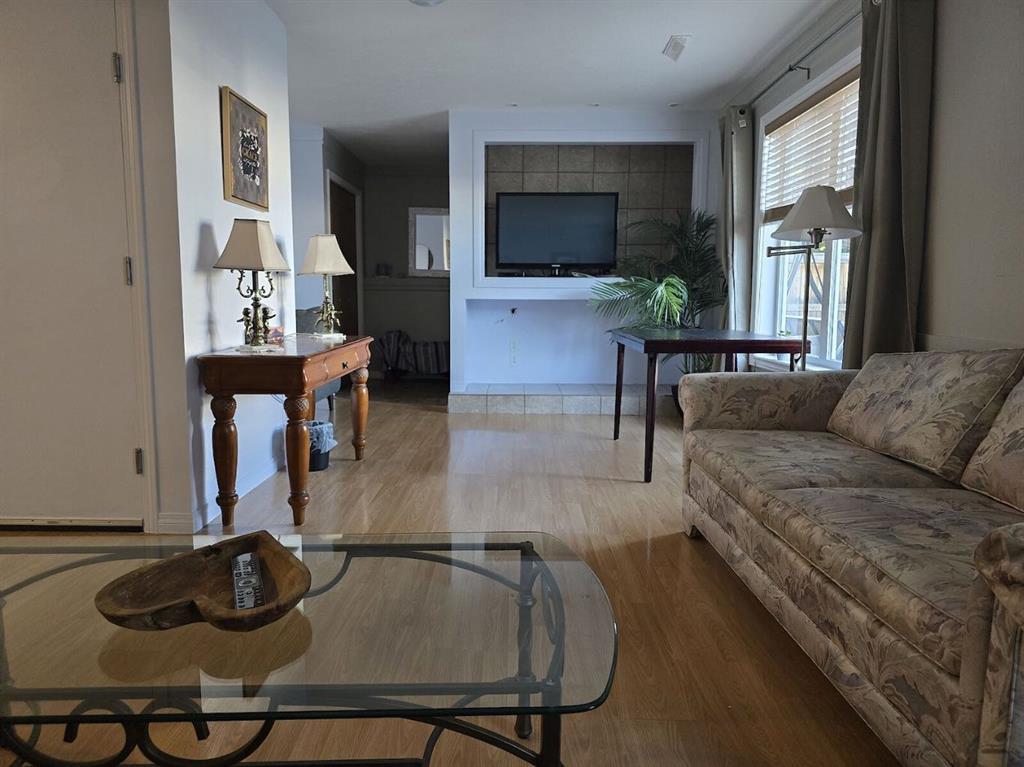 Beautifully maintained Italian inspired bungalow walkout in a prime northwest location, proudly owned by the second owners and offering over 2,500 square feet of fully developed living space. Thoughtful upgrades include 2023 PEX water lines, an upgraded electrical panel, a newer roof (2020), and a 21 panel solar array (9.45 kW) that significantly reduces monthly utility costs while keeping the home cooler in summer. Bright, open main floor featuring vaulted ceilings, large windows, oak hardwood flooring, ceramic tile throughout high traffic areas, and a flexible open space ideal for dining, office, or recreation. The well appointed kitchen offers granite countertops, upgraded oak cabinetry, ceramic backsplash, crown mouldings, stainless steel appliances, reverse osmosis water system, and a built in microwave hood fan vented outside. The adjoining breakfast nook and living room are centered around a beautiful gas fireplace and open onto a northeast facing balcony overlooking the private, tree sheltered backyard. The spacious primary suite includes a walk in closet and a full ensuite with soaker tub, separate shower, and ample storage. A second bedroom, full bathroom, and convenient main floor laundry complete this level. The city approved secondary suite features a private entrance, large windows, two bedrooms, a full kitchen, living area, bathroom, laundry, storage rooms, and egress windows throughout. Bright finishes and smart layout make it feel like ground level living rather than a basement. The suite is currently rented by an excellent tenant who appreciates the quiet location, fibre internet, and low utilities. Outside you’ll find stamped concrete walkways and patio areas, landscaped gardens, a fountain feature, shed, and optional greenhouse. The double garage includes workspace, sink with hot and cold water, and central vacuum system, plus parking for three additional vehicles. This allergy free, non smoking home offers exceptional flexibility, income potential, and accessibility, making it ideal for homeowners, investors, or multigenerational living.