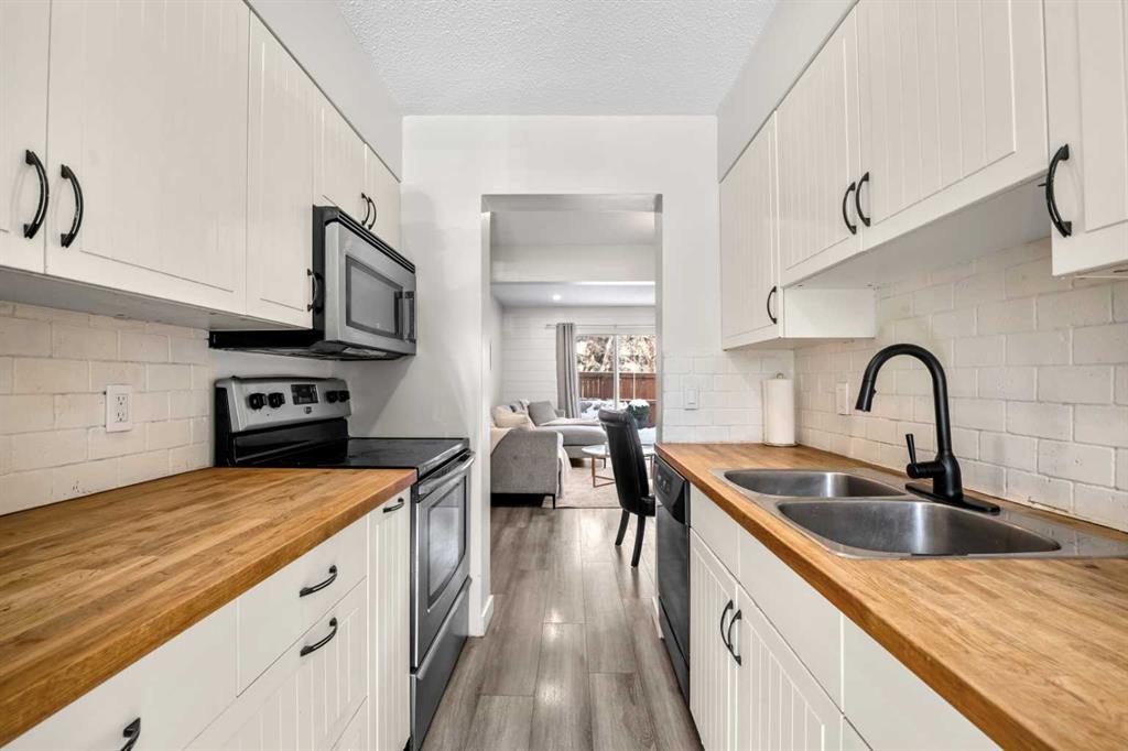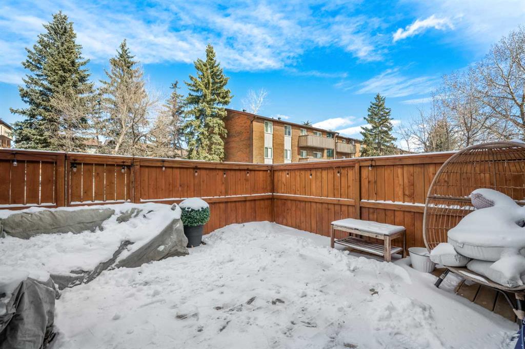 This home truly stands out as one of the most tastefully updated, clean, and modern townhouses in its class. An exceptional opportunity, this 2-bedroom unit features one of the best layouts in the complex, with over 1600 sq. ft. of living space, complete with a rare main-floor powder room and low condo fees. With a fully finished basement and a private fenced yard, this pet-friendly home is ideal for families, first-time buyers, or investors. The condo fees are among the lowest in the city, thanks to outstanding management. The timeless kitchen welcomes you with butcher block countertops, stainless steel appliances, and white cabinetry, offering ample storage and prep space. Vinyl plank flooring runs throughout the entire home, enhancing the bright and open feel while creating a clean, modern, and cohesive look. The spacious living area is both stylish and inviting, featuring a shiplap accent wall, a cozy electric fireplace, recessed pot lights, and a dedicated dining area, making it the perfect space for everyday living and entertaining. Upstairs, you'll find two large bedrooms with generous windows, a sizable linen closet, and an updated 4-piece main bathroom. The fully finished lower level provides excellent additional living space with a large family room, a 4-piece bathroom, and a laundry room with extensive storage in the utility room. Outside, the private fenced yard features a spacious updated deck, perfect for relaxing, entertaining, or enjoying outdoor living. There is an assigned parking stall close to the front door, along with ample visitor parking and additional stalls available for rent through the condo association. Other notable updates include a new furnace and hot water tank (2024), vinyl windows and front door (2022), LED recessed lighting (2024), and a new pressure-treated deck (2025). Residents also enjoy fantastic complex amenities, including a recently renovated heated outdoor swimming pool with lockers and full-service bathrooms, a recreation hall with a pool table, dartboard, small kitchen, and seating, as well as tennis courts that can also be used for pickleball. Located in the desirable community of Canyon Meadows, you'll have access to excellent schools, sports fields, playgrounds, and nearby recreation at the Canyon Meadows Aquatic & Fitness Centre, along with the natural beauty of Fish Creek Provincial Park and convenient transportation routes. This is an exceptional opportunity you don't want to miss. For a full experience, click on the 3D tour.