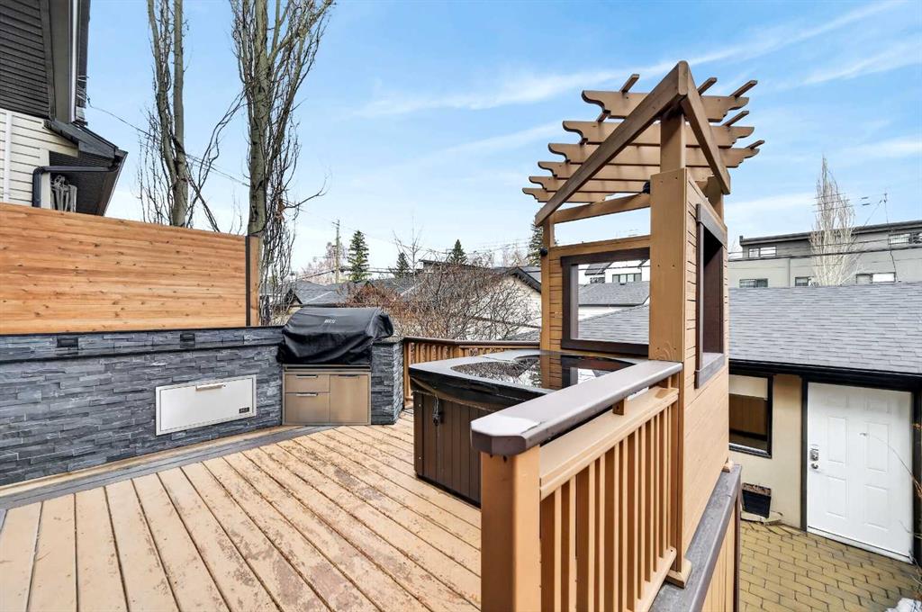 Wonderful Upgraded Home on a quiet tree-lined street in the Highly Sought After community of Altadore is waiting for its New Owners. Beautiful, Bright Home with Large Windows & Skylights that bathe the home in Natural Light. Quality Workmanship and Details are evident throughout this Home - Elegant Curved Staircase with Open Risers, Wood & Wrought Iron Railing, Hardwood Through the Main Level, Built-in Cabinetry and Wall Closets, 3 Gas Fireplaces. Front Entrance has Built-in Wall Closet and is Showcased by the Beautiful Curved Staircase. Large, Bright Dining Room is just off the Front Foyer and allows for use as stand-alone Dining Room or combination Dining Room with Sitting Area. The Gourmet Kitchen includes Top of the Line Appliances - Wolf Gas Range, Sub-Zero Fridge, Bosch Dishwasher - Beautiful Granite Countertops, Large Island with Built-in Wine Rack and Breakfast Bar, Richly Stained Cabinets. Kitchen opens to the Spacious Living Room with Built-In Cabinets and Shelving surrounding a Gas Fireplace. Breathtaking Primary Bedroom features Vaulted Ceiling, Wall-to-Wall Built-in Closet, Balcony for Morning Coffee or Evening Glass of Wine, Beautiful Two-Sided Gas Fireplace that is shared with the Gorgeous Ensuite - Large, remodeled Shower, Dual Vanities. Two Good-Sized Bedrooms, Main 4 Piece Bathroom and Laundry complete the Upper Level. Basement is Developed to same High Standards as the rest of the Home - Great Family Room with more Built-in Cabinetry and 3rd Gas Fireplace, Wet Bar, Built-In Speakers plus Full 4 Piece Bathroom and a 4th Bedroom which is perfect for Teenagers or Guests. Low Maintenance Backyard starts with the Raised Deck with Built-In BBQ Centre & Warming Oven, Hot Tub & Privacy Screen accessed from the Living Room. Under Deck Storage, Double Detached Garage, Paved Back Alley and Exposed Concrete Front Walkway. But this is Not All! In the past few years the owners have replaced the Furnace, installed a Tankless Water System, installed a Radon Mitigation System, Air Exchanger was set up, Primary Shower was Redone, Rebuilt the Built-in BBQ area with new BBQ, Installed 40 year Shingles in 2024 plus replaced the Washer, Dryer & Dishwasher. This Wonderful Family Home is located within walking distance to the Altadore School, Parks plus trendy Marda Loop restaurants & shops and much more! Easy access in and out of the community. This is a winner!