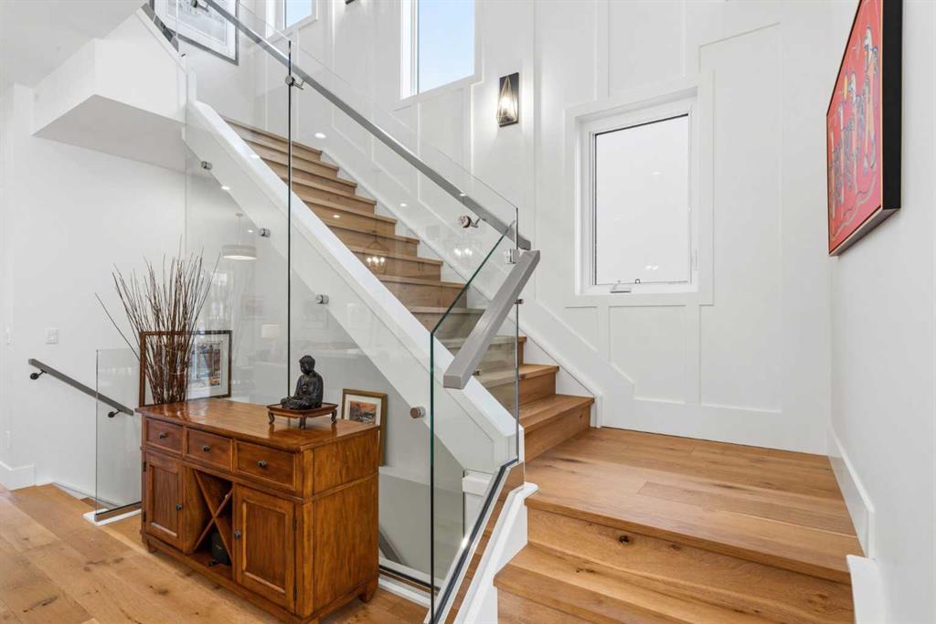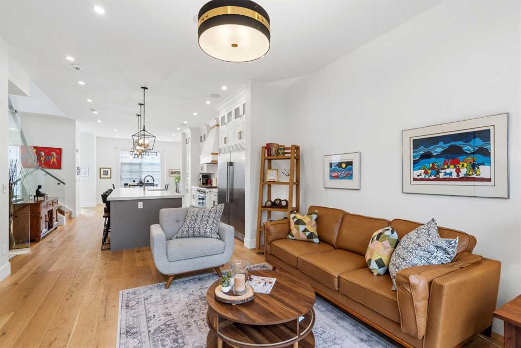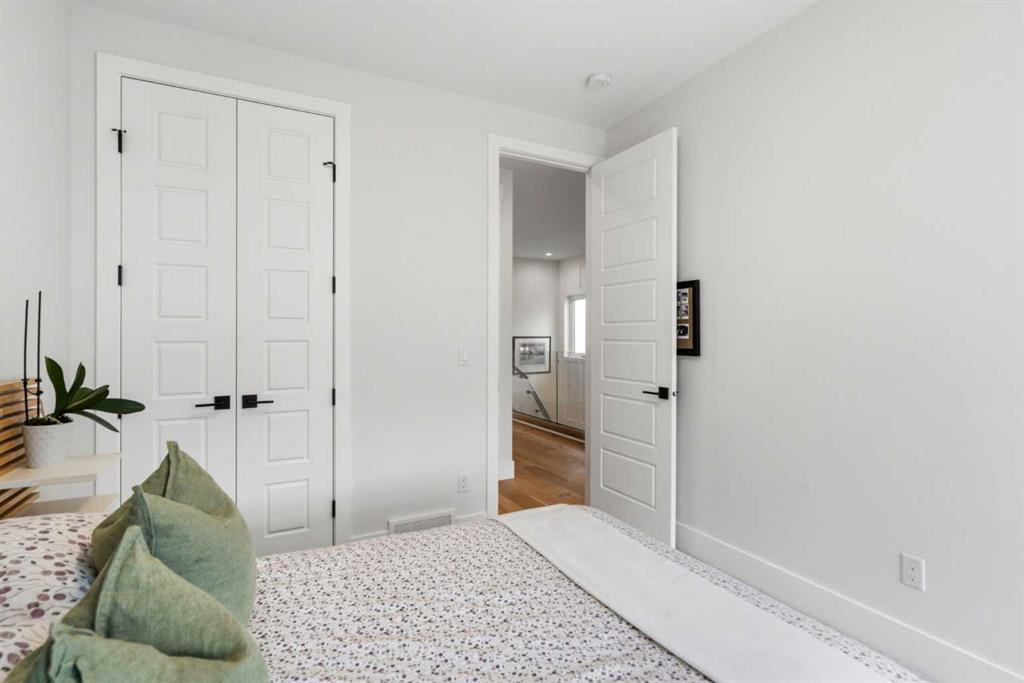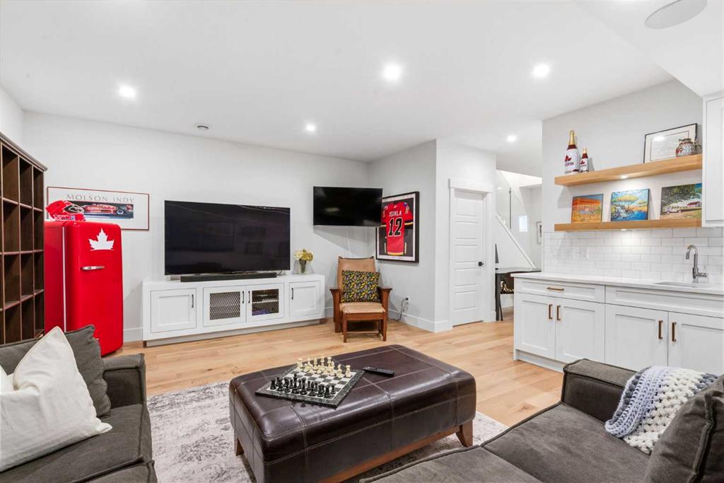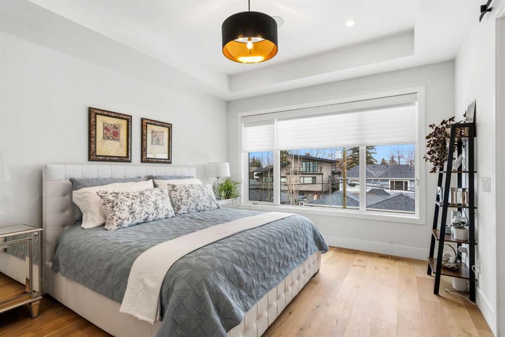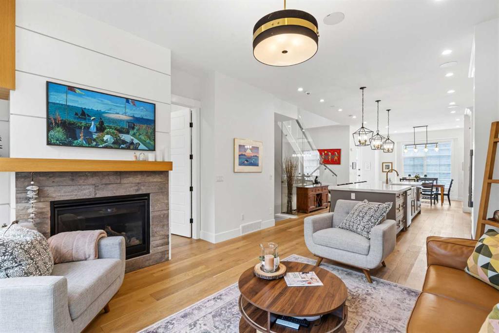 This exceptional, modern farmhouse style home, where architectural refinement & timeless design converge on a quiet, tree-lined street in the heart of Altadore. With 2,836 sq ft of curated living space, this stunning four-bedroom, 3.5 bath residence seamlessly blends upscale finishes with thoughtful functionality. Soaring 10 foot flat ceilings, engineered white oak wood flooring throughout, & striking 8 foot doors enhance the sense of openness & grandeur. Expansive windows flood the open concept main floor with natural light, illuminating a front dining area adorned with a detailed feature wall that flows effortlessly into the chef-inspired kitchen. The kitchen is designed for both everyday living & elegant entertaining & features custom, full height white cabinetry, subway tile backsplash, quartz countertops, a massive two-toned island with an eating bar & premium appliances, including a Bertazzoni gas range, dual full-sized fridge & freezer & drawer style microwave. The inviting living room offers a warm refined atmosphere, with a modern gas fireplace & custom built-ins. Large patio doors open to an expansive rear deck with a Suncoast enclosure featuring a motorized louvre roof and retractable screens - offering all-season outdoor living with adjustable sun, shade, and airflow. The mudroom with custom built-ins & a stylish powder room complete the main level. A dramatic architectural staircase with extra wide wood treads & sleek glass walls leads to the upper floor. The primary suite showcases a tray ceiling and a spacious walk-in closet. A sliding barn door leads to the spa-inspired ensuite, which offers in-floor heating, dual vanities, a freestanding soaker tub, an oversized glass-enclosed shower & a private water closet, delivering a serene experience. Two additional bedrooms, one with a walk-in closet, share a beautiful bathroom, while a dedicated laundry room with cabinetry & sink ensures everyday convenience. The fully finished basement is designed for both relaxation & entertaining, featuring in floor heating, a generous family room, a designer wet bar complete with open shelving, upper & lower cabinetry, & beverage fridge area, plus a fourth bedroom with a large walk-in closet & full bathroom. Enjoy seamless outdoor living with a private front patio, perfect for summer evenings & entertaining. Features include central air conditioning, in-ceiling speakers, custom blinds with blackout in the upstairs bedrooms, plus a fully insulated, drywalled, heated double detached garage with a paved lane. Perfectly positioned in one of Calgary’s most sought-after communities, this residence offers an unmatched lifestyle with exceptional walkability. Enjoy being just moments from River Park, Sandy Beach Park, Monogram Coffee, the vibrant shops, restaurants & cafes of Marda Loop. Quick access to Crowchild, Glenmore & Stoney Trail. This is a meticulously crafted home that delivers sophistication, comfort, and distinction at every turn.
