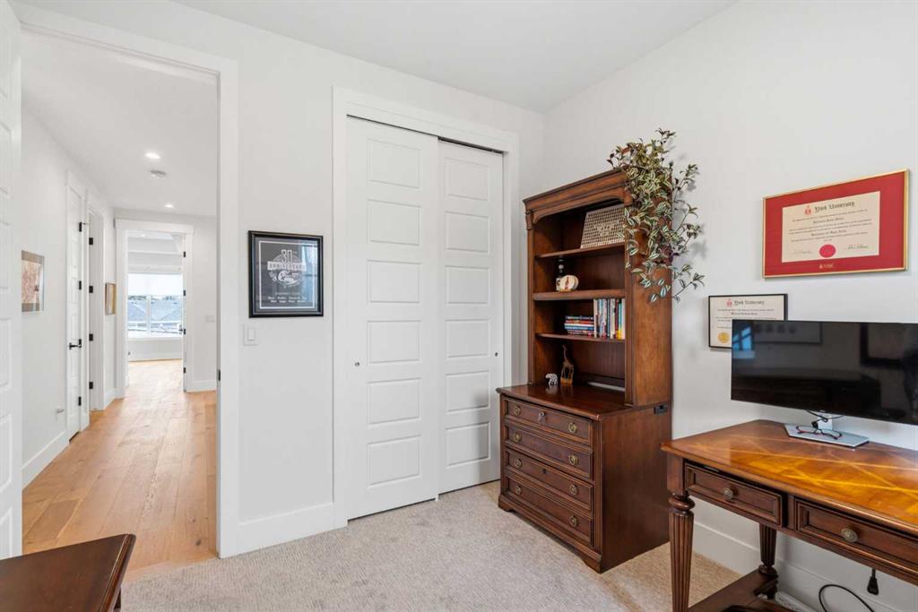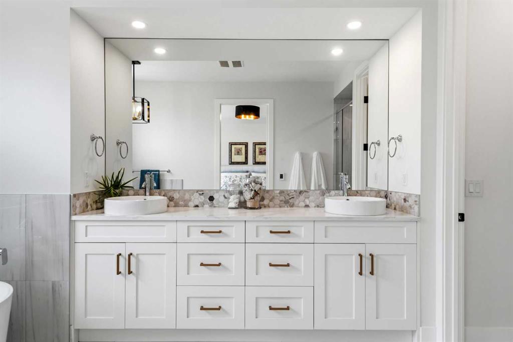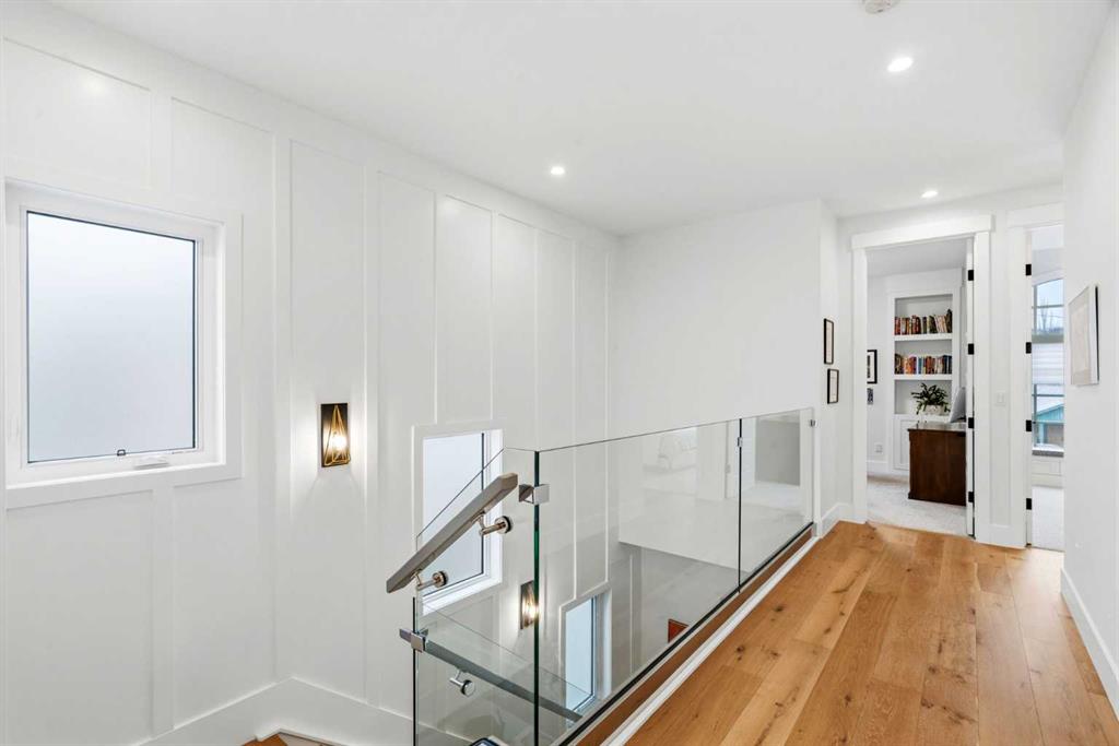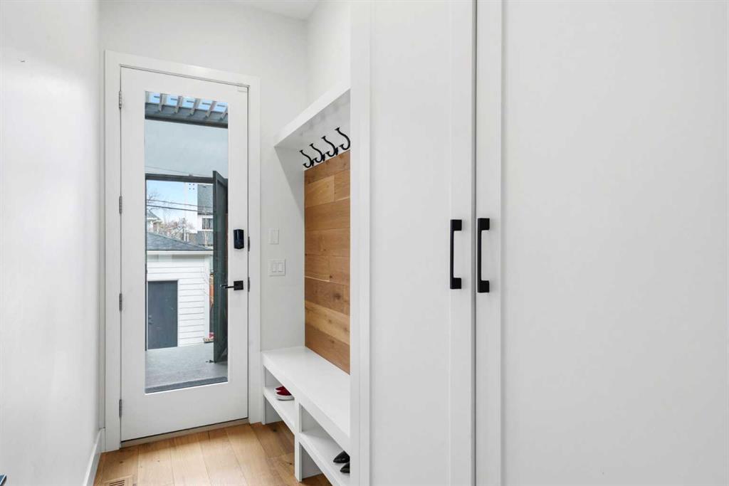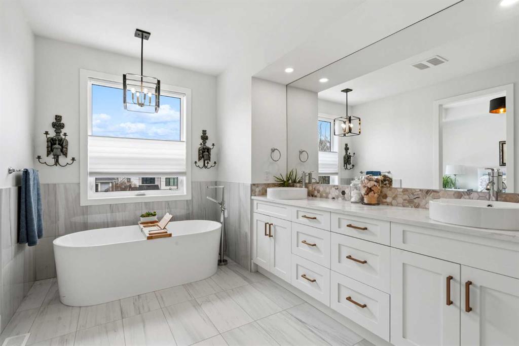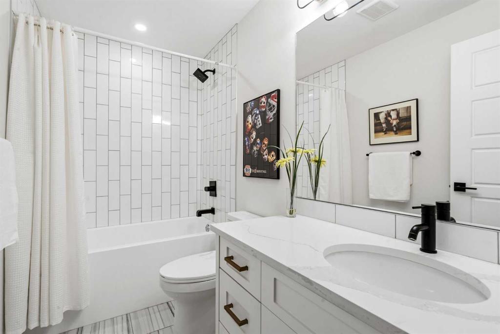 This exceptional, modern farmhouse style home, where architectural refinement & timeless design converge on a quiet, tree-lined street in the heart of Altadore. With 2,836 sq ft of curated living space, this stunning four-bedroom, 3.5 bath residence seamlessly blends upscale finishes with thoughtful functionality. Soaring 10 foot flat ceilings, engineered white oak wood flooring throughout, & striking 8 foot doors enhance the sense of openness & grandeur. Expansive windows flood the open concept main floor with natural light, illuminating a front dining area adorned with a detailed feature wall that flows effortlessly into the chef-inspired kitchen. The kitchen is designed for both everyday living & elegant entertaining & features custom, full height white cabinetry, subway tile backsplash, quartz countertops, a massive two-toned island with an eating bar & premium appliances, including a Bertazzoni gas range, dual full-sized fridge & freezer & drawer style microwave. The inviting living room offers a warm refined atmosphere, with a modern gas fireplace & custom built-ins. Large patio doors open to an expansive rear deck with a Suncoast enclosure featuring a motorized louvre roof and retractable screens - offering all-season outdoor living with adjustable sun, shade, and airflow. The mudroom with custom built-ins & a stylish powder room complete the main level. A dramatic architectural staircase with extra wide wood treads & sleek glass walls leads to the upper floor. The primary suite showcases a tray ceiling and a spacious walk-in closet. A sliding barn door leads to the spa-inspired ensuite, which offers in-floor heating, dual vanities, a freestanding soaker tub, an oversized glass-enclosed shower & a private water closet, delivering a serene experience. Two additional bedrooms, one with a walk-in closet, share a beautiful bathroom, while a dedicated laundry room with cabinetry & sink ensures everyday convenience. The fully finished basement is designed for both relaxation & entertaining, featuring in floor heating, a generous family room, a designer wet bar complete with open shelving, upper & lower cabinetry, & beverage fridge area, plus a fourth bedroom with a large walk-in closet & full bathroom. Enjoy seamless outdoor living with a private front patio, perfect for summer evenings & entertaining. Features include central air conditioning, in-ceiling speakers, custom blinds with blackout in the upstairs bedrooms, plus a fully insulated, drywalled, heated double detached garage with a paved lane. Perfectly positioned in one of Calgary’s most sought-after communities, this residence offers an unmatched lifestyle with exceptional walkability. Enjoy being just moments from River Park, Sandy Beach Park, Monogram Coffee, the vibrant shops, restaurants & cafes of Marda Loop. Quick access to Crowchild, Glenmore & Stoney Trail. This is a meticulously crafted home that delivers sophistication, comfort, and distinction at every turn.