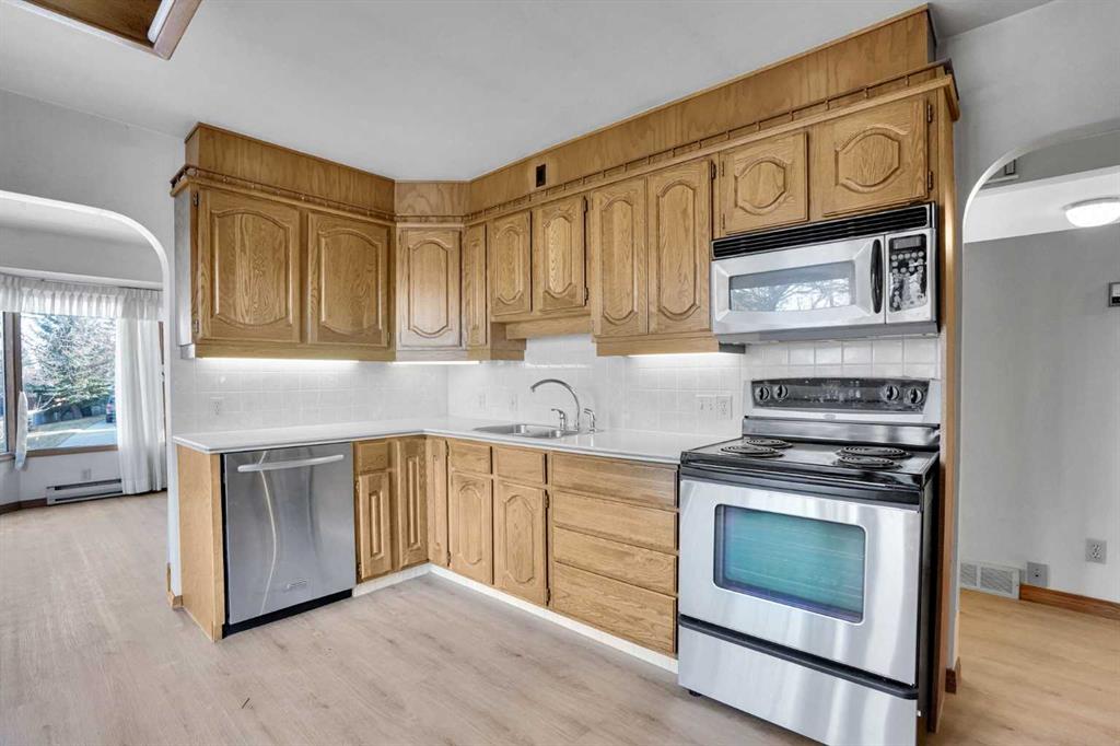 Nestled in the well-established community of Glendale and set on a generous 7,179 sq ft CORNER LOT, this beautifully maintained 1950's 3-bedroom bungalow offers incredible potential to become your ideal family home. BRAND NEW FLOORING AND FRESHLY PAINTED HOME. The main floor features spacious living and dining areas, a bright kitchen with stainless steel appliances, two comfortable bedrooms, and a charming 3-piece bathroom with classic 1950s retro tile. The fully developed basement includes a large family room with a fireplace, a versatile den/flex room, a 4-piece bathroom, and a dedicated laundry area. Outside, you'll love the mature trees in the front yard and the expansive backyard with a patio, perfect for outdoor gatherings, plus a DOUBLE DETACHED GARAGE for added convenience. Ideally located near parks, schools, shopping, public transit, and offering easy access to both 17th Avenue and Sarcee Trail.