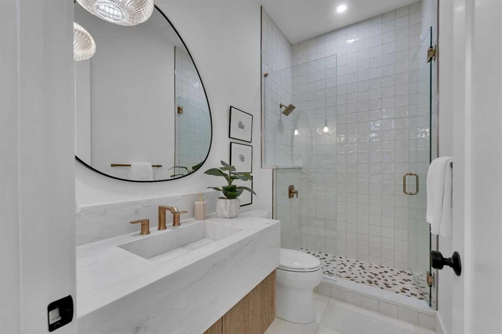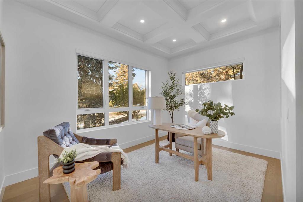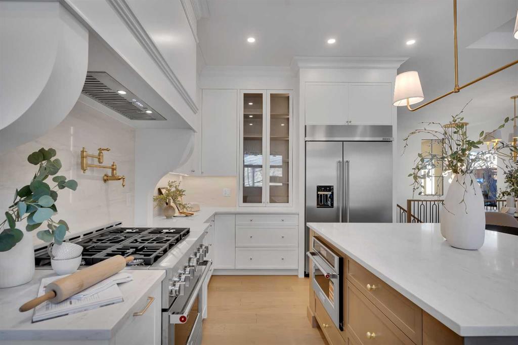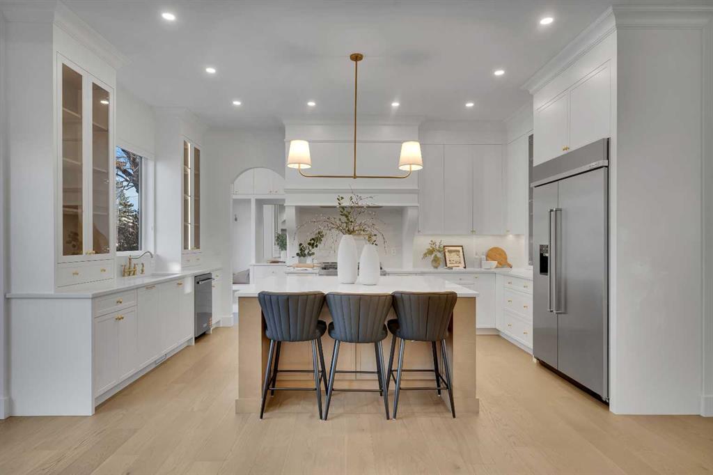 Welcome to this exceptionally renovated luxury bungalow, situated on a massive lot just steps from Confederation Park. Thoughtfully redesigned from top to bottom, this home blends timeless elegance with modern functionality, offering an unmatched level of quality and detail throughout. The main level impresses with 10-foot ceilings, 8-foot doors, and a striking 42” x 8’ custom entry door, creating an immediate sense of scale and sophistication. 7.5” engineered oak flooring, oak beams, and a beautifully finished coffered ceiling office add warmth and architectural character. The kitchen is equipped with custom appliances including a statement 48” refrigerator, enhanced by under- and in-cabinet LED lighting for both style and practicality. The spa-inspired ensuite features heated floors and a luxurious steam shower, while the main-level washroom showcases marble flooring, a custom vanity, and designer finishes. Custom closets, blinds throughout, and clean, casing-free windows complete the refined interior. This home is equally impressive behind the scenes with a water-on-demand system, AC rough-in, Progressive New Home Warranty, and a 200-amp electrical combo servicing both the home and rear garage. Car enthusiasts and hobbyists will appreciate the oversized heated front single garage, epoxy flooring in both garages, a triple heated rear garage, and even a dog wash station in the front garage. Outdoor living is elevated with a BBQ gas line on the deck and fully completed landscaping, including custom concrete flower beds in both the front and backyard. This is a rare opportunity to own a fully custom, substantially renovated bungalow on a premium lot in one of the city’s most desirable inner-city locations, steps to green space, walking paths, shopping and everything Confederation Park has to offer.