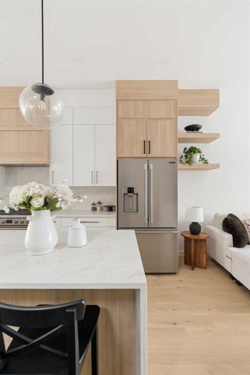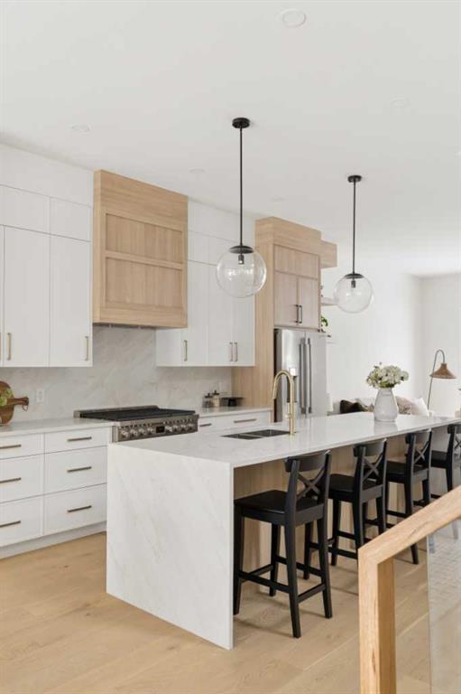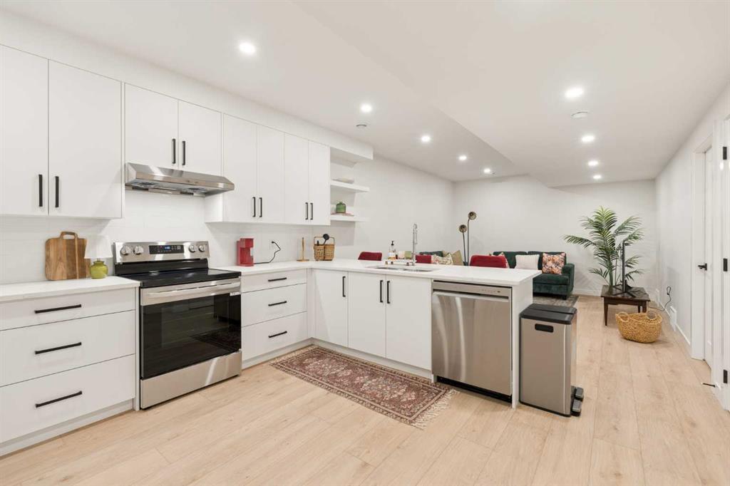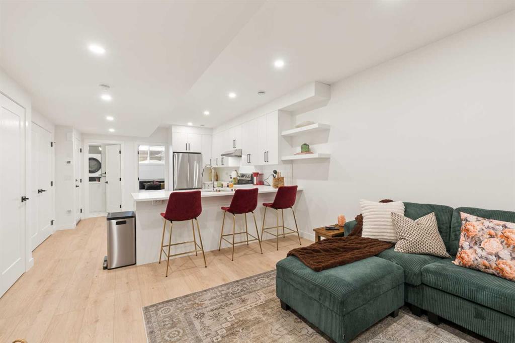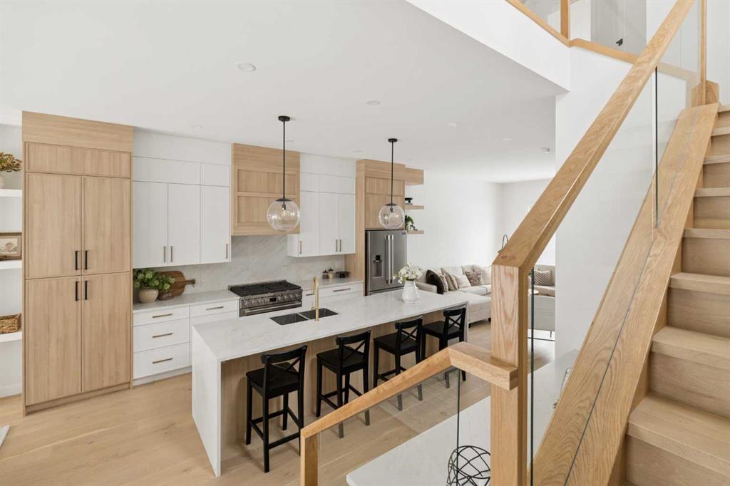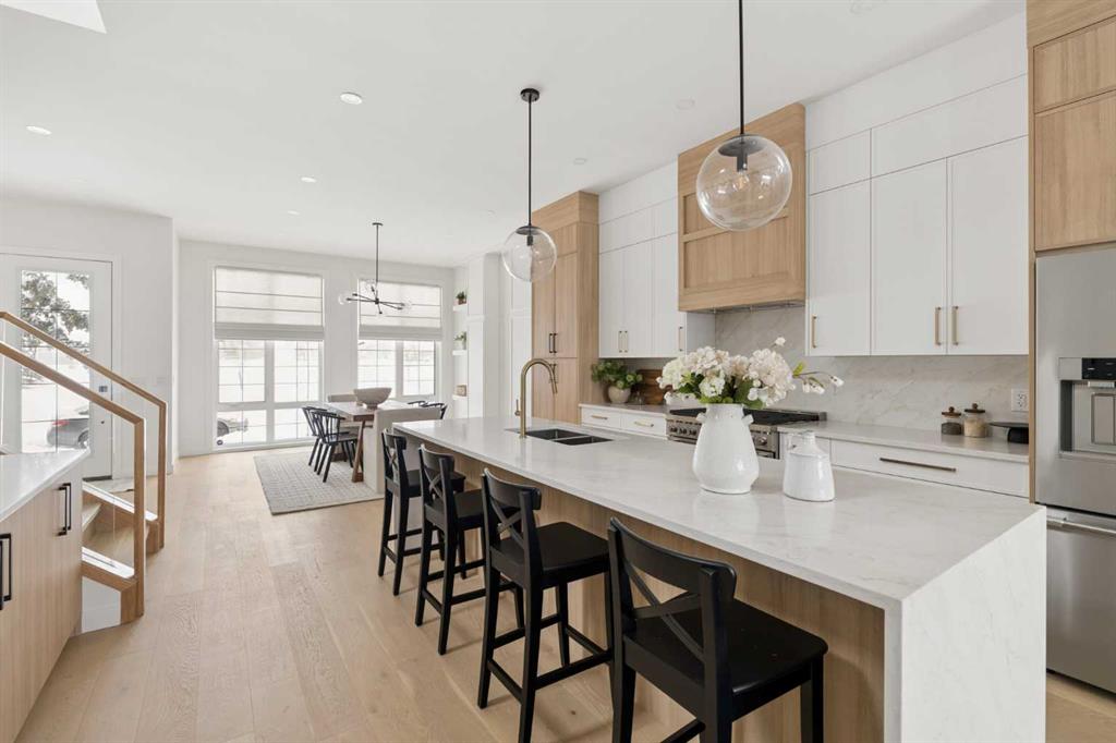 Where modern design, thoughtful craftsmanship, and an unbeatable park-front setting come together to create something truly special. Built in 2025 and perfectly positioned on an extra-deep 125’ lot, this home delivers a rare blend of style, space, and versatility in one of Calgary’s most sought-after inner-city communities. From the moment you step inside, you’re greeted by soaring ceilings, sleek architectural lines, and an abundance of natural light that fills the open-concept main floor. Oversized front-facing windows frame uninterrupted park views from the dining area, creating a stunning backdrop for everyday living and entertaining. At the heart of the home, the gourmet kitchen is a true showpiece, featuring custom two-tone cabinetry, integrated appliances, polished quartz surfaces, and a dramatic waterfall island designed for both casual gatherings and elevated culinary experiences. The living room is equally impressive, anchored by a full-height gas fireplace surround and seamless access to the spacious rear deck through expansive glass patio doors, perfect for effortless indoor-outdoor entertaining. A thoughtfully designed mudroom with built-in storage and a chic powder room add both function and flair to the main level. Upstairs, the primary retreat feels like a private sanctuary, complete with soaring ceilings, a bold feature wall, and tranquil park views. Enjoy a custom walk-in closet and ensuite featuring a freestanding tub, dual vanities, and oversized steam shower. Two additional bedrooms, a beautifully appointed main bathroom, and a full laundry room complete the upper level. The bright and spacious legal basement suite (with its own private entrance) offers exceptional flexibility. Updates to the home include custom window coverings throughout. Designed with the same attention to detail, it includes a contemporary kitchen with full-size stainless steel appliances, an open living area, a generous bedroom, a stylish 3-piece bath, and private laundry, ideal for multi- generational living or generating rental income. Outside, the expansive backyard is designed for both relaxation and entertaining, featuring a large deck, landscaped lawn, and easy access to the oversized finished double garage. All of this, just steps from parks, schools, the Killarney Aquatic & Recreation Centre, and the vibrant shops and restaurants along 17th Avenue SW, with quick access to downtown. This is elevated inner-city living at its finest, where every detail has been carefully considered and every space thoughtfully designed.