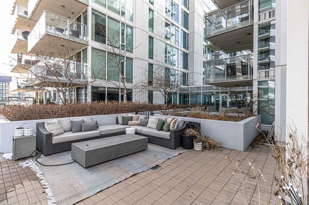 Discover the ultimate condo living experience in this stunning 2 bed + den unit at Evolution by Bosa Developments, nestled in the vibrant East Village of Downtown Calgary. This immaculate residence boasts an impressive and rare **500+ sq ft private patio** with sunny south exposure, a rare find in condo living—perfect for entertaining or enjoying a quiet evening outdoors. The thoughtful floor plan includes two spacious bedrooms, with the primary suite featuring an ensuite bathroom and a walk-in closet. The stylish kitchen is equipped with upgraded stainless steel appliances, including a gas range, elegant granite countertops, and a convenient breakfast bar, seamlessly flowing into the adjoining dining room and spacious living room, which provides direct access to the coveted outdoor space. Additional highlights include in-suite laundry, a den for your home office or extra storage, and parking for two vehicles in a tandem stall—eliminating the hassle of street parking and car shuffling. Residents enjoy exceptional building amenities, including concierge services, two fitness rooms, a steam room, sauna, and underground visitor parking. Located just steps away from transit, the C-train, river pathways, the zoo, and Prince's Island Park, this condo offers an unbeatable lifestyle in a thriving community. Don’t miss this wonderful opportunity to call this immaculate space home!