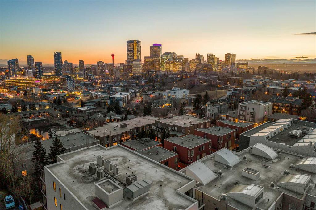2 BED 2 BATH | CORNER UNIT | STUNNING DOWNTOWN VIEWS | PET LOVERS DREAM | Welcome to the Portico, located in the desirable neighbourhood of Renfrew and right on the border of Bridgeland - two of Calgary’s most vibrant inner-city communities and just minutes from Calgary's downtown core. This gorgeous 2 bedroom, 2 bathroom corner unit offers nearly 900 sq ft of thoughtfully designed space, wrapped in floor-to-ceiling windows that flood this open-concept home with beautiful natural light. With S/SW exposure, you’ll enjoy the sunshine as well as stunning views of downtown and the iconic Calgary Tower - the sunsets are especially breathtaking! Inside, the kitchen features plenty of cabinetry, granite countertops, stainless steel appliances, and a raised bar for casual dining. The dining space has the sweetest custom-built breakfast nook from which you also get to enjoy the city views. The bright and airy living area features a cozy gas fireplace, perfect for Calgary winters. The spacious entryway makes a welcoming first impression, and the dedicated laundry room offers additional storage space to keep everything organized. One titled underground parking stall & a large secure storage locker is included. Step out onto your private balcony overlooking downtown, complete with a gas BBQ line - perfect for summer evenings with friends or quiet mornings soaking in the city views. Pet lovers or those with mobility issues will especially appreciate this unique building design. Entry is from the second level, meaning no elevator or stairs are required for you or your pup, while the unit itself is elevated above ground level for added privacy and security. The Portico is a pet-friendly building with fantastic off-leash parks nearby. Living here means getting to enjoy the cafés, restaurants, shops and river pathway systems that make Renfrew and Bridgeland so sought-after. Calgary favourites like Luke’s Drug Mart, Bridgeland Market, Bar Gigi, and Mari Bakeshop are all minutes away, with easy access to downtown. Step into the heart of Bridgeland and Renfrew living - comfort, convenience and community all in one place. This condo is the perfect opportunity to plant roots in one of Calgary’s best inner-city neighbourhoods.