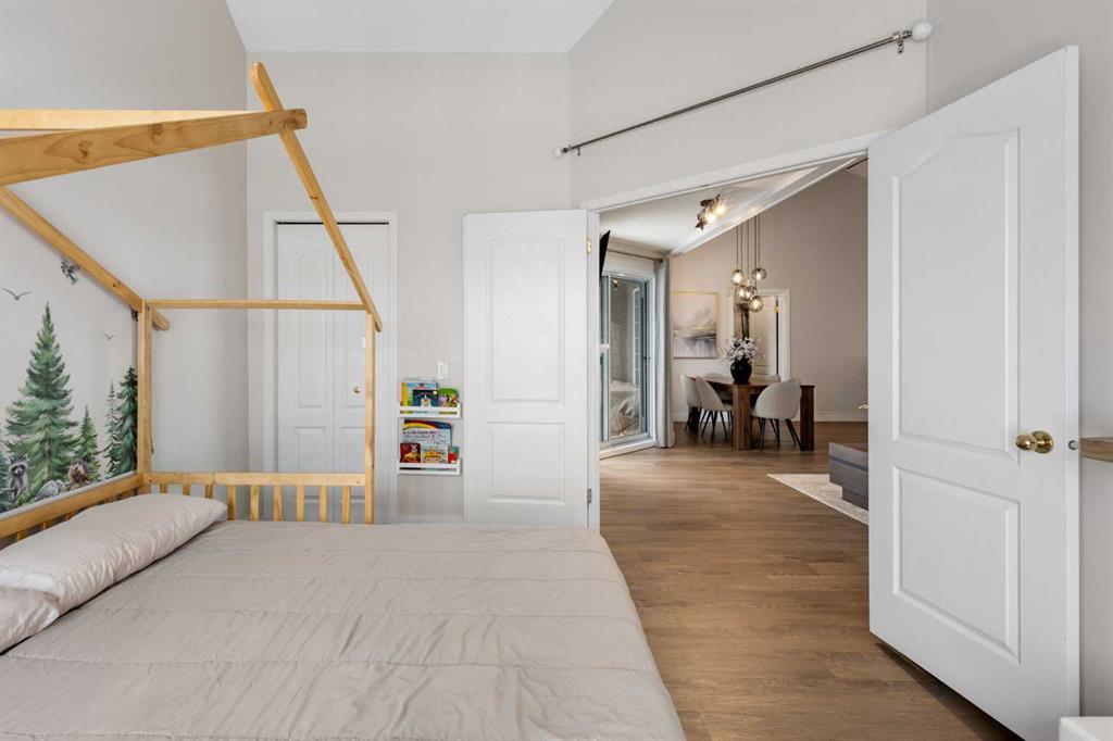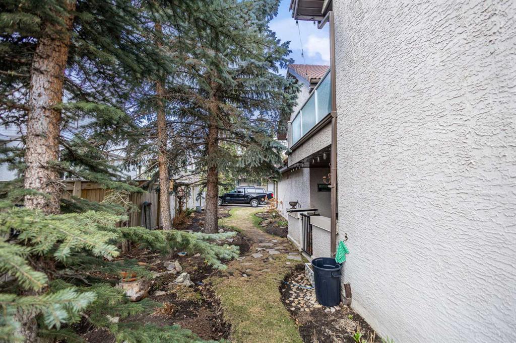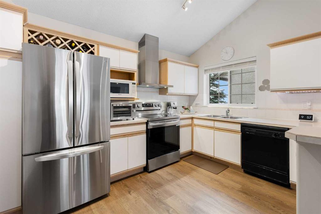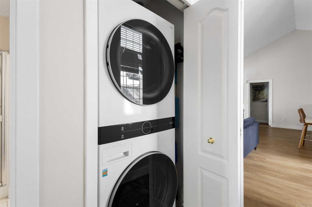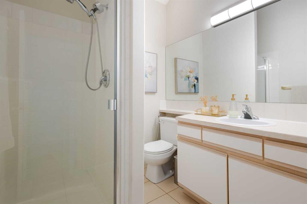 Wake up in Cactus Ridge and the first thing you notice is the light. Vaulted ceilings and oversized windows pull sun straight through the main floor — the kind of quiet, bright space that makes a Saturday morning coffee last twice as long. This upper-level stacked townhouse in Signal Hill overlooks Optimistic Park instead of a neighbour's window. That view is one of the reasons the current owners bought it. A wood-burning fireplace anchors the living room, and the whole space opens to a private balcony with a 25 sq ft storage room tucked off to the side. 1,221 sq ft, two bedrooms, two full bathrooms, and a floor plan that separates the primary from the second bed — the setup works for a dedicated home office, a guest room, or in-laws who stay a weekend. The primary has a 4-piece ensuite, walk-in closet, and a replaced bedroom window. The second bedroom sits across the plan with its own 3-piece bath. Underfloor heating runs through the entire home and into the attached garage. Warm floors from November through April, a low-dust, low-allergen environment, and a car you don't have to scrape at 7 a.m. in February. Recent updates from the sellers: full kitchen appliance package, washer and dryer, keypad front entry, security cameras at the door, balcony, and garage, a camera doorbell, new faucets and showerheads in both baths, LED stair lighting, digital thermostat, and new blinds on every window. Both bedroom windows have also been replaced. The home is pet-free and smoke-free — something allergy-sensitive buyers notice the moment they walk in. Outside the door: Sunterra Market, Starbucks, West Market Square, medical, dental, pharmacies, and the Bow River pathways are all inside a five-minute walk. Signal Hill and West Hills Shopping Centres are seven minutes by car. The complex has a private clubhouse residents actually use for gatherings, plus allocated parking directly beside the unit and ample visitor stalls. Move-in ready, with all furniture and décor available for separate purchase. Book a private showing or catch the open house.