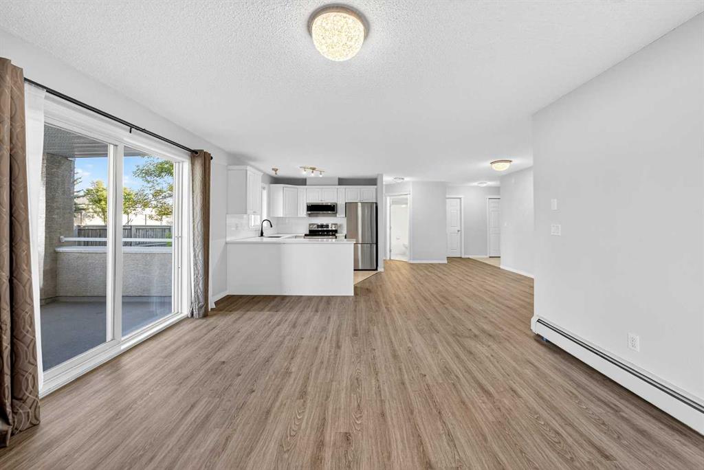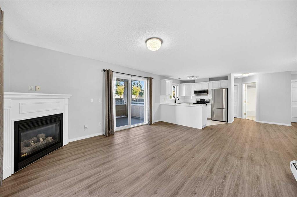 Welcome to Fairways Pavilions in Country Hills, a well-maintained complex offering comfort and convenience in a highly sought-after NW Calgary location. This bright 2-Bedroom, 2-Bath unit features an open-concept layout with a Kitchen finished with quartz countertops and stainless steel Samsung appliances. The Dining Area flows into a large Living Room with a cozy corner fireplace, leading to a well sized Balcony complete with gas hookup and storage room. The Primary Bedroom offers a walk-in closet and 3-piece Ensuite, while the Second Bedroom and full Bath are set apart for privacy. Vinyl Plank Flooring runs throughout the majority of the unit. The unit is finished with a Laundry Room with storage space. This unit also comes with a Titled heated underground parking stall, and the condo fee includes heat and water. Residents enjoy ample visitor parking and an unbeatable location with easy access to Country Hills Blvd, Stoney Trail, Deerfoot Trail, and the airport. Shops, restaurants, Landmark Cinemas, T&T Supermarket, Superstore, and Home Depot are all nearby, along with schools, parks, playgrounds, the VIVO Sports Center, and golf courses. This is a perfect choice for first-time buyers, downsizers, or investors looking for a move-in-ready home in NW Calgary.