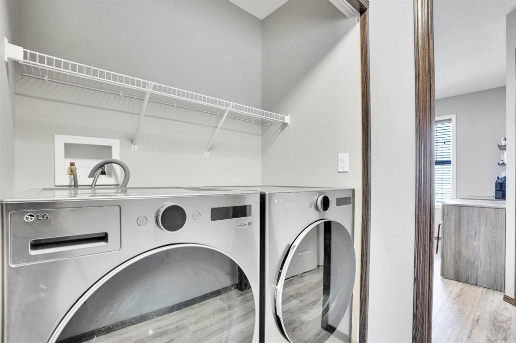 Welcome to 210 Cranberry Place SE, a charming and updated home in the heart of Cranston — just steps from parks, schools, shopping, public transit, and the community center. This well-maintained property offers great curb appeal and a sunny, south-facing backyard complete with a large L-shaped deck, a spacious shed, and a insulated double detached garage for added convenience. Inside, you'll find a bright, open-concept main floor with a front flex room that’s perfect for a home office or quiet reading space. The kitchen is well laid out with a center island and eat-up bar, a pantry, and all appliances have been replaced within the past year. The living and dining areas flow nicely together, and a 2-piece bathroom completes the main level. Upstairs offers a generous primary suite with a walk-in closet and full 4-piece ensuite, plus two additional bedrooms connected by a Jack & Jill bathroom. The laundry is conveniently located on this level as well. The developed basement includes two additional rooms that could function as bedrooms (note: no closets), a rec space, and a dedicated dog grooming room equipped with two grooming stations and a washing machine — all of which can be included in the sale or removed at the buyer’s request. This is an excellent opportunity to own a move-in ready home in one of Calgary’s most family-friendly communities. Book your showing today!