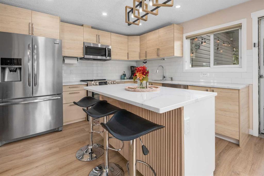 ****** Open house this Saturday 2-4pm ****** Welcome to this charming bi-level detached family home in the desirable Woodbine community. Step inside to a bright, open living room featuring vaulted ceilings and expansive windows that fill the space with beautiful natural light. The upper level has been upgraded with brand new flooring, classic subway tile backsplash and modern quartz countertop. This stunning home offers 2 bedrooms and 2 bathrooms on the main floor, plus a fully finished basement with an additional bedroom and full bathroom.. The primary bedroom is generously sized and features great size windows that brighten the room with abundant daylight, creating a bright and airy atmosphere, located at the end of the hallway, it serves as a private retreat complete with a 5-piece ensuite bathroom. The second bedroom is conveniently situated nearby, along with an additional full bathroom just outside the door for added convenience. Just off the kitchen, you'll find a beautiful deck that's perfect for entertaining, along with a spacious backyard ideally for children to play and families to enjoy outdoor time together. This property also offers exceptional convenience with a double attached garage at the front of the home for easy access. In addition, there is an extra parking space at the back that can also be used as a RV parking, ideal for families with multiple vehicles or those who love to travel and explore. A private entrance to the basement making it a fantastic bonus that offers a full kitchen, large windows, a cozy living room and a good sized bedroom. It also includes a full bathroom and its own furnace for independent temperature control. This home is made for family memories from bedtime stories to birthday celebrations. The only thing better than owning this beautiful home is sharing it with the ones you love. Welcome home!