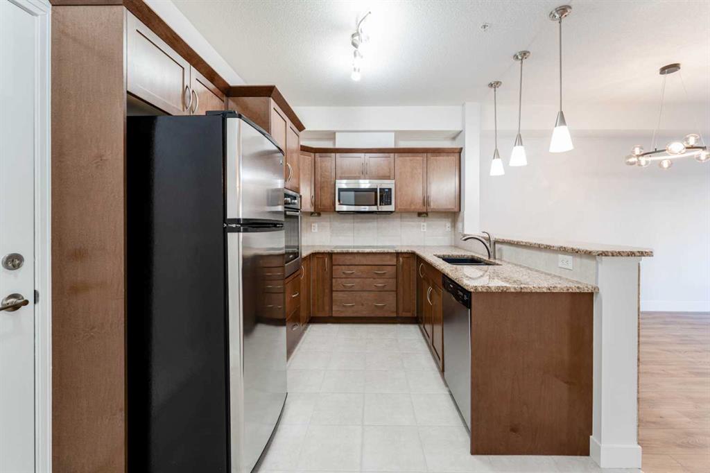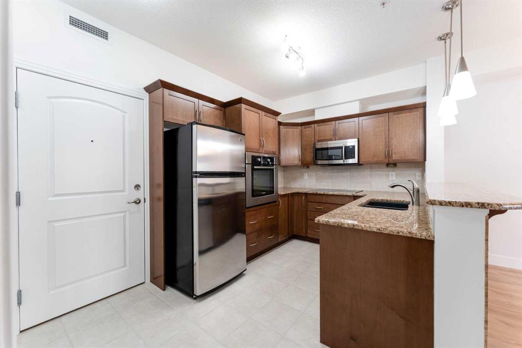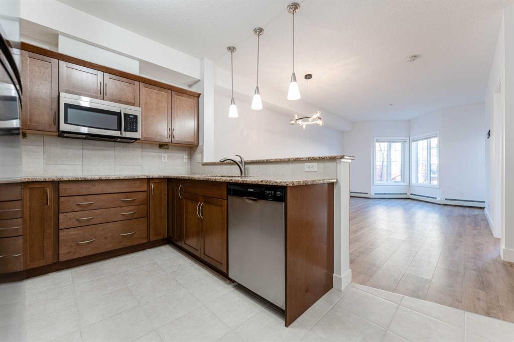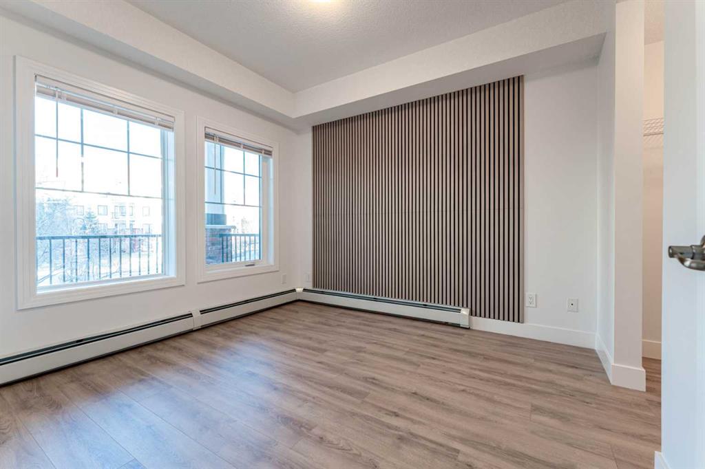 Welcome to unit 214 at the Ravensburg. A nicely updated and modernized unit at Red Haus, a highly sought after condo complex in the beautiful community of Royal Oak in Calgary. This residence represents a calculated move for those prioritizing functional design and immediate move-in readiness. The interior has been professionally sharpened with brand new flooring throughout and a custom architectural slat feature wall in the primary suite. This is a sophisticated detail that provides a modern, textured aesthetic rarely found in this price bracket. The layout is engineered for high-utility living, featuring an open-concept kitchen with granite countertops, stainless steel appliances, a raised breakfast bar, and a dedicated built-in workstation. This is essential for the modern home headquarters. The primary bedroom offers a logical flow with a walk-through closet leading to a dual-access bathroom, functioning as a private ensuite while maintaining accessibility for guests. The infrastructure of this property is robust. It includes in-suite laundry, an underground titled parking stall, and a secure underground storage locker. Beyond the unit, the Ravensburg offers a comprehensive amenity package with a fitness center and resident party room. Notably, the complex provides an abundance of visitor parking, effectively removing a primary friction point of Northwest condo living. Located within walking distance to the Royal Oak Shopping Centre and transit links, this is a strategic acquisition for the discerning buyer. Call to schedule your private showing.