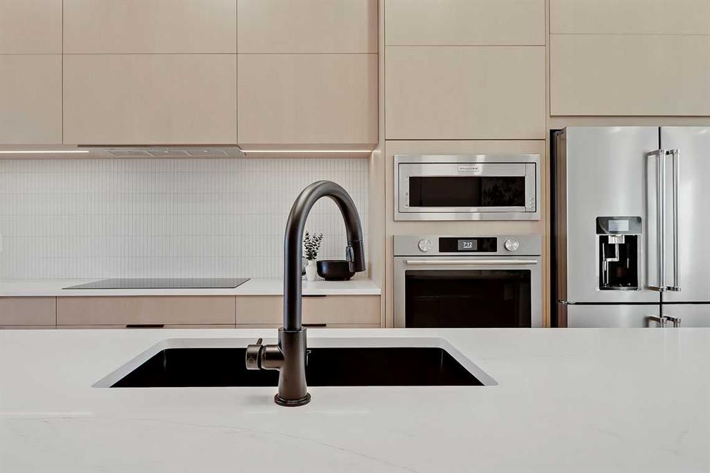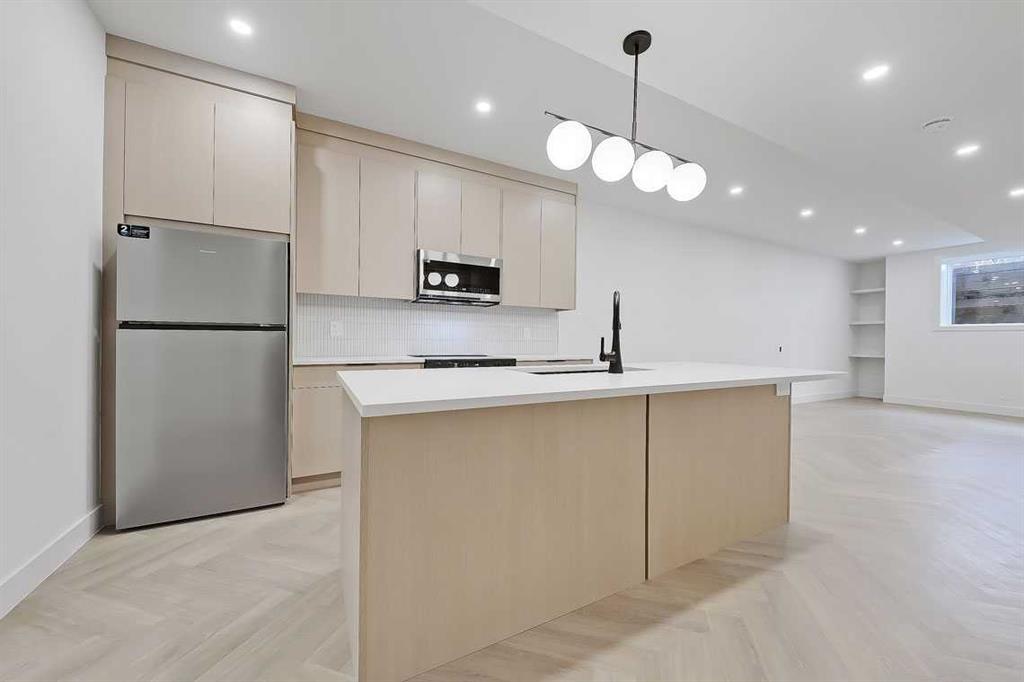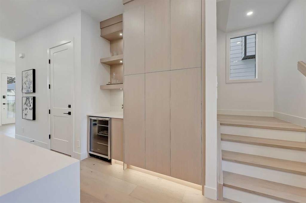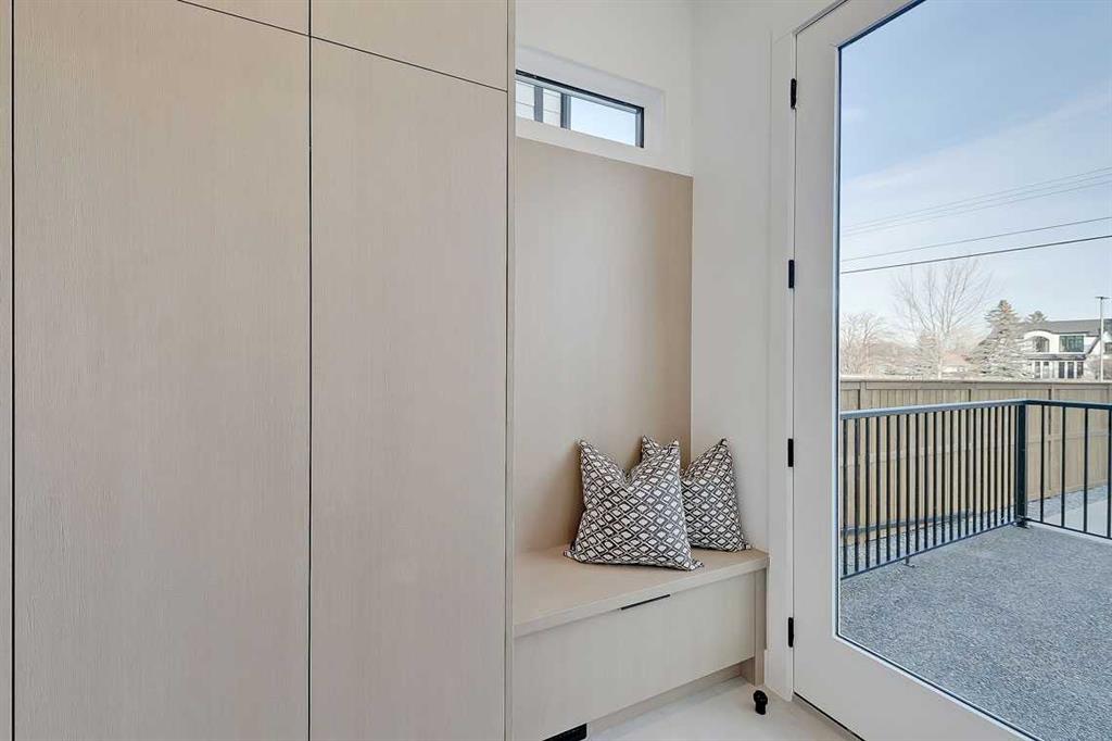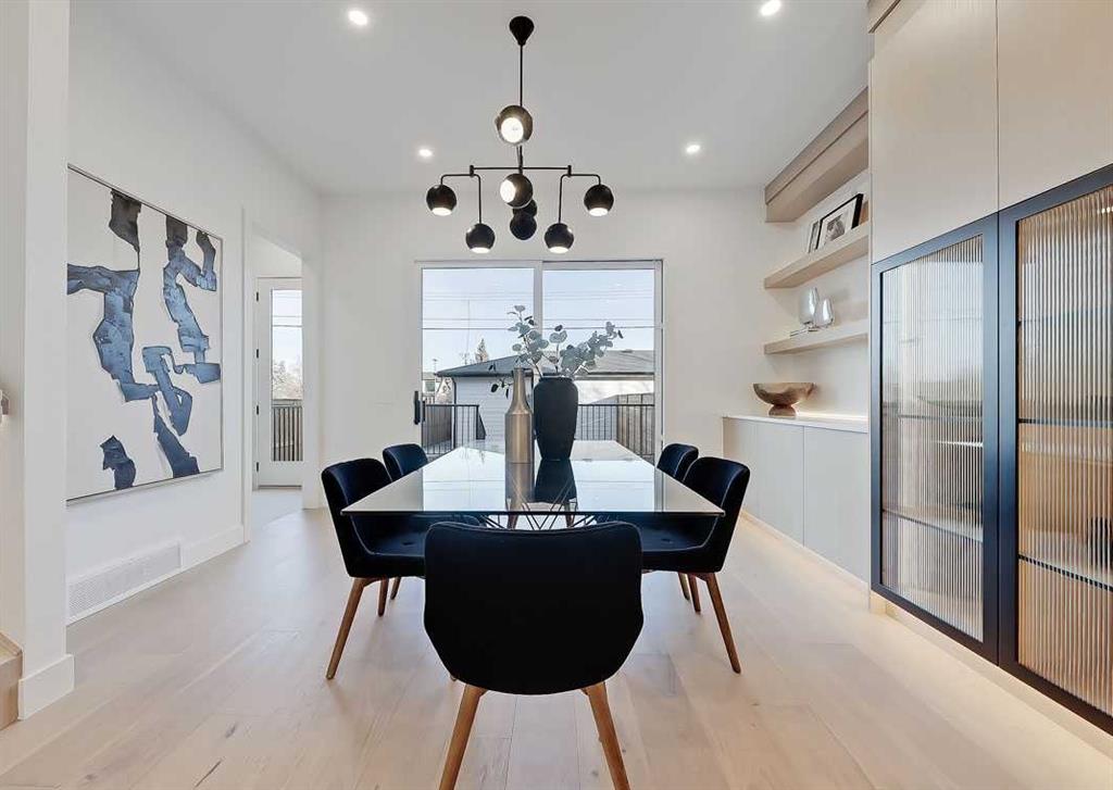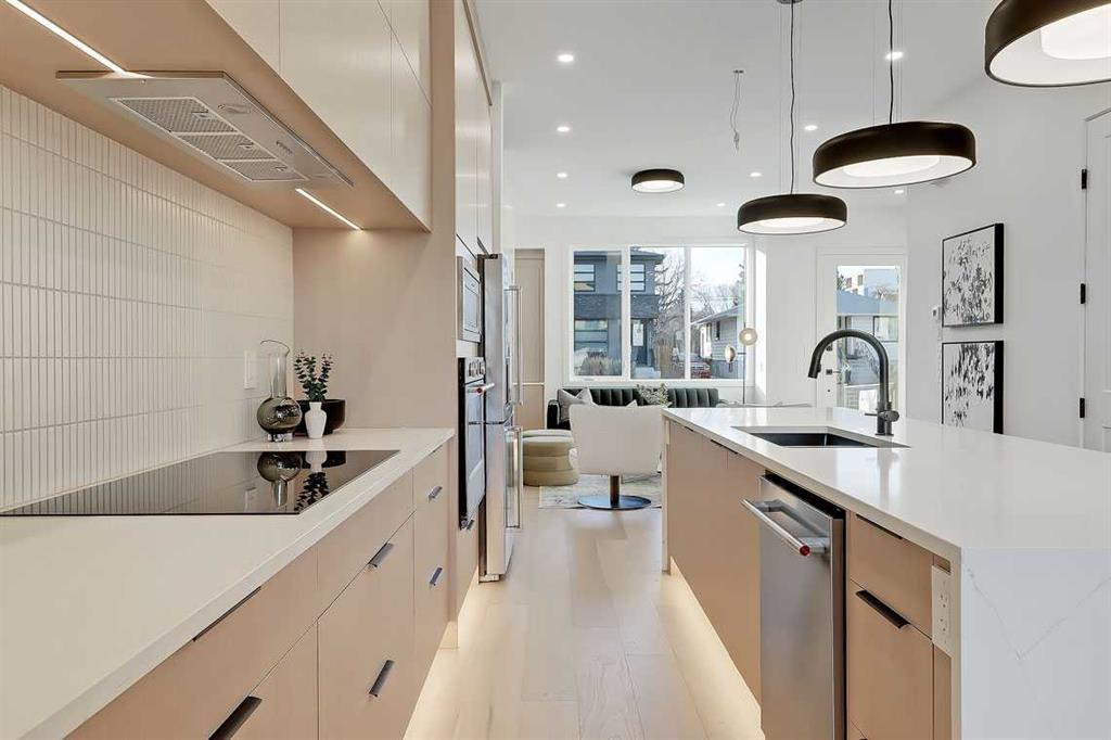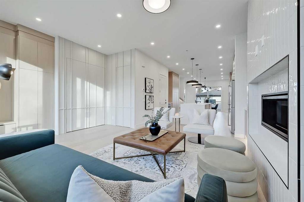 This architecturally striking semi-detached infill in Killarney is a refined expression of modern Scandinavian design, thoughtfully layered with mid-century modern elements. Clean lines, warm wood tones, minimalist detailing, and intentional functionality come together in a home that feels both sophisticated and welcoming. With three fully finished levels and an RARE EXTENDED BASEMENT featuring a legal 2-bedroom suite, this residence offers elevated design, smart versatility, and exceptional income potential in one of Calgary’s most desirable inner-city communities. Step inside to a bright, airy foyer where clean millwork and a built-in bench create an organized and understated welcome. A discreet, hidden door conceals the powder room, maintaining the seamless, minimalist aesthetic that defines the main floor. The open-concept layout is enhanced by 10-foot ceilings, oversized windows, and warm natural finishes that reflect Scandinavian simplicity while mid-century inspired lighting and architectural detailing add depth and character. The living room is anchored by a sleek fireplace and flows effortlessly into the kitchen — a space designed as beautifully as it performs. Quartz countertops, full-height custom cabinetry, a built-in pantry & coffee station, and stainless steel appliances offer both style and functionality. The oversized island invites gathering & connection. The dining area is a standout architectural feature, complete with a built-in decorative buffet showcasing full-length shelving with integrated lighting & elegant fluted glass cabinetry. This thoughtfully designed focal point adds warmth, texture, and curated display space while enhancing the home’s cohesive Scandinavian aesthetic. Expansive sliding doors open from the dining space, seamlessly extending the living area onto the rear deck and backyard — creating effortless indoor-outdoor flow ideal for entertaining and everyday living. At the back of the home, a mudroom with sleek built-in storage & bench seating adds everyday convenience without compromising the streamlined design. Upstairs, the primary retreat offers a vaulted ceiling, private WEST facing balcony, and a spa-inspired ensuite with dual vanities, a soaker tub, and glass-enclosed tiled shower with body jets. Two additional bedrooms, a full bath, and upper laundry complete the level. The extended basement is fully developed into a self-contained legal 2-bedroom suite featuring HERRINGBONE floors, a full kitchen with quartz counters, island with seating, separate laundry, a 4-piece bath, and an oversized living & dining area that create a space that feels open, comfortable, and far above typical lower-level living. Walking distance to Shaganappi LRT, local amenities, schools, parks, and the Killarney Aquatic Centre — with quick access to downtown & major routes — this home offers the perfect balance of timeless design and everyday functionality. Experience elevated inner-city living in Killarney — book your private showing today.