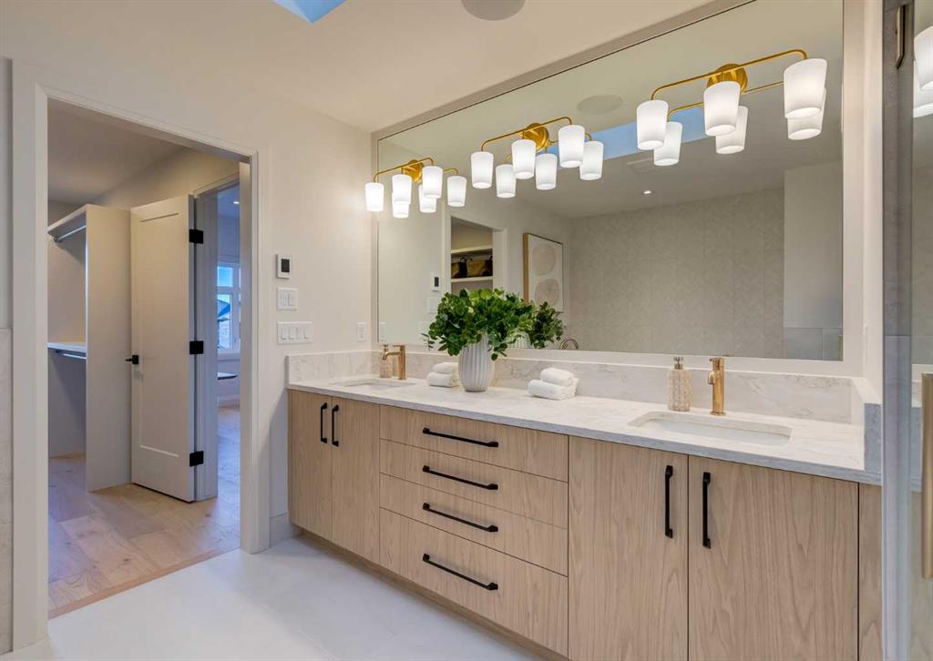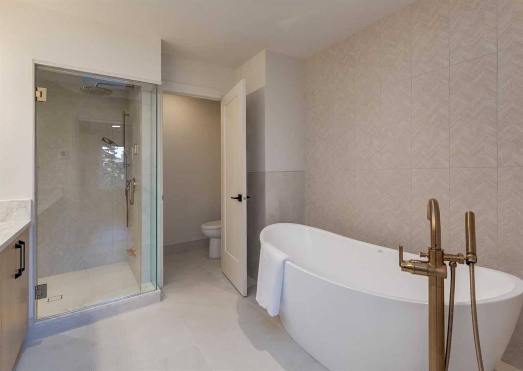 Welcome to this brand-new, exquisitely designed custom home with a West backyard built by Treehouse Developments — an award-winning builder celebrated for quality craftsmanship and thoughtful design. Located in the heart of Killarney, this property stands apart from the typical infill with its elevated finishes, concrete party wall, full New Home Warranty and a level of luxury rarely found, offering both peace of mind and timeless appeal. It’s packed with upgrades throughout and offers a truly refined living experience. Step inside to a welcoming foyer and dining room that flow seamlessly into an open-concept kitchen and living area, ideal for both everyday living and entertaining. The kitchen is equipped with high-end Fisher & Paykel appliances, stone countertops throughout, a large island, walk-in pantry, and stunning white oak rift-cut cabinetry. Extensive custom built-ins are thoughtfully integrated into the foyer, mudroom, and living room, adding function and elegance throughout the main floor. The living room features a marble-clad fireplace complete with Frame TV and sliding patio doors leading to a spacious maintenance-free composite deck. A functional mudroom off the rear entry leads directly to the garage, making daily routines effortless. Upstairs, a dramatic skylight floods the stairwell with natural light, leading to three bedrooms. The primary bedroom is impressively spacious, creating a true retreat with a spa ensuite that includes a standalone tub, steam shower with handheld, and heated floors. The main bath offers double sinks and a dedicated beauty bar, while upstairs laundry provides added convenience. Custom built-in closets are found throughout. The fully developed basement includes a large rec room with dry bar and bar fridge, a bedroom suite with walk-in closet and ensuite, and hydronic in-floor heating paired with an on-demand boiler for year-round comfort. A central AC/heat pump system adds modern efficiency. Outside, enjoy the fully landscaped private sunny yard and an oversized 21' x 21' garage, insulated and drywalled to fit a truck. The exterior blends stone, cedar accents, and Hardie siding for striking curb appeal. This home is move-in ready and exemplifies the craftsmanship, quality, and design that make Treehouse Developments a standout builder in Calgary. It’s rare for a Treehouse-built home to hit the market, making this a special opportunity to own a truly exceptional property.