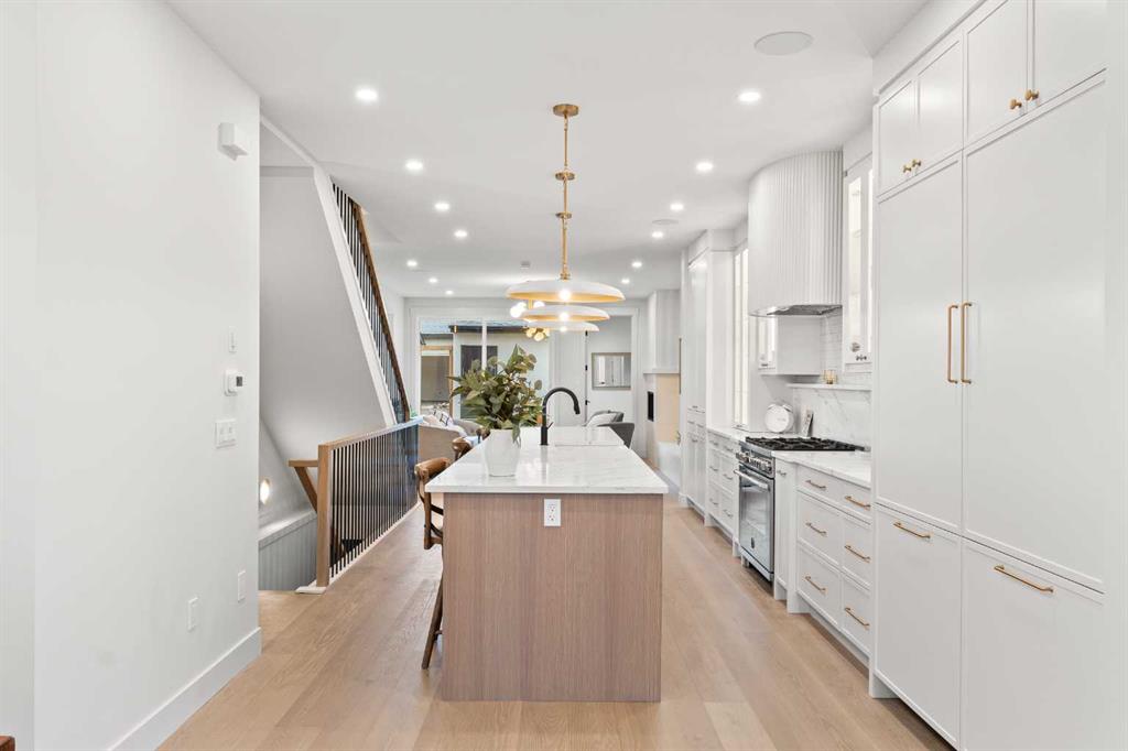 Your chance to own a true masterpiece on an extra deep lot situated on one of Calgary’s most coveted inner city streets! Welcome to this exquisitely designed, 4,058 sqft of fully developed space, 3 storey DETACHED home where custom craftsmanship and modern luxury converge. Located on one of the most desirable streets in Richmond, this expansive residence offers 5 generous bedrooms(2 primary bedrooms), 5 bathrooms, a double detached garage, and state of the art finishings. Boasting panoramic city views, a sunny West facing backyard and a wide paved back alley, this home is an exceptional example of refined living. Step inside to discover a thoughtfully laid out main floor that includes a functional mudroom with built-in cubbies, an expansive living room featuring a decorative gas fireplace and a gourmet kitchen with a large central island and high end appliances. The dining room provides a spacious area for family meals and entertaining while a tucked away 2pc guest bathroom adds convenience. A home office for work or study and grand foyer complete the first level offering both style and practicality. The second level is dedicated to ultimate comfort where the luxurious primary suite features a private balcony with breathtaking views, two expansive walk- in closets (his and hers) and a spa like 5pc ensuite with a dual vanity, soaking tub and a glass enclosed shower. Two large bedrooms share a beautifully appointed Jack & Jill 5pc bathroom, complete with a dual vanity and a tub/shower combo. The laundry room with side by side washer and dryer adds to the functional elegance of this level. The third level offers a versatile loft space perfect for a family room, media room or creative studio. The large bedroom equipped with a stunning 4 pc bathroom, walk in closet, and a cozy space for a seating area, is the perfect multi use oasis. A wet bar and expansive balcony makes this level an entertainer's dream. The fully finished basement is the ideal space for relaxation with a spacious family room featuring a wet bar, a wine cellar room, plenty of storage closet space and a generously sized 4th bedroom with a 4pc bathroom. With its enviable location, luxurious finishes and extensive living space this home offers the perfect balance of comfort, style and sophistication.