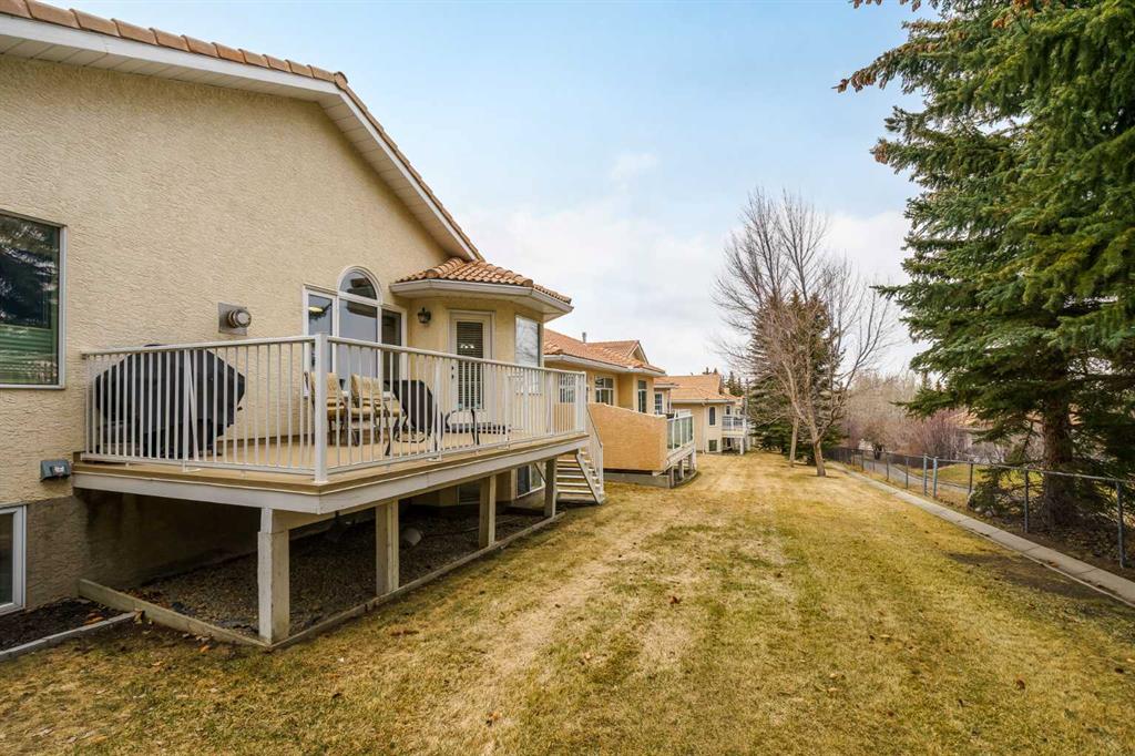 BACKING ONTO THE HAMPTONS GOLF COURSE — just a 4 minute walk to the clubhouse — this executive attached villa is located in the highly sought-after Hamptons Club Chateaux. Offering a double attached garage, 1 + 2 bedrooms, and 2.5 bathrooms, this home also features two fireplaces and an exceptional layout. The main floor showcases soaring 12-foot vaulted ceilings, hardwood flooring, a private den/office, and a convenient mudroom with washer and dryer. You’ll also find a half bath, formal dining area, and an open-concept living room with a cozy gas fireplace. The bright breakfast nook overlooks the golf course, while the well-appointed kitchen includes granite countertops, an undermount sink, dishwasher, cooktop, built-in wall oven and microwave, fridge, and ample storage. The primary bedroom is ideally situated on the main floor, complete with a walk-in closet and a spa-inspired ensuite featuring a new, oversized soaker tub and separate shower. The fully developed lower level offers two additional bedrooms, a full bathroom, a spacious family room with a second fireplace, and several custom built-in shelving units. Recent updates include the removal of all Poly B plumbing (2024), new furnace, hot water tank, water softener, air conditioning (2024), and several new Lux windows. Unbeatable location — just minutes to Stoney Trail (Calgary Ring Road) and Deerfoot Trail, 20 minutes to Calgary International Airport, and 25 minutes to downtown. Only 10 minutes to Beacon Hill Shopping Centre, with convenient access to Costco, banks, gyms, Staples, Canadian Tire, Home Depot, restaurants, grocery stores, and more. This is a fantastic opportunity to own a beautiful home in a premier location — don’t miss it!