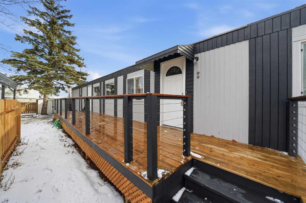 Discover this charming, spacious mobile home, tastefully updated to offer modern comfort and style that works as a perfect canvas to add your own personal touches. With two large bedrooms and a convenient Jack & Jill bathroom accessible from both the primary bedroom and hallway, this home is perfect for families or those seeking a functional layout. Recent upgrades completed within the last 9 months include fresh paint throughout the interior and exterior, new LED light fixtures, and a newly installed back door. Enjoy the natural light streaming in from the new windows in the kitchen, living room, and dining room. The bathroom has been updated with 2 new vanities, a new toilet, updated plumbing and electrical, new lighting and stylish new backsplash tiles. The kitchen also boasts a newly installed dishwasher and new tile backsplash to make it modern and functional. The back entry and laundry area has been updated to include additional shelving and a laundry sink with cabinet to make laundry a breeze. Step outside on to a newly built oversized deck with decorative railings and a fully-fenced yard — ideal for entertaining, relaxing and hanging out with the family. A brand-new carport large enough to fit a full-sized pickup truck will keep your vehicle protected year-round and still allows room for a second car to be parked in the driveway. This home is nestled in the welcoming, family-friendly community of Calgary Village. Managed by Cove Communities, the community centre provides on-site staff, as well as amenities like a games room, fitness room, community kitchen that can be used for large gatherings, and a playground for residents to enjoy. Monthly pad rental fee of $1299 includes your garbage, recycling, sewer, water, community maintenance, security patrols and professional management fees. Move right in and experience the perfect blend of modern updates and community living. Don’t miss your chance—schedule a viewing today!