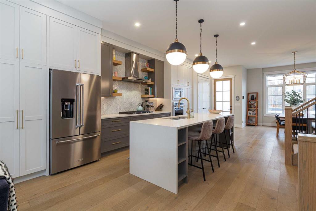 * * * PRICE REDUCED $20,000 OPEN HOUSE SUNDAY DEC 7 FROM 1 - 3 PM* * * SYLISH l SOPHISTICATED l TIMELESS DESIGN l MODERN LUXURIOUS FINISH l FULLY UPGRADED l INCREDIBLE CURB APPEAL IN KILLARNEY l WEST FACING YARD l MATURE LANDSCAPING l DEVELOPED STREET l 4 BED + 3.5 BATH l OVER 3050 SQFT OF LIVING SPACE l Welcome Home… to this stunning modern farmhouse infill that masterfully blends sophistication, comfort, and contemporary style. Upon entry, you’re greeted by 10 ft ceilings & an elegant front formal dining room w/ custom feature wall, hardwood flooring that flows seamlessly throughout the main floor. The gourmet kitchen centers around a sprawling island, perfect for entertaining, and opens to a bright living area featuring a sleek contemporary fireplace with custom built-ins. Large sliding patio doors extend the living space outdoors to a full-width deck and a beautifully landscaped, west-facing backyard. Upstairs, 9-foot ceilings and warm hardwood floors create an inviting atmosphere. The exquisite primary suite serves as a true retreat, complete with heated floors, a luxurious steam shower, dual walk-in closets, and a private flex area ideal for a coffee bar or vanity. Two spacious secondary bedrooms, a full bath, and a convenient upper laundry room complete the second level, combining style with everyday practicality. The fully developed basement adds yet another level of comfort and versatility, featuring a large media room with built-in cabinetry, a wet bar, a 4th bedroom with a full bathroom, and a roughed-in hydronic heating system for future comfort. Ideally located just minutes from downtown, top schools, and boutique shopping, this home offers refined urban living with every modern amenity.