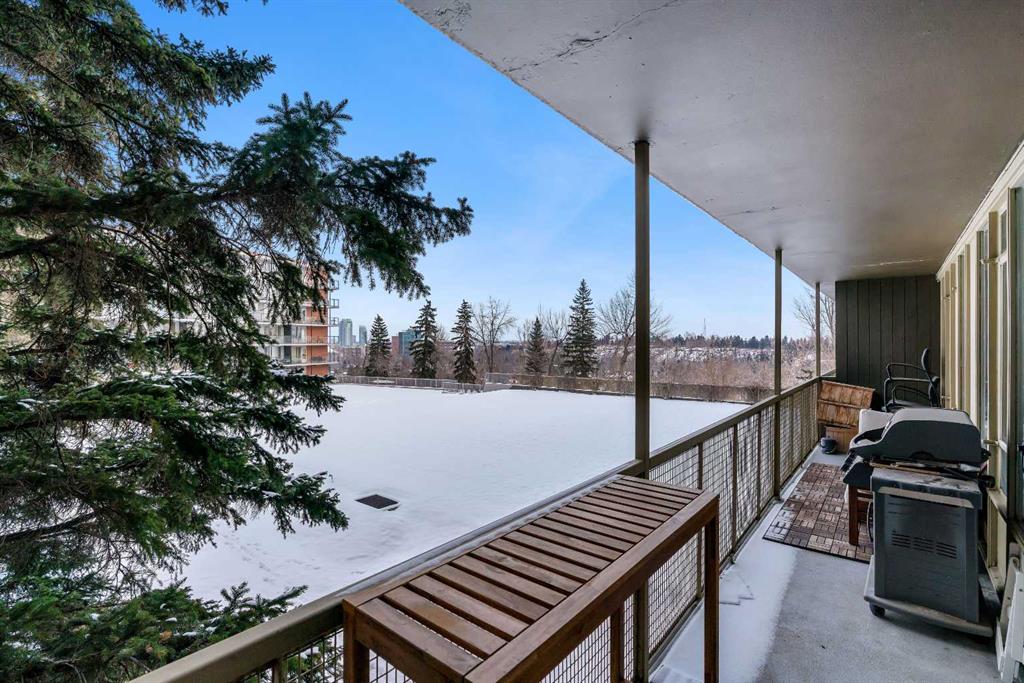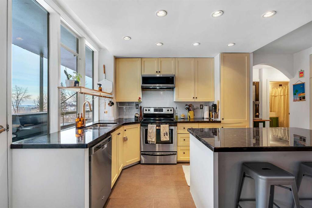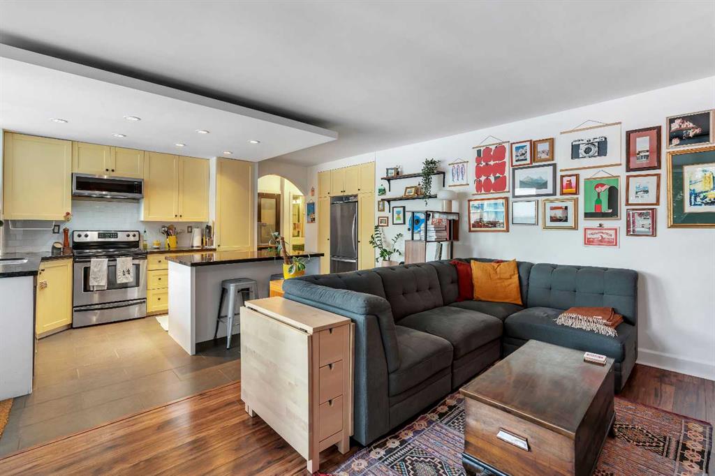 Don’t miss this stylish, move-in-ready 1-bedroom condo in beautiful Rideau Towers. Rutland House is set in a quiet, park-like setting just a short walk to the river and pathways, 4th Street, the downtown core, and the Stampede Grounds. This bright unit features an open floor plan with huge windows and a spacious living area open to the kitchen, complete with granite countertops, stainless steel appliances, a large island with seating, and tons of storage. The bedroom offers a walk-in closet and in-suite laundry, while the updated bathroom includes a deep soaker tub and modern vessel sink. Enjoy summer evenings on the massive 31-foot balcony that spans the length of the unit and overlooks the private, beautifully manicured grounds. Additional highlights include a storage locker, laundry facilities, ample street and visitor parking, and an outdoor pool. This quiet, pet-friendly building is truly special and in an ideal location. Whether you’re entering the market or looking to downsize, this is your opportunity to enjoy urban living at its best.