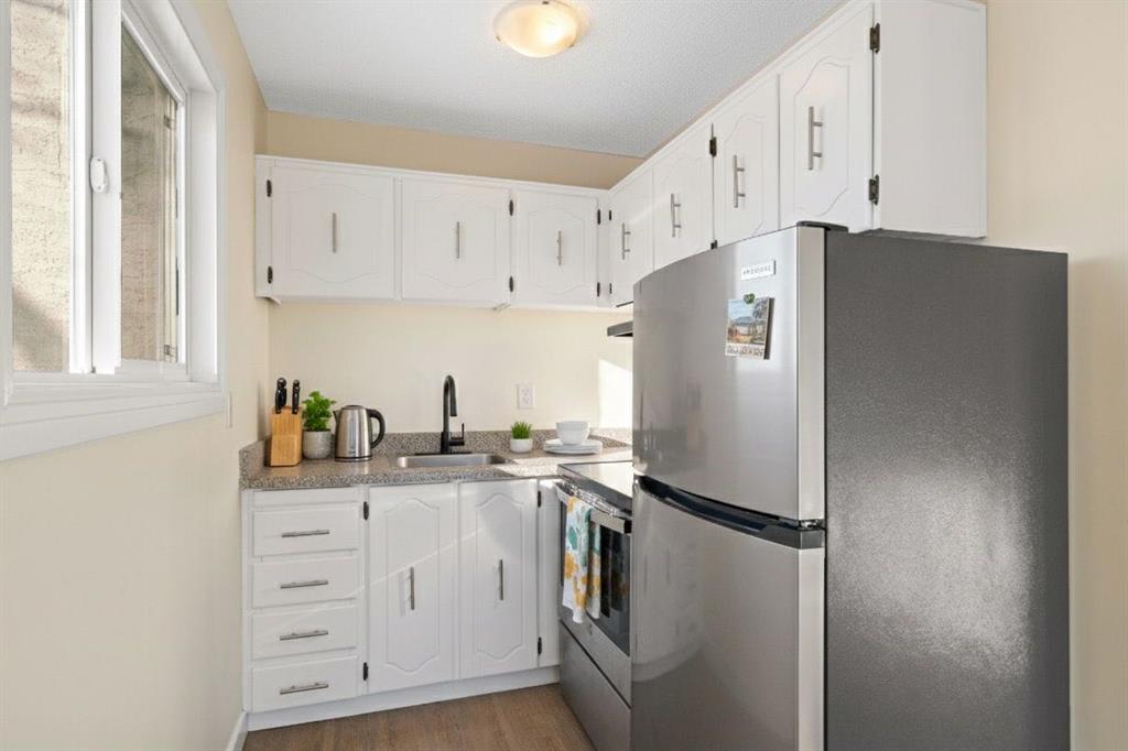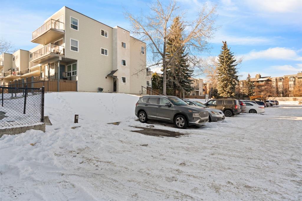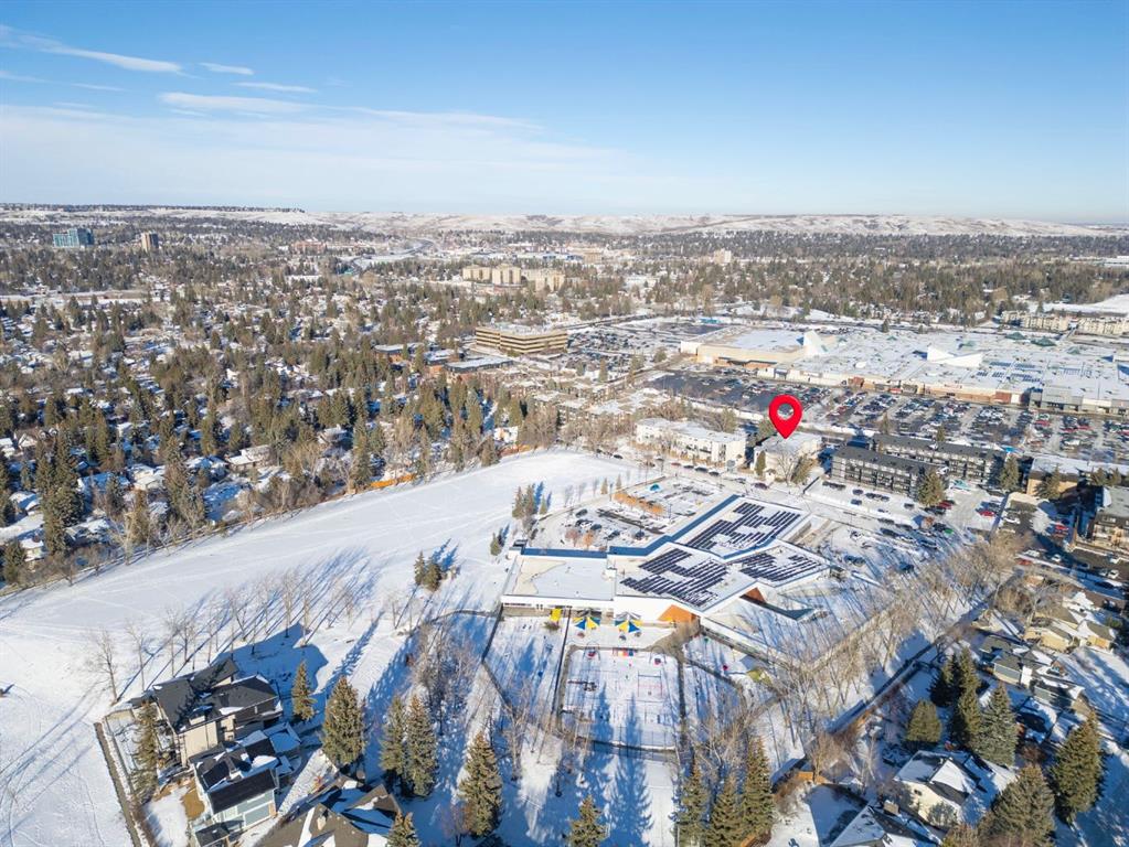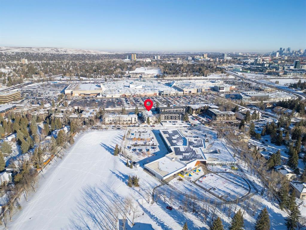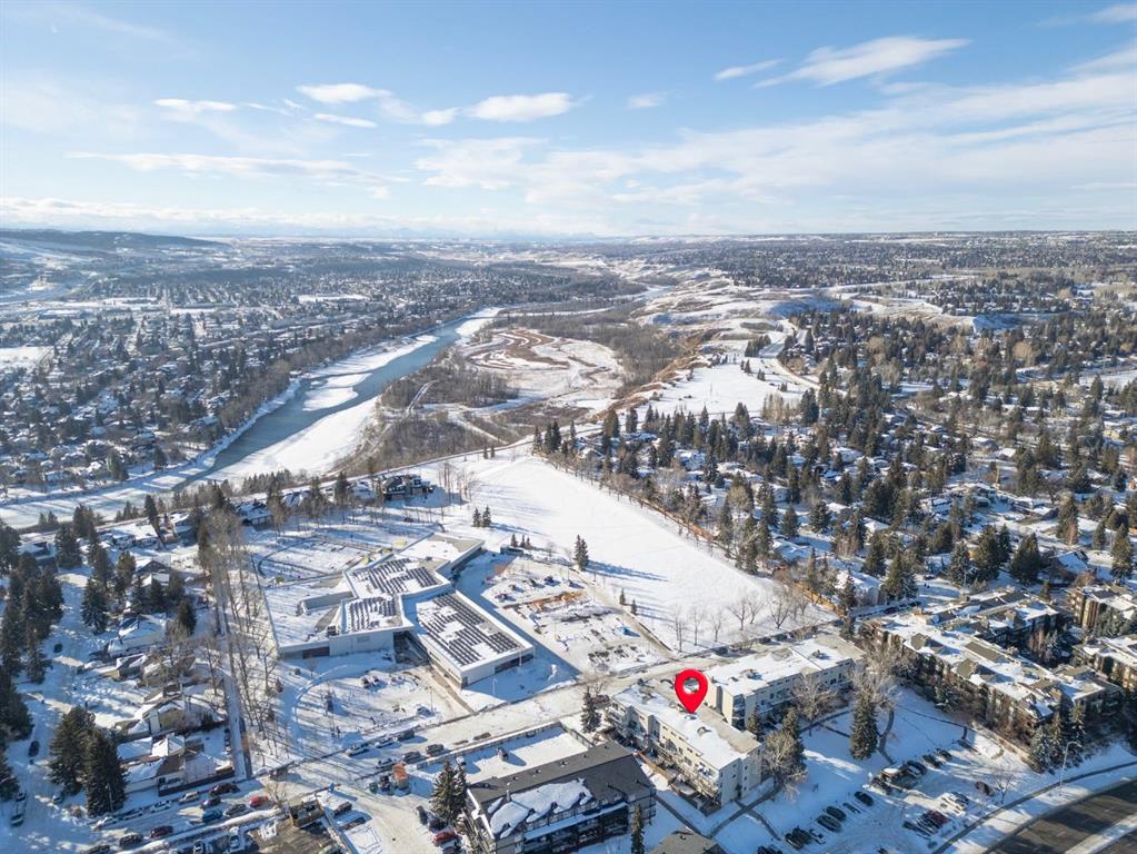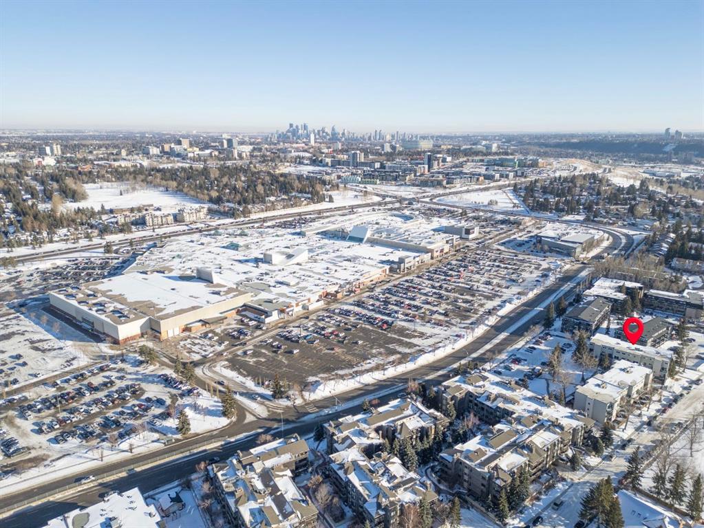 TOP FLOOR. SUN-FILLED. WALK EVERYWHERE. LOCATION LOCATION LOCATION!!! Market Mall is ACROSS the Street = groceries, shops, restaurants, services, coffee shops, theatres. 5 minute drive to U of C or walk in 25 minutes or 2 minute walk to bus stop = arrival at U of C in 10 minutes! Bow River Pathway is a block away - extensive, year-round paved and multi-use trails for walking, running and cycling! Rare opportunity to own in this quiet, well-kept building. NO sales have occurred here since 2024 - makes this a great opportunity to find the perfect place to live - and a solid stable community to live in. This BRIGHT - CORNER 1-bedroom, 1-bathroom unit sits on the TOP floor, meaning no one above you. Exceptional East-South-West natural light throughout the day. Enjoy a large private SOUTH facing balcony off the living room, unobstructed sunshine into both the open concept living/dining space and the bedroom. PLUS enjoy mountain views from your kitchen window! The layout offers generous in-suite storage (bikes, boxes, or use as pocket office area) and ample closet space. IN SUITE LAUNDRY. This unit is VACANT and move-in ready. LOW condo fees that include assigned PARKING, HEAT & WATER - keep ownership affordable. This is an exceptional opportunity for a first-time buyer, someone looking for a quiet haven in the city or an investor ( NO Short Term rentals under 28 days allowed. ) Have a PET?! Board approval necessary but no weight, breed, size restrictions. Own for less than many rental payments - while building equity in one of Calgary’s most connected communities! Quiet building. Top floor privacy. Sunshine all day. Location that works for real life. Faces Christine Meikle School - so many days/months of the year - you have no neighbours! Plus the road is blocked right in front of this unit (can't drive straight thru on 50 St) - so LIMITED traffic noise below! Perfect QUIET space to study or relax. Varsity gives you inner-city access without inner-city chaos! Close to major roadways. Airport is 25 mins away and drive Downtown in 10 mins (without traffic of course!) Get out of the city quickly - Canmore is an hour away! Mature trees, strong schools, walkability and long-term value. Varisty is one of Calgary’s most popular communities. Some photos are virtually staged. Call today to view - or book a showing!