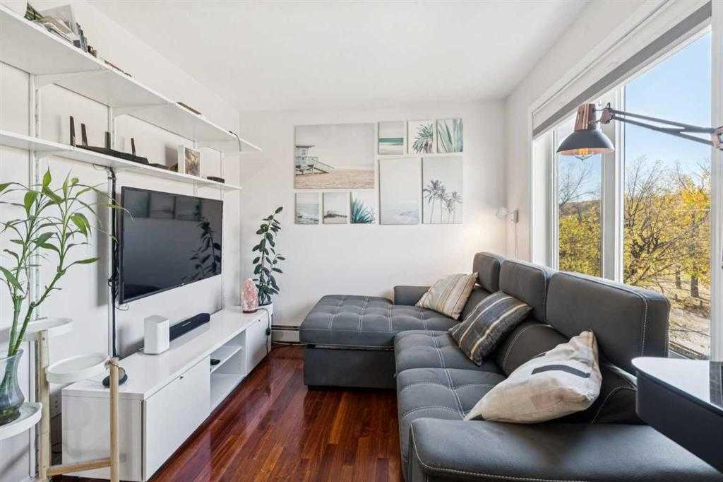 Live on the park! This top floor corner unit is just the one you have been looking for. It features a bright, open concept and rich, gleaming hardwood floors. The kitchen boasts an abundance of cabinetry with beautiful granite countertops, stainless steel appliances and there is plenty of room for an island. There is a large, open living and dining area that opens onto the private balcony. Both bedrooms are bright and spacious with generous closets. There is laundry in the unit with convenient built in shelving and parking just outside. From this incredible location you are directly across the street from Queen Elizabeth II Park and walking distance to coffee shops, stores and transit. Call today! Rental from March 1st, 2026 Directions: From Bowness Road, turn at 75 Street NW.
