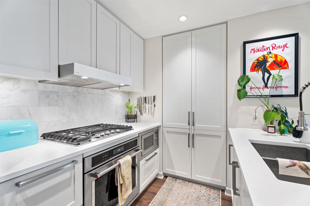 Welcome to this bright and beautifully kept 2-bed, 2-bath plus den condo offering peaceful views of the landscaped courtyard and community gardens with AC for those hot summer days. Step onto your private covered balcony to enjoy morning coffee surrounded by mature greenery—an ideal retreat from city life. The open-concept layout features a spacious living/dining area filled with natural light, a modern kitchen with stainless steel appliances and stone countertops, and a convenient breakfast bar for casual dining. The primary suite includes a walk-through closet and a full ensuite, while the second bedroom and 4-piece bath provide flexible space for guests or a home office. Additional highlights include in-suite laundry, titled underground parking, and secure storage. Building amenities feature a well-equipped fitness room, resident lounge, and beautifully maintained common areas. Situated steps from transit, shops, restaurants, and scenic walking paths, this home combines tranquility with unbeatable convenience. Whether you’re a first-time buyer, downsizer, or investor, this garden-view residence offers exceptional value and comfort.