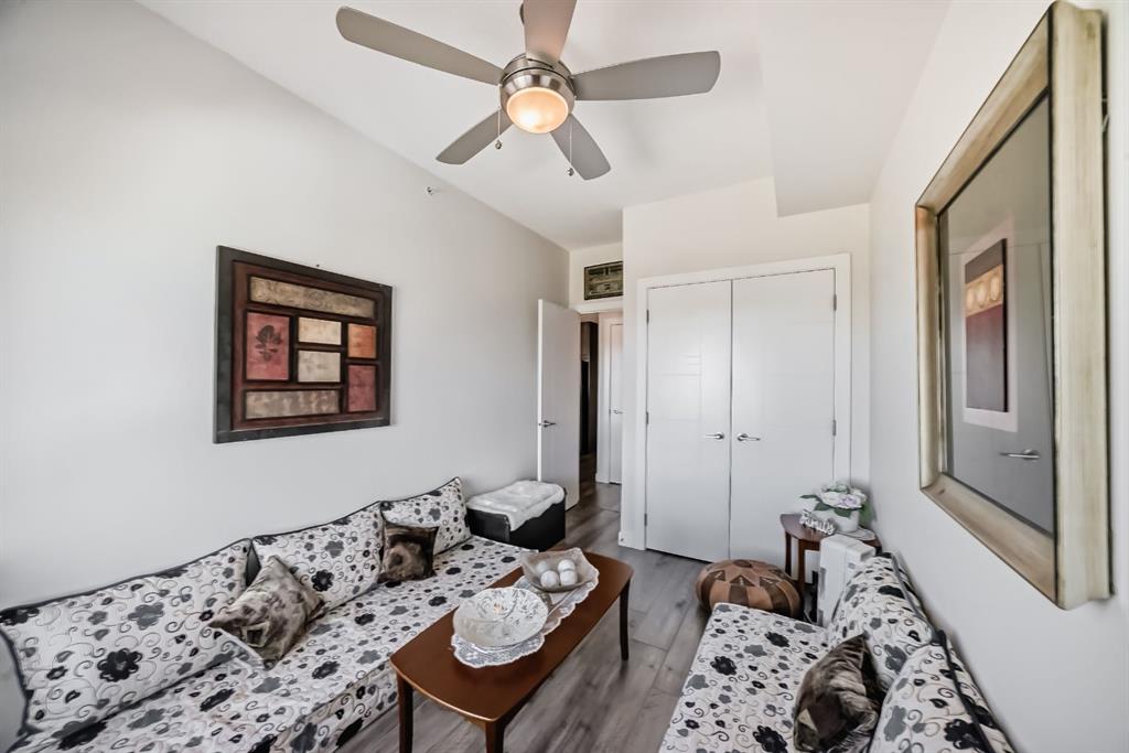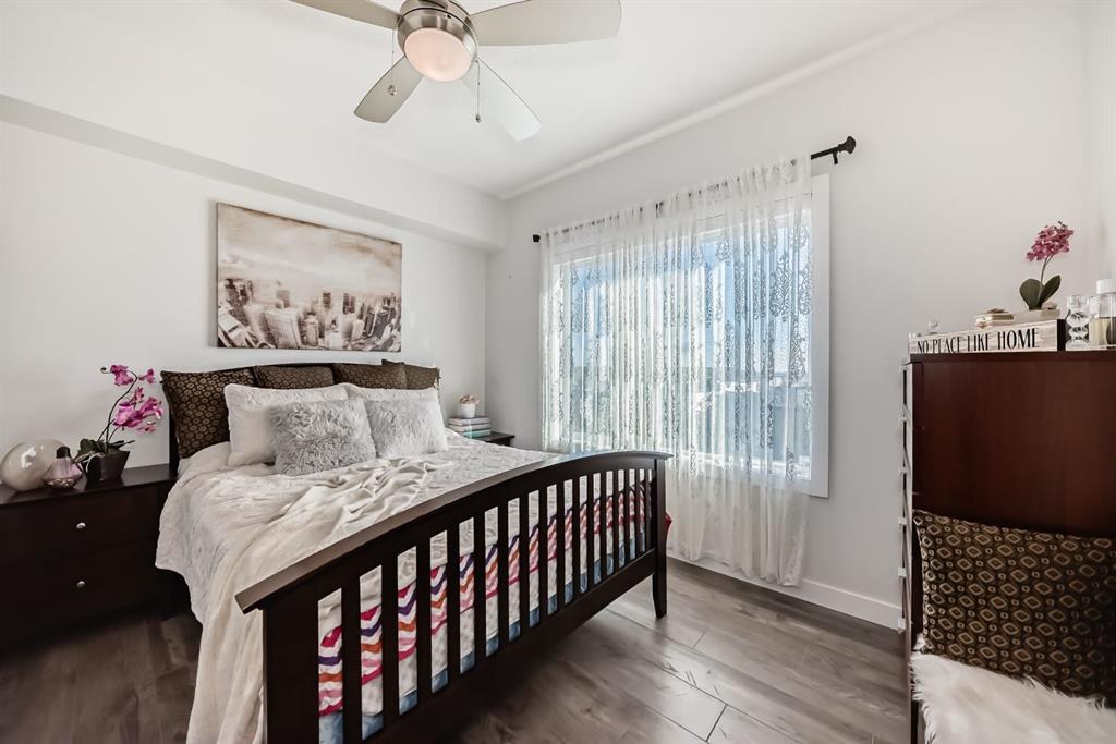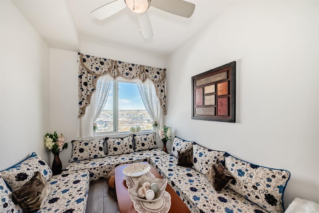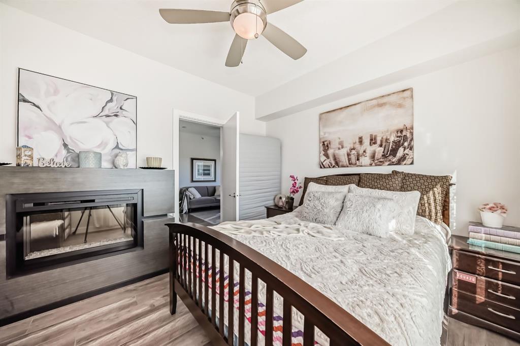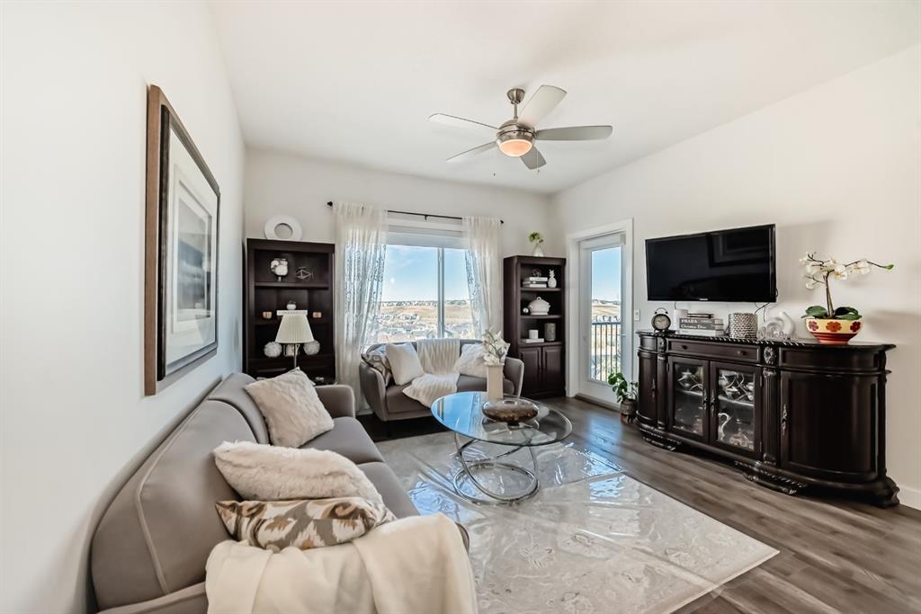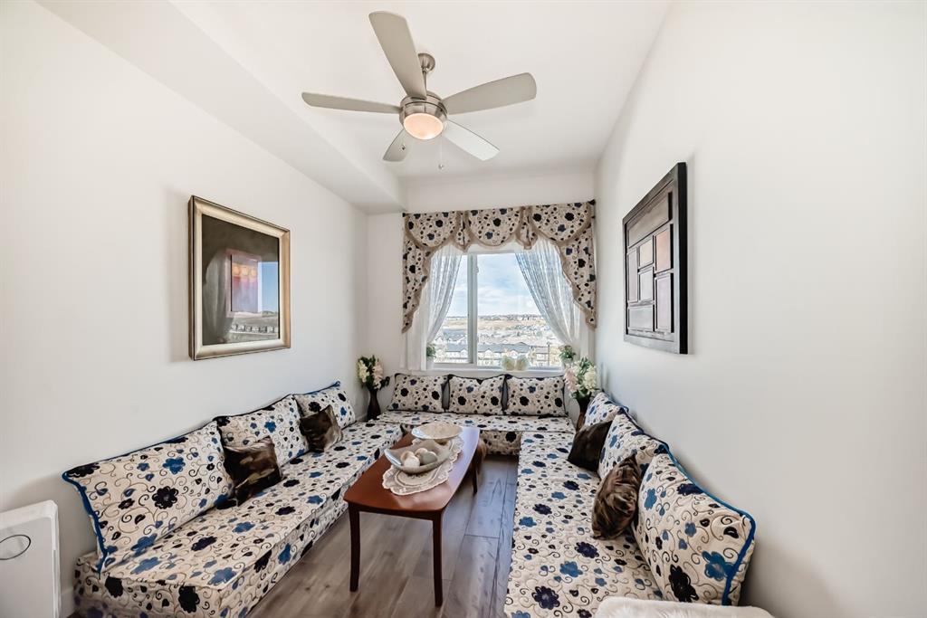 Immaculate Top-Floor Corner Condo in NW Calgary! Welcome home to this beautifully maintained 2-bedroom, 2-bath + den condo — lovingly cared for and located in one of NW Calgary’s most desirable communities - Sage Hill. This top-floor corner unit offers a bright, functional layout filled with upgrades, including rich laminate flooring, 9-foot ceilings, granite countertops in both kitchen and bathrooms, an upgraded lighting package, and extra windows that flood the space with natural light. A spacious front entry welcomes you with double closets and an in-suite laundry discreetly tucked away for added convenience. The open-concept living area is ideal for entertaining, featuring flat-panel cabinetry, a large peninsula island with breakfast bar seating, stainless steel appliances, and plenty of storage. Step out onto your private corner balcony to enjoy peaceful, wide-open views — the perfect spot for morning coffee or evening relaxation. The primary suite includes a walk-through closet, an electrical fireplace, and 4-piece ensuite. This home has a second bedroom, additional full bath, and a versatile den making it ideal for couples, professionals, or small families. Additional bonuses include: ? Titled parking stall in the heated underground parkade ? Secure bike storage ? Pet-friendly building (with board approval) Conveniently located close to schools, shopping, restaurants, and all amenities. This quiet and well-managed complex is also steps away from a scenic ravine as well as walking and biking paths. Enjoy easy access to Stoney Trail, Costco, CrossIron Mills, and QEII — making your commute and errands a breeze. This one truly has it all — style, comfort, and convenience. Don't forget to view the 3D Virtual Tour. Don’t miss your chance to see it — book your private showing today!
