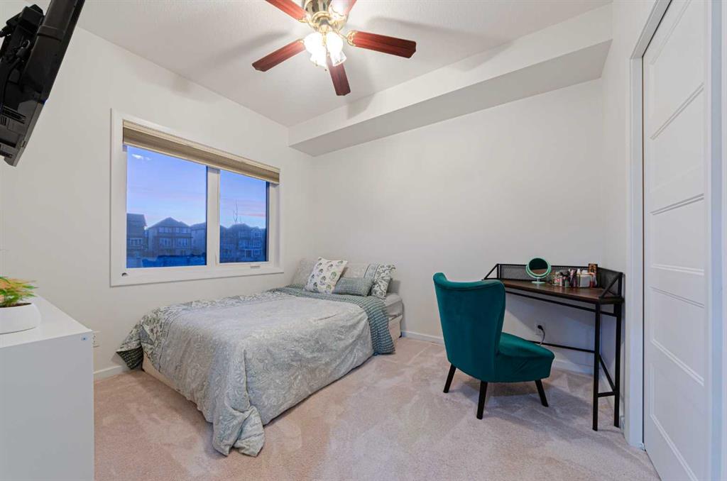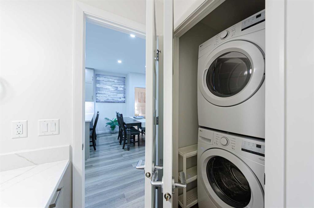 Welcome to The Pinnacle at Kincora, a boutique, meticulously crafted condominium by Cove Properties—one of Calgary’s most trusted and award-winning multifamily developers, renowned for quality construction and thoughtful design. Nestled in one of Kincora’s most peaceful enclaves, this elegant 2-bedroom plus den (or home office), 2-bath residence offers an exceptional blend of comfort, style, and functionality, all within walking distance to scenic parks, pathways, and everyday shopping conveniences. Offering 1,000 sq. ft. of spacious single-level living, this beautifully upgraded home showcases quartz countertops throughout, designer tile, luxury vinyl plank flooring, and refined fixtures and finishes. The kitchen is equipped with high-end Frigidaire stainless-steel appliances, a one-year-old microwave, and cabinetry enhanced with LED lighting, creating both style and practicality. Enjoy year-round comfort with a portable A/C unit, and appreciate thoughtful upgrades including 16 pot lights that add warmth and brightness throughout the home. A rare find in condo living, this unit includes two titled parking stalls—one heated underground and one convenient outdoor stall directly in front of the building—plus bike storage, offering outstanding flexibility and convenience. Step outside to your private, comfortable balcony, complete with wood-style flooring, a gas line, and a one-year-old, barely used Weber BBQ—perfect for relaxing or entertaining. Situated in a secure, maintenance-free, 18+ building, The Pinnacle at Kincora offers a unique combination of luxury, tranquility, and effortless living. Pets are permitted with board approval. This is a rare opportunity to own a beautifully upgraded home in an exceptional community—don’t miss your chance to make it yours.