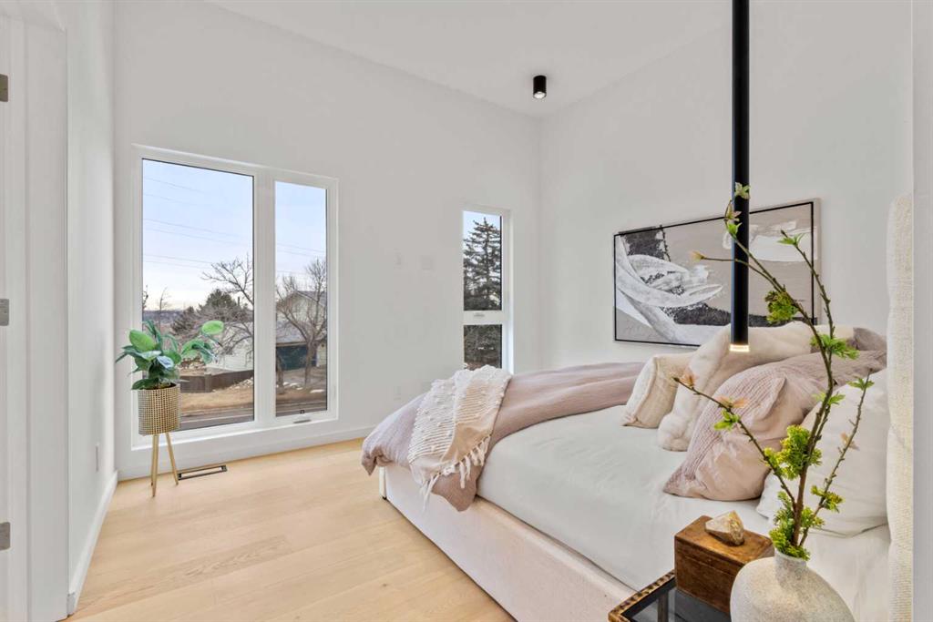 Located in Spruce Cliff directly across from Spruce Cliff Ridge, this custom-built Scandinavian-inspired luxury home captures sweeping views of the Bow River and downtown Calgary. Thoughtfully designed to balance simplicity and sophistication, the home is defined by clean architectural lines, natural textures, and exceptional craftsmanship throughout. This turnkey two-storey offers 2,200 sq ft of refined living space above grade, plus a 998 sq ft legal basement suite. Scandinavian design principles are reflected in the cohesive modern aesthetic and high end finishes, including triple-layer engineered hardwood flooring, luxury porcelain tile, curated designer lighting, and architectural trimless doors and windows. The open-concept main floor is designed for everyday living and effortless entertaining, featuring a spacious foyer with ample storage, chef-inspired kitchen, expansive living and dining areas, powder room, dedicated office, and a well-appointed laundry room. Upstairs, you’ll find three generous bedrooms and two full bathrooms, including a tranquil primary retreat with a spa-inspired ensuite. A versatile bonus room opens to a large balcony perfectly positioned to take in river and city views. The legal basement suite is equally impressive, offering one bedroom, a full bathroom, powder room, full kitchen, oversized windows, and bright open-concept living and dining areas—ideal for extended family, guests, or rental income. Situated on a freshly landscaped 6,135 sq ft southwest-facing lot, the property also features an EV-ready double detached garage with alley access and potential for future expansion. A highly desirable inner city community, Spruce Cliff offers a mix of character and luxury homes, stunning Bow River and city views, and easy access to parks, pathways, schools, downtown and beyond. Ideal for families and professionals, it combines refined urban living with a strong sense of community and lifestyle convenience. This is a rare opportunity to own a meticulously crafted home that blends modern Scandinavian design with functional family living in one of Calgary’s most sought-after communities. This is inner city living at its finest. Book your private showing today.