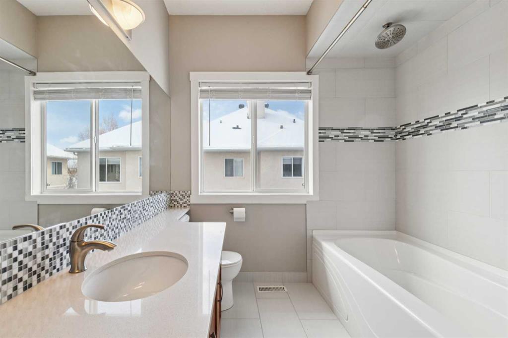 Set in the established community of Signal Hill, this 3-level townhome in “The Landings” offers over 2,000 sq ft of updated living space, a walkout lower level, and a quiet setting backing onto green space. Plenty of recent updates and renovations make it move in ready...The main floor has been thoughtfully opened up to create a more connected and functional layout. Large windows bring in natural light throughout the day, while the living room is anchored by a gas fireplace that adds warmth and definition to the space. The kitchen blends style and practicality with granite countertops, stainless steel appliances, ample cabinetry, and a central breakfast bar that naturally connects to the dining area and south-facing deck...Upstairs, the layout is both rare and highly functional, with two true primary bedrooms—each complete with its own ensuite and walk-in closet. Vaulted ceilings and a skylight add to the sense of space, while upper-level laundry keeps day-to-day living efficient...The walkout lower level extends the living space with a versatile family or media room, direct access to a private patio, and a seamless connection to the surrounding green space...Extensive updates have already been completed, including a new roof (2025), new hot water tank (2024), new garage door (2024), and an interior renovation featuring updated flooring, bathrooms, and an opened-up main floor. Additional features such as heated flooring in the primary bath, built-in closet shelving, and a water filtration system add comfort and long-term value...Located in a well-managed complex just minutes from schools, shopping, parks, and major routes, this home offers a rare combination of updated interior, functional layout, and a quiet, established setting in one of Calgary’s most desirable west-side communities.