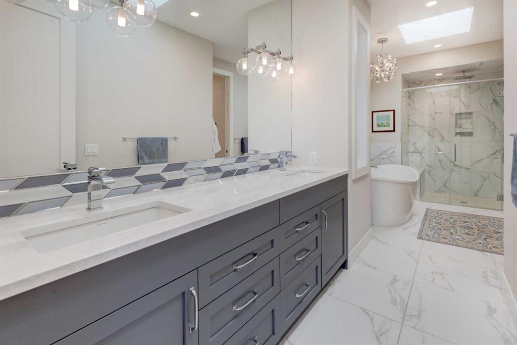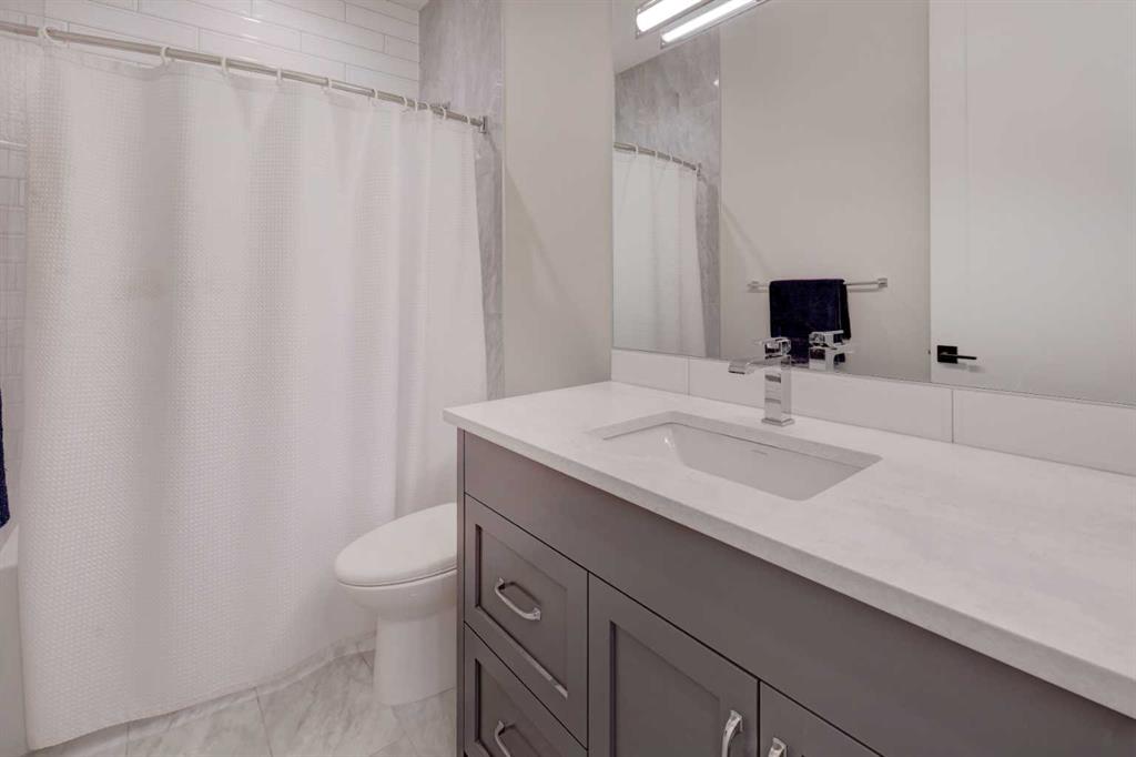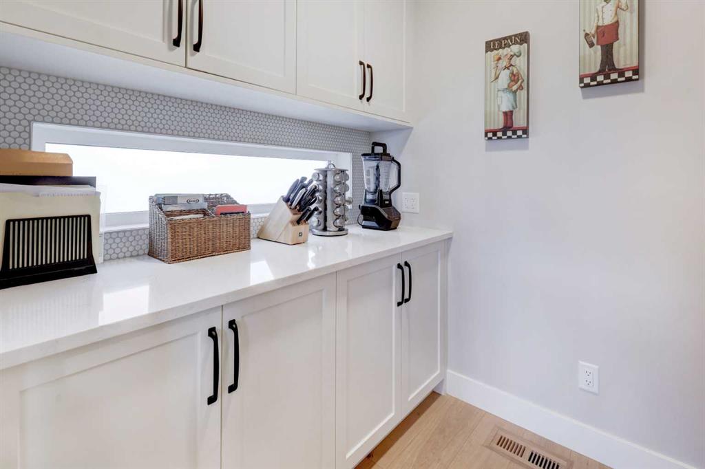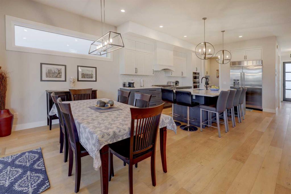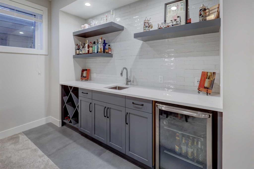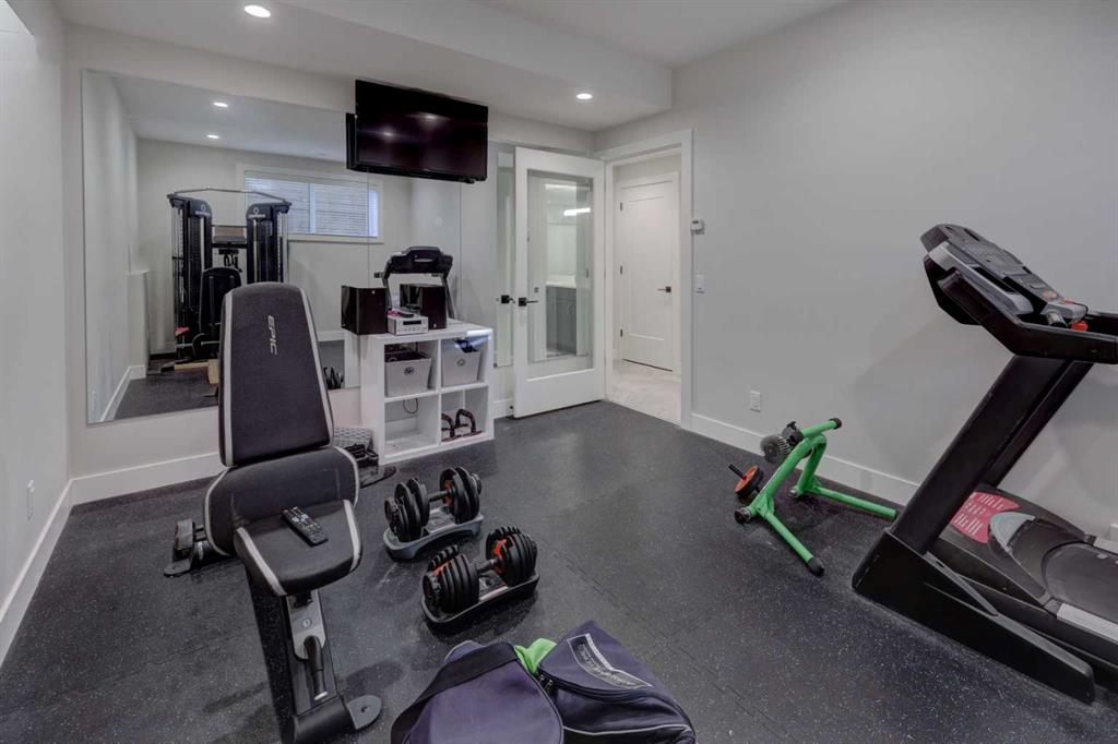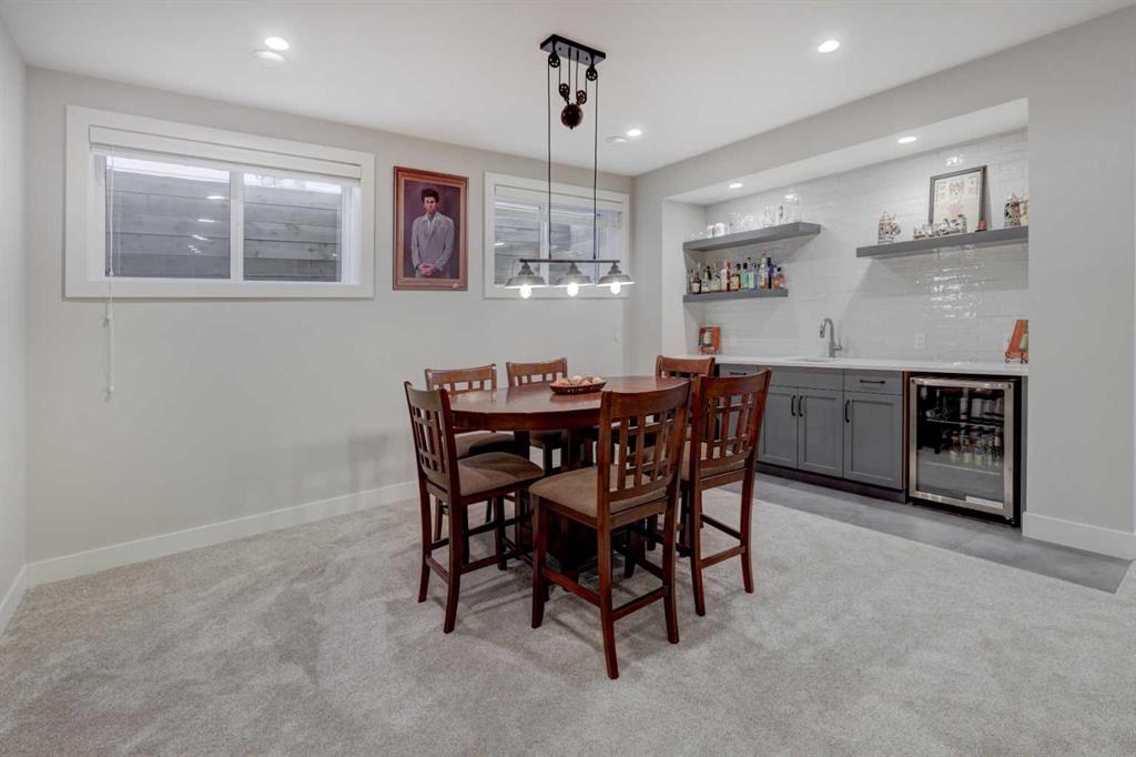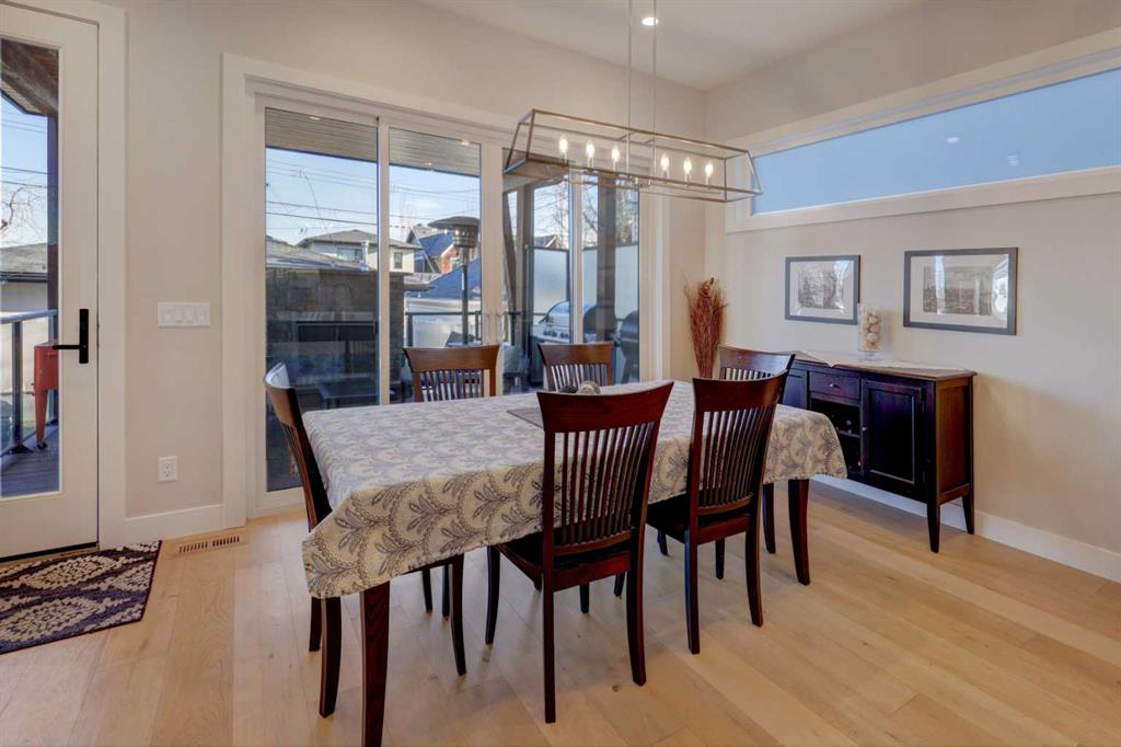 Luxury, location & thoughtful design come together in this exceptional custom-built home by William Blake Homes, just five blocks from both Marda Loop & River Park. Built in 2021, this elegant 2-storey home offers over 3600 sq. ft beautifully finished living space with amazing downtown skyline views from the upper level. A signature feature of this home is its outdoor spaces; set on an expansive (41’x126’) fully landscaped corner lot, the back yard with beautiful mature trees & elevated outdoor gathering spaces includes a covered deck with gas fireplace & built-in speakers, & large concrete patio with hot tub. The striking exterior showcases stucco, stone & faux-wood accents, timber beams & exposed aggregate steps & walkways, as well as Lumenox permanent outdoor lighting. This property includes underground sprinklers, gas bbq outlet & heated oversized (26’x21’) double garage with epoxy floors & built-in shelves. This bespoke home has a highly functional floor plan & professionally curated design. Every detail was lovingly chosen, including stunning designer lighting. Inside, natural light floods through large triple-glazed windows, highlighting wide-plank white oak hardwood floors on both the main & upper levels including the floating stairs. The main floor features a private office with built-in cabinetry, a family room with oversized windows, coffered ceiling, linear gas fireplace, custom millwork, & a large & bright dining area. The chef’s kitchen showcases KitchenAid appliances including a 6 burner gas stove, built-in oven & microwave, elegant tile backsplash, & an expansive quartz island with beverage fridge & extra storage. There’s also a walk-in pantry with window, pocket sliding door, & custom cabinetry for small appliances. The mudroom has been purposefully designed with a bench, cubbies, cupboards & even a built-in dog door! Upstairs, you’ll find a spacious bonus room with linear gas fireplace, custom millwork & built-in desk; an upper laundry room with quartz counter, sink & ample storage; & a stylish 4 piece bathroom with full tile tub/shower combo, tile floors & quartz counters. The luxurious primary retreat overlooks the backyard, offering views of downtown & the property’s gorgeous mature trees (there’s access to the private upper patio to soak in the views). The primary bedroom features a spacious walk-in closet with barn door, custom built-ins & mirror. The spa-like ensuite features tile floors, dual sinks, luxurious soaker tub, large tiled shower & private water closet. Two additional bedrooms are finished with carpet & include closet organizers. The lower level showcases a media/games room with custom millwork, speakers, & wet bar. There’s a gym with mirrored wall & rubber flooring, a 4th bedroom, & a full bathroom. This home includes central air conditioning, & is wired for data, security & speakers throughout. The mechanical system is upgraded including a Daiken Multizone furnace, HRV, infloor heating, & o/s high efficiency hot water heater.