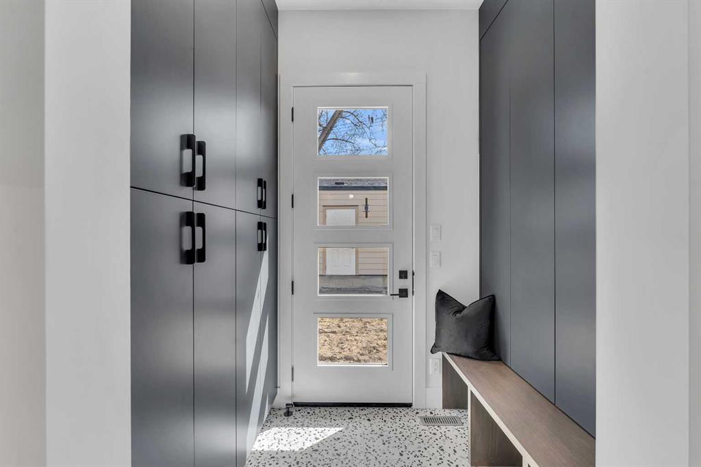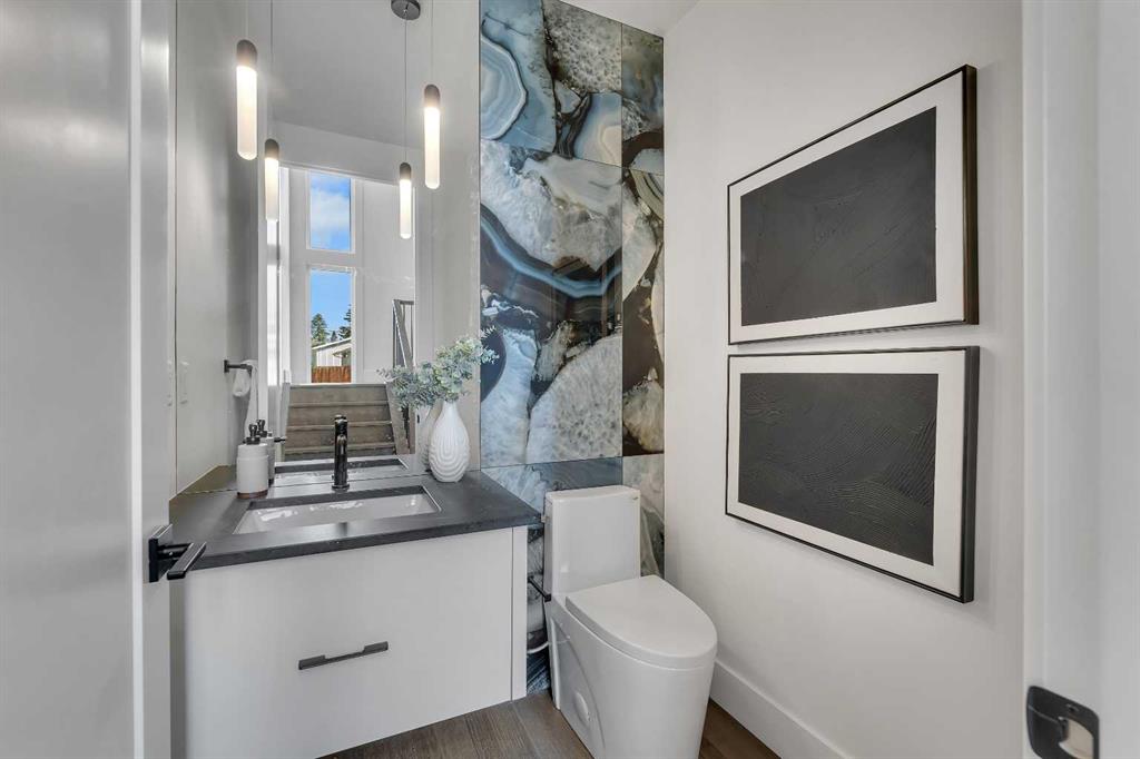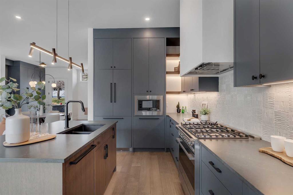 A statement of inner city luxury, this extra-wide residence by Ambedo Custom Homes and Stephanie Martin Interior Design redefines the duplex category. Moving beyond the generic "spec-build" aesthetic, the home embraces a "dark-themed serenity" that feels deeply personal and curated. Every element, from the custom tiling throughout to the specialized party wall engineered for a level of quiet not found in standard builds, has been selected for the homeowner who values both scale and quality. The main level features 10-foot ceilings that soar over a chef-inspired kitchen defined by its moody allure and intentional design. The space is anchored by a professional 36" gas range, panel-ready Fisher & Paykel appliances, and bespoke cabinetry. Natural light pours through 14-foot architectural patio doors, dissolving the boundary between the sophisticated interior and the south-facing backyard. The vaulted primary retreat serves as a sanctuary, joined by two additional large bedrooms. Intentionally designed without a secondary suite, the lower level is dedicated entirely to personal use, offering a massive recreation area and custom wet bar. Wrapped in a striking metal and stucco facade with a double garage, you are a short stroll from the Westbrook CTrain station and vibrant new coffee shops. Discover the exclusivity of a designer-led, extra-wide build—book your tour today.