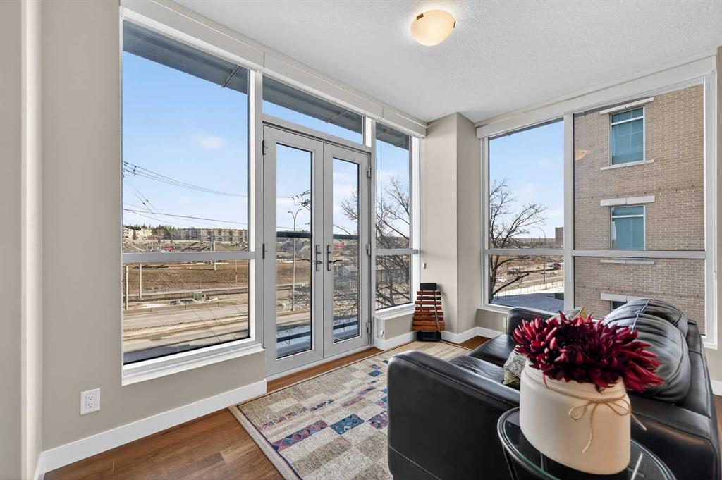 Welcome to The Groves of Varsity, a highly sought-after condominium complex in the heart of Varsity - one of Calgary’s most desirable and established northwest communities. Known for its tree-lined streets, proximity to parks and pathways, excellent schools, shopping, transit access, and close connection to major routes, Varsity offers a lifestyle that balances urban convenience with residential charm. This spacious corner unit offers almost 1,300 sqft of bright, open living space enhanced by 9-foot ceilings and an abundance of large windows that fill the home with natural light throughout the day. The thoughtful layout provides exceptional flow between the kitchen, dining, and living areas - ideal for both everyday living and entertaining. The well-appointed kitchen features stainless steel appliances, including a new microwave/hoodfan combination and new dishwasher, quartz counters, ample cabinetry, and functional workspace. Durable laminate flooring runs through the main living areas, complemented by tile flooring in the entry, kitchen, and bathrooms, and comfortable carpet in both bedrooms. The unit includes two generously sized bedrooms and two full bathrooms, offering flexibility for guests, roommates, or a dedicated home office. In-suite washer and dryer add daily convenience. Additional value features include a separately titled underground parking stall and a separate assigned storage locker, providing secure parking and extra space for seasonal items. Residents of The Groves of Varsity enjoy access to premium building amenities including a fully equipped fitness center, steam room, fully equipped social room, and a rooftop terrace with BBQ area offering impressive views. With nearby shopping, dining, transit, U of C, and green space just steps away, this location supports both an active and connected lifestyle. Whether you are downsizing, investing, or seeking a low-maintenance home in a mature, high-demand community, this bright corner unit offers space, comfort, and long-term value in one of northwest Calgary’s premier condominium developments.