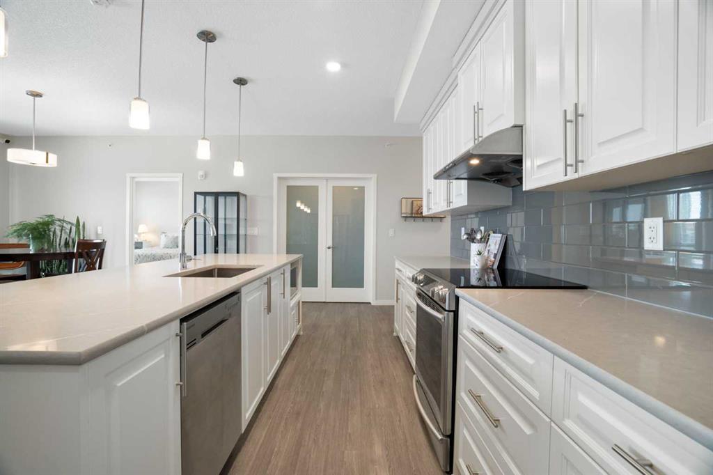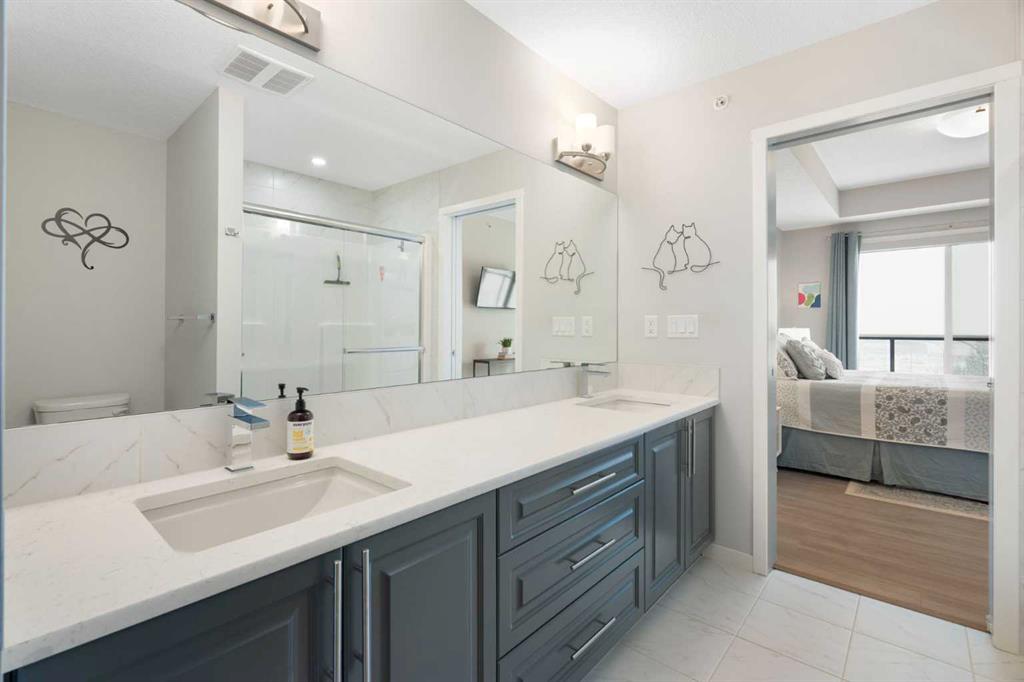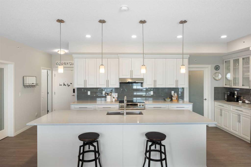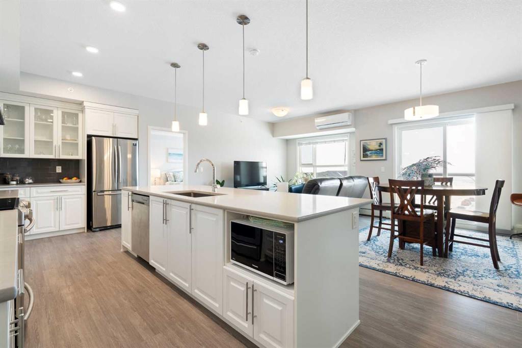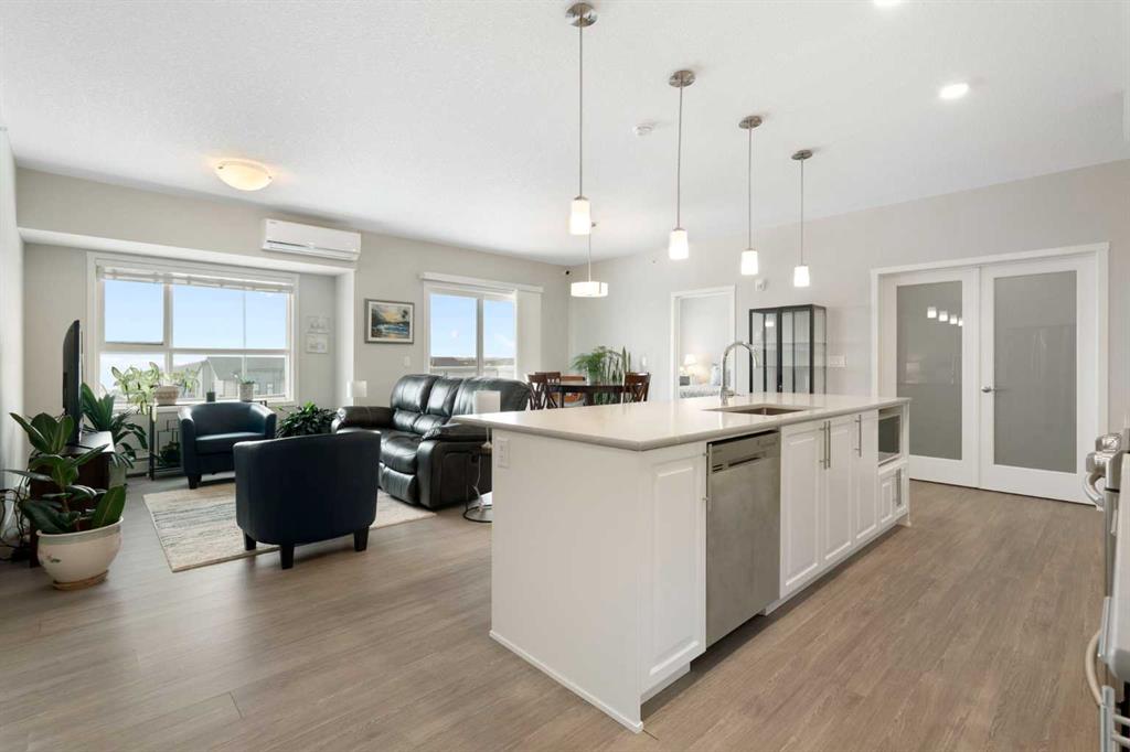 Discover elevated living in this exceptional top-floor residence by CedarGlen Living in Seton Park II. Offering nearly 1,200 sq. ft. of thoughtfully designed space, this rare 3-bedroom, 2-bathroom condo blends comfort, style, and convenience in one of Calgary’s most vibrant urban communities. Enjoy two south-facing private balconies — perfect for morning coffee, evening unwinding, or soaking in the sunshine — along with the added comfort of air conditioning in the living room for warm summer days. The chef-inspired kitchen is truly the heart of the home, featuring full-height cabinetry, quartz countertops, upgraded stainless steel appliances, a built-in oven, microwave, large sink, spacious pantry, and a generous sit-up island ideal for entertaining. The open-concept dining and living areas are bright and inviting, highlighted by 9’ ceilings, luxury vinyl plank flooring, and modern window coverings. The primary suite is a private retreat, complete with a walk-in closet, direct balcony access, and a beautifully appointed ensuite showcasing dual sinks, quartz counters, and a walk-in shower. Two additional bedrooms share a stylish 4-piece bathroom, while the generously sized laundry room offers excellent additional storage. Additional highlights include one titled underground parking stall, an assigned storage locker, a pet-friendly building (with board approval), and no HOA fees. Located just steps from the South Health Campus, YMCA, public library, Gateway Retail District, restaurants, and everyday amenities — plus the future Seton Regional Park (anticipated 2028) — this home offers the perfect blend of modern comfort and unbeatable convenience. A rare opportunity to own a spacious, sun-filled, top-floor condo in the heart of Seton.