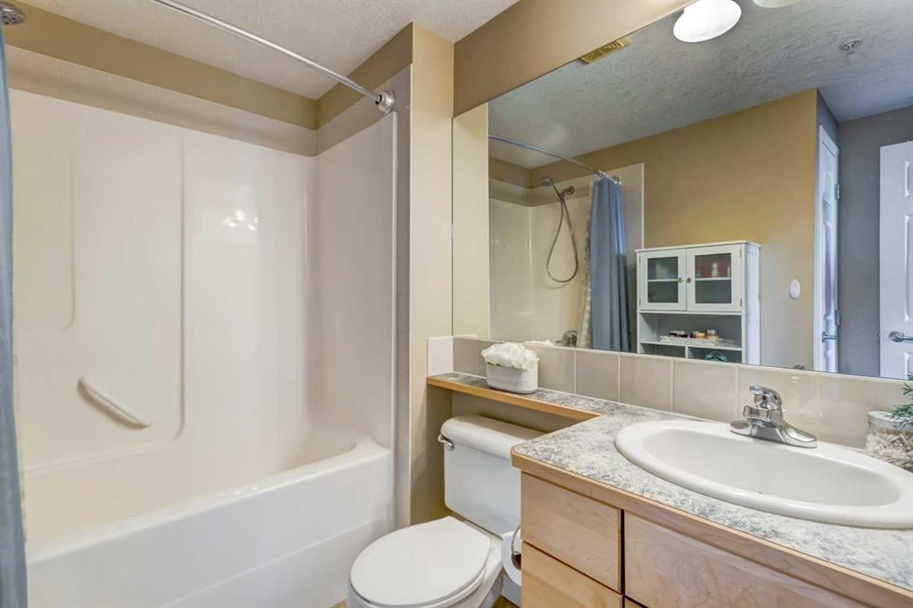 Exceptionally well-kept, top floor, south facing, one bedroom condo with central air conditioning, underground parking and storage locker, located in the highly sought after Sierras of Evergreen 55+ complex. This bright, open concept condo has a great layout and offers a spacious kitchen with corner pantry, plenty of cabinets and counterspace, with an adjacent dining space for an optional table. Enjoy the south facing views from the living room which has a gas fireplace and access out to the private, covered balcony with gas line for your BBQ. The spacious bedroom, with enough room for bedroom furniture plus a desk, has a walk-in closet. The 4-piece bathroom has a linen closet and is conveniently located beside the bedroom. In-suite laundry room with new washer and dryer offers extra space for storage. Heated, titled, underground parking stall is located close to the elevator. The storage locker is a fully enclosed room measuring approximately 5 x 8 and located in front of the parking stall. Reasonable condo fees include electricity, heat, water, and sewer - great to have those included! This pet friendly, very well managed 55+ complex has ample visitor parking, and many amenities including a swimming pool, hot tub, exercise room, wood working shop, car wash, party room, guest suites, meeting room, and several sitting rooms/fireplaces. Convenient location with great access to the ring road, parks, and shopping. If you are looking for a bright, top floor condo in a friendly, well managed complex then this condo may be the one for you!