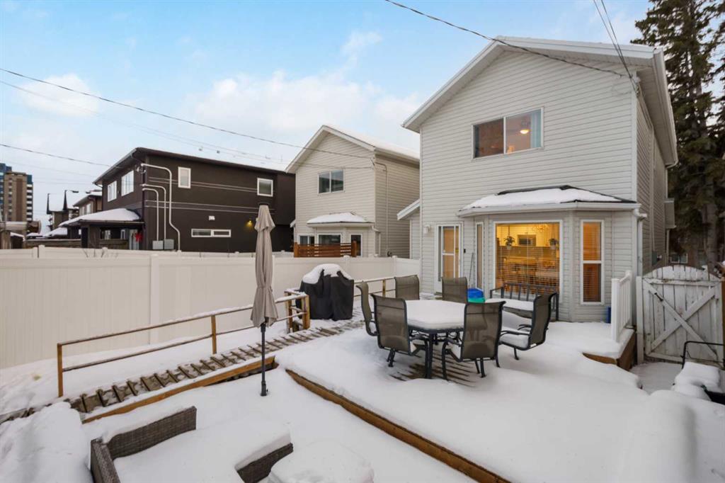 Welcome home to this beautifully maintained detached 2-storey, perfectly situated in the desirable Windsor Park neighbourhood. Full of warmth and curb appeal, a classic covered front porch, and hardwood floors that carry throughout the main level. Step inside to a bright and inviting living room with a cozy fireplace and a sun-filled bay window. The renovated kitchen is a true highlight, showcasing quartz countertops, white cabinetry, a stylish backsplash, and brand-new stainless steel appliances, including a Bosch dishwasher. A spacious island provides extra seating and prep space, while the large dining nook offers an ideal spot for everyday meals, surrounded by windows overlooking the backyard. Main-floor laundry is conveniently tucked away, along with a well-placed powder room near the rear entry. Upstairs, the primary suite features dual closets and a private three-piece ensuite with a tiled shower. Two additional bedrooms—both generously sized—share a full bathroom, offering flexibility for kids, guests, or a home office. The basement adds valuable living space with a comfortable multi-purpose rec room and excellent storage options, making it perfect for hobbies, a teen hangout, or a cozy family movie area. The backyard is designed for relaxing and entertaining, with dual decks that provide separate spaces for dining, lounging, and gathering around a firepit. An oversized, heated double garage with 220V power adds outstanding utility for year-round use. Additional updates include 50-year shingles on the house (2018), fresh paint throughout the entire home and new carpets. Located just minutes from Elbow Drive, Macleod Trail, Chinook Centre, transit, schools, and parks, this home offers charm, convenience, and thoughtful upgrades in one of Calgary’s most central inner-city neighbourhoods.