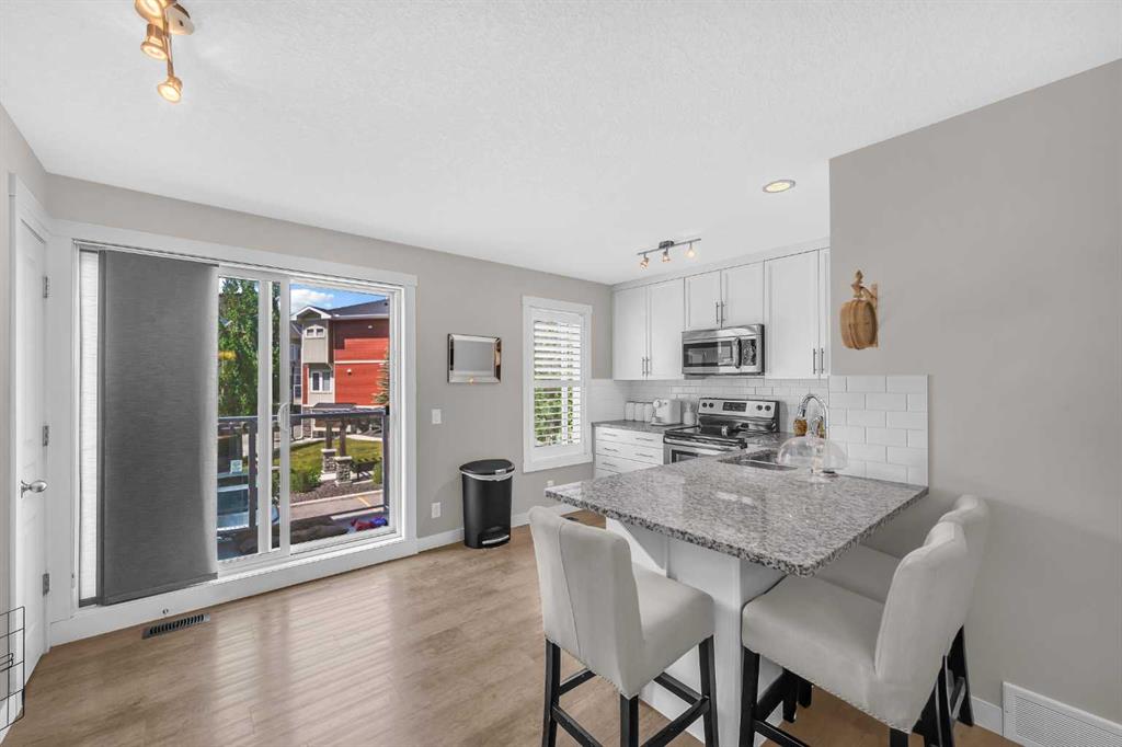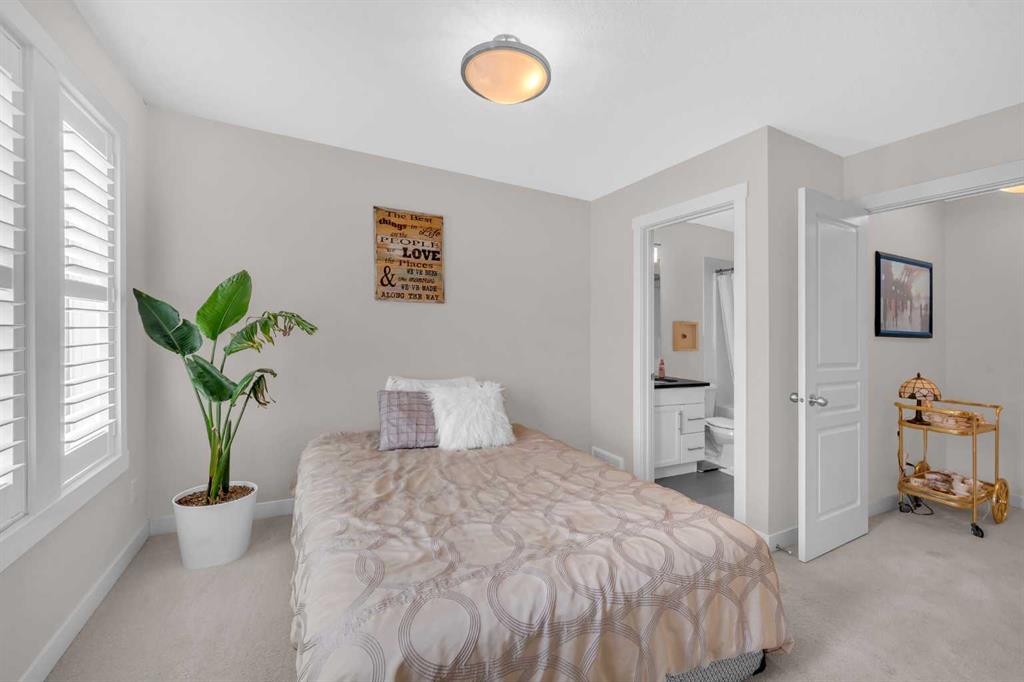 Welcome home to this stunning townhouse located in the highly sought-after lake community of Auburn Bay, offering low condo fees and an unbeatable lifestyle! As you step inside, you’re welcomed by soaring vaulted ceilings and custom California shutters that add elegance and privacy throughout the home. The entryway and bathroom feature beautiful slate flooring, adding a touch of natural style and durability. The modern kitchen is a chef’s dream, complete with granite countertops, stainless steel appliances, a brand new dishwasher, and ample cabinetry for generous storage. A few steps up, you’ll find a convenient half bath, leading to the upper level that boasts two spacious primary bedroom suites, each with large closets and their own 4-piece en-suite with sleek quartz vanity tops, plus a laundry closet with full-size washer and dryer for added convenience. The lower level includes a welcoming front entry with a coat closet and direct access to the double attached garage, offering room for a full-size vehicle and plenty of extra storage. This home also features two private outdoor living spaces, an upper deck. Perfect for summer entertaining, and a lower concrete patio is ideal for relaxing with a BBQ gas line. Conveniently located within walking distance to shopping, schools, parks, transit, and the lake, this thoughtfully upgraded home is ready for you to move in and enjoy. Welcome to your new home in Auburn Bay!