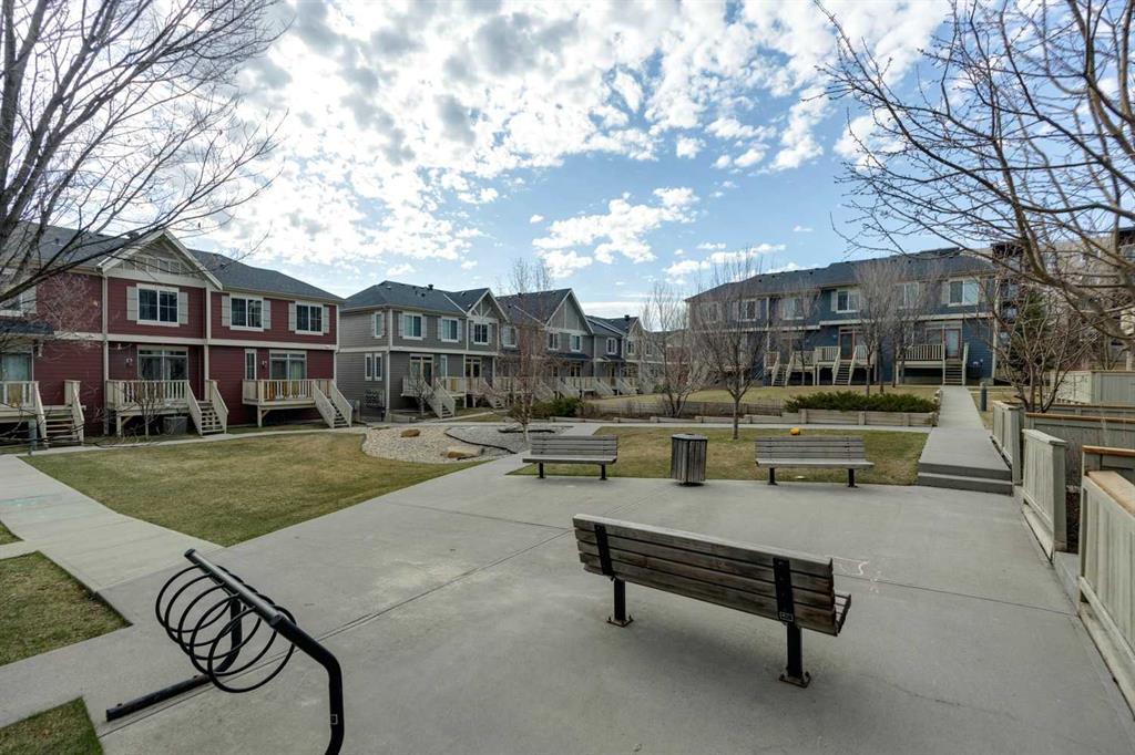 Natural light pours through this beautifully maintained townhome, where the main living level is bright, open, and exceptionally well appointed. The living room is anchored by a gas fireplace with built-ins, creating a warm and polished focal point. From there, the layout flows naturally into the dining area and kitchen, where richly stained cabinetry, stainless steel appliances, and a breakfast bar with raised seating offer both style and functionality. Just off the kitchen, the balcony overlooks the courtyard and provides a outdoor extension of the main floor. Upstairs, both bedrooms are generously proportioned and each is complete with a walk-in closet, offering a layout that is both comfortable and well designed for a professional couple, small family or roommates. The primary suite includes its own ensuite bath with an oversized shower, while the second bedroom has direct access to the stylish upstairs bath. A full-size den offers flexible space for a home office, study, nursery, or small gym, while upper-level laundry adds everyday convenience. The heated and drywalled tandem garage accommodates two vehicles and offers future development potential, while the full-length parking pad allows space for an additional vehicle, a rare advantage above many other inner units. A fenced, covered patio extends from the garage to the treed courtyard, while the rear balcony, complete with a natural gas line, overlooks the same setting and offers an easy outdoor retreat. With quick access to major routes, extensive pathway networks, nearby amenities, and the airport, this is a home that balances comfort, convenience, and thoughtful design exceptionally well.