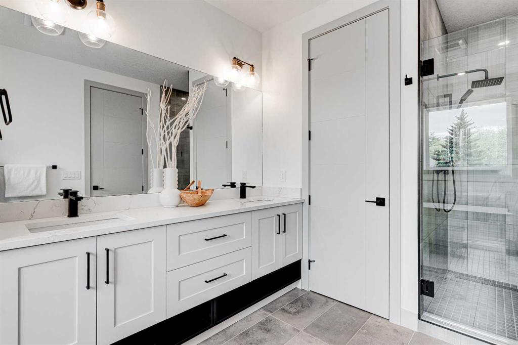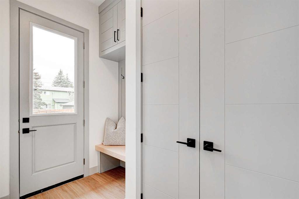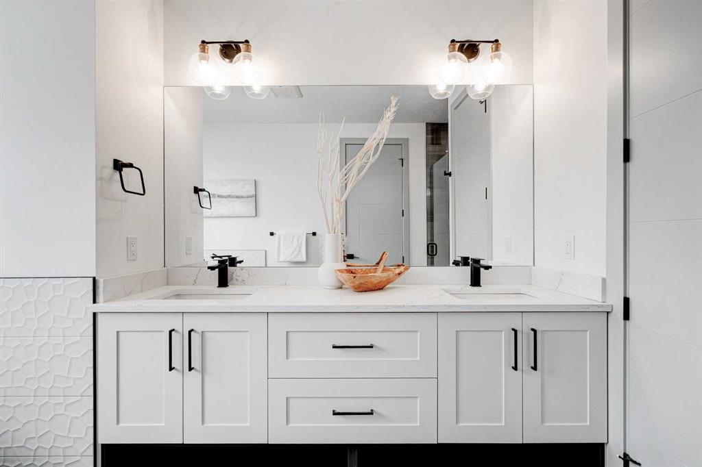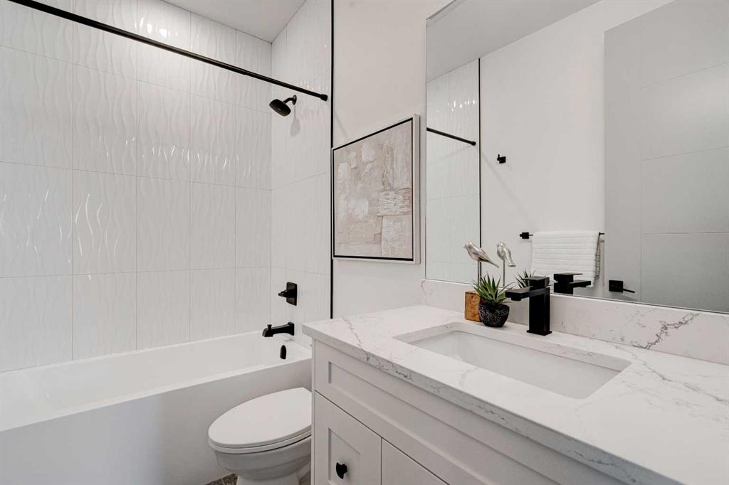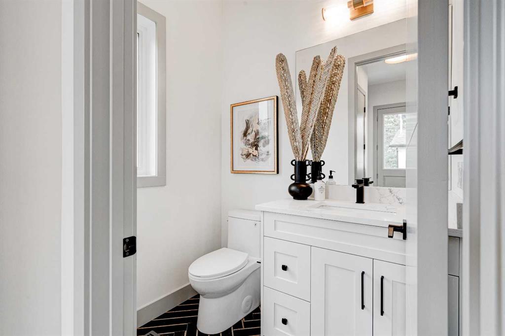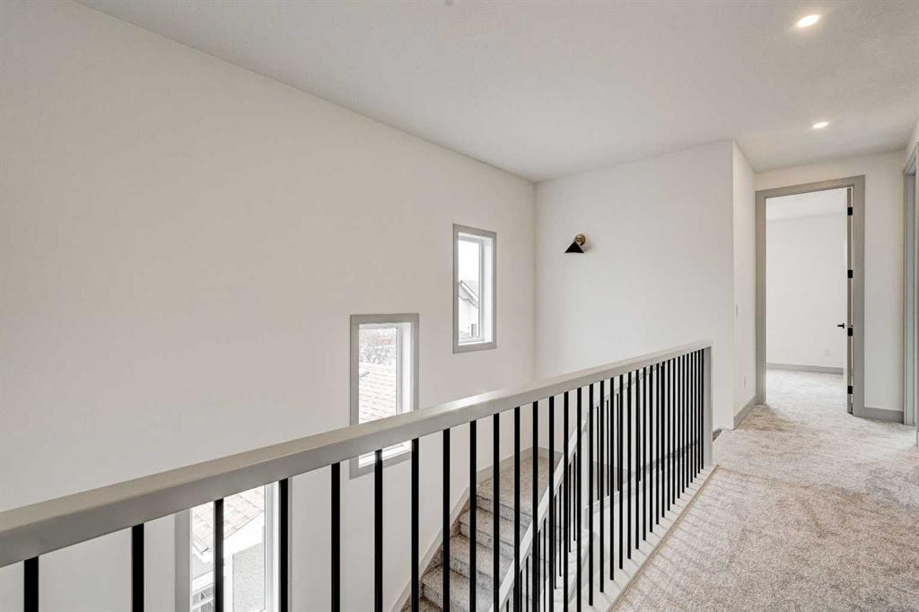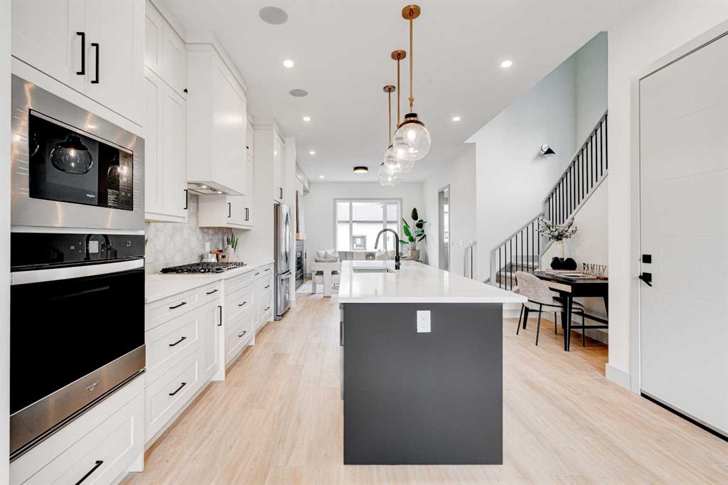 MOVE IN TODAY! This modern semi-detached home is a stunning blend of thoughtful design and functionality, perfect for anyone looking to elevate their living experience! Located in the heart of Bowness, it offers the perfect mix of urban convenience and peaceful surroundings. Outside, this home has serious curb appeal, w/ a sleek black and white Smartboard exterior that pairs beautifully w/ carefully designed landscaping, and has a 10/10 location next to the park! Out back, there’s a private patio ready for summer BBQs, complete w/ a gas hookup to make entertaining a breeze. Inside, the space is bright and airy w/ 10-ft ceilings on the main floor. The kitchen is a dream for anyone who loves to cook or entertain, w/ custom two-tone shaker cabinets, quartz countertops, and a massive island that acts as both a centrepiece and functional workspace. High-end stainless-steel appliances, including a gas cooktop and built-in oven-microwave combo, make it as practical as it is beautiful, along w/ the large walk-in pantry for all your storage needs. Enjoy everyday meals and family get-togethers in the dedicated dining room w/ a designer chandelier and stunning feature wall, then spread out into the open-concept living room, which features a stunning gas fireplace w/ crystal glass details. Rounding off the main floor is a lovely custom mudroom w/ a built-in bench and private powder room perfect for guests and everyday use. Upstairs, the primary suite is an absolute sanctuary, w/ oversized windows, an extra-large walk-in closet, and a 5-pc ensuite that acts as your own private spa, w/ a freestanding soaker tub, a walk-in shower w/ rain showerhead, dual vanity, and a full-height mirror w/ inset lighting that adds a touch of luxury. Two additional bedrooms on this floor are spacious and bright, w/ quick access to the main bathroom and a convenient upper-level laundry room. The basement is fully finished and includes a LEGAL SUITE (subject to permits & approval by the city) w/ its own private entrance. It’s a fantastic option for generating rental income, hosting long-term guests, or even creating a separate space for family members. The suite features a full kitchen, a cozy living area, two bedrooms, and a full bathroom—all finished w/ durable luxury vinyl plank flooring for a sleek and modern look. Throughout the home, you’ll find matte black finishes on all hardware and stylish LED pot lights. It’s also ready for easy upgrades, w/ rough-ins for air conditioning already in place. And the location? Couldn’t be better! You’re next to a park with a skating rink, minutes from the beautiful trails and lagoon at Bowness Park, a local favourite for outdoor activities. The neighbourhood is packed w/ amenities, including charming cafes, boutique shops, and more. For families, there are fantastic schools and playgrounds nearby, including Bowness High School, and commuting is simple w/ quick access to Stoney Trail and 16th Ave! Call today to view!
